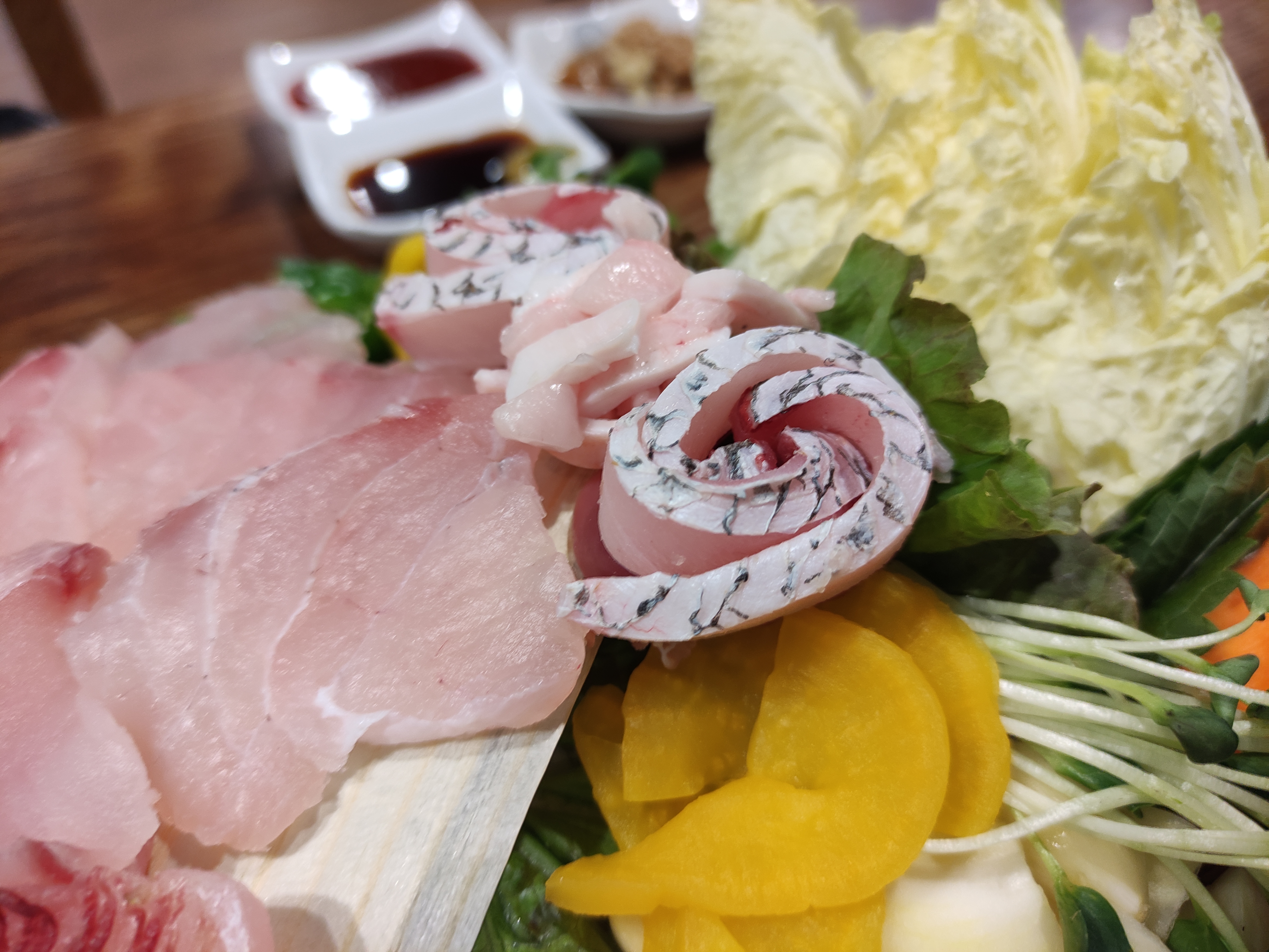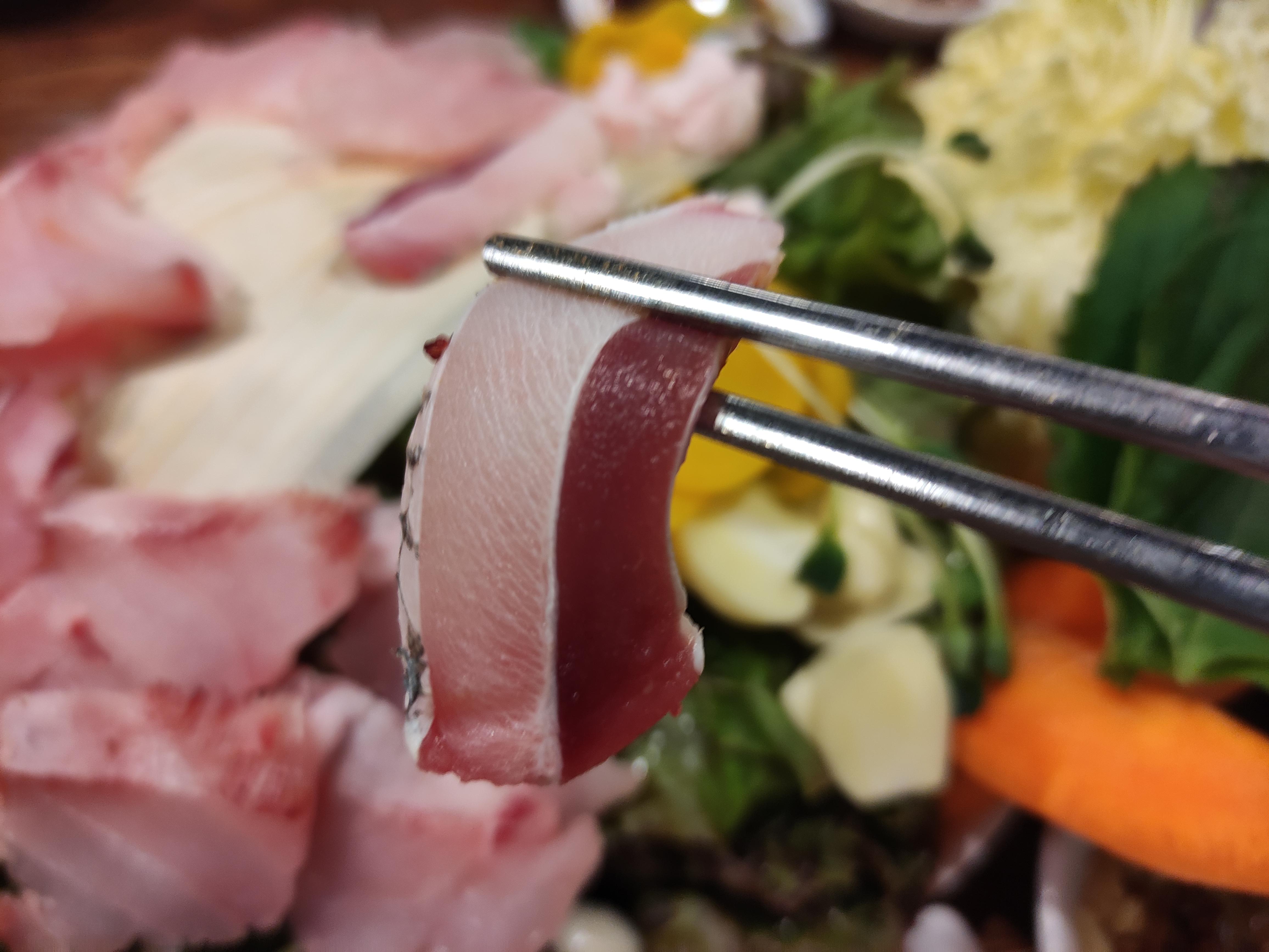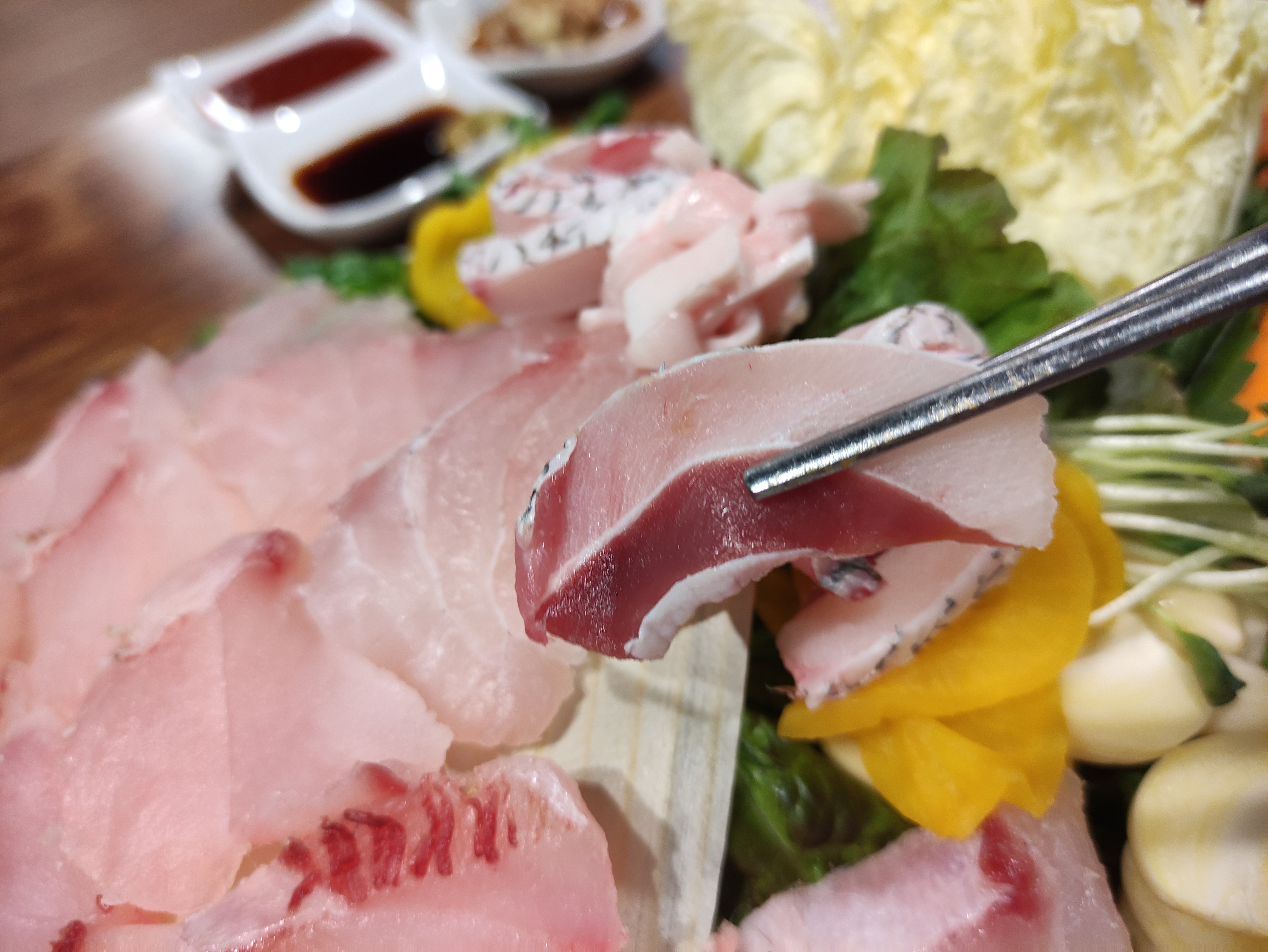 지느러미도 오독오독쫄깃쫄깃 식감이 좋아요. 지느러미가 색상이 투톤으로 되어있어 신기했어요.
