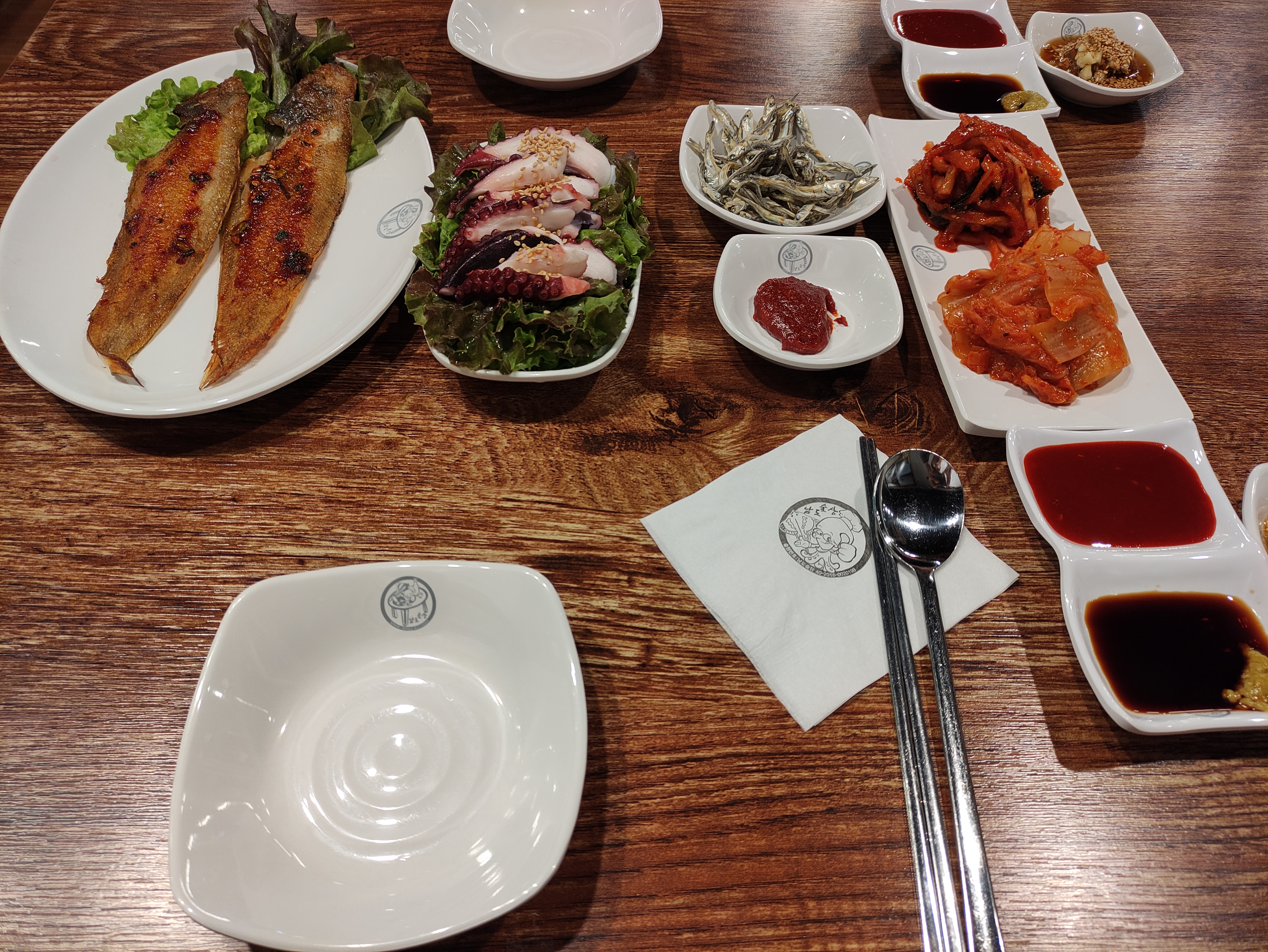 민어회를 2인분 주문하였습니다. 민어회를 주문하면 애피타이저? 스끼다시? 로 생선구이와 삶은문어가 나옵니다. 삶은문어는 초장찍어먹으면 넘 맛있습니다. 식감도 부드러우면서 쫄깃합니다. 오물오물 씹는재미가있어요.