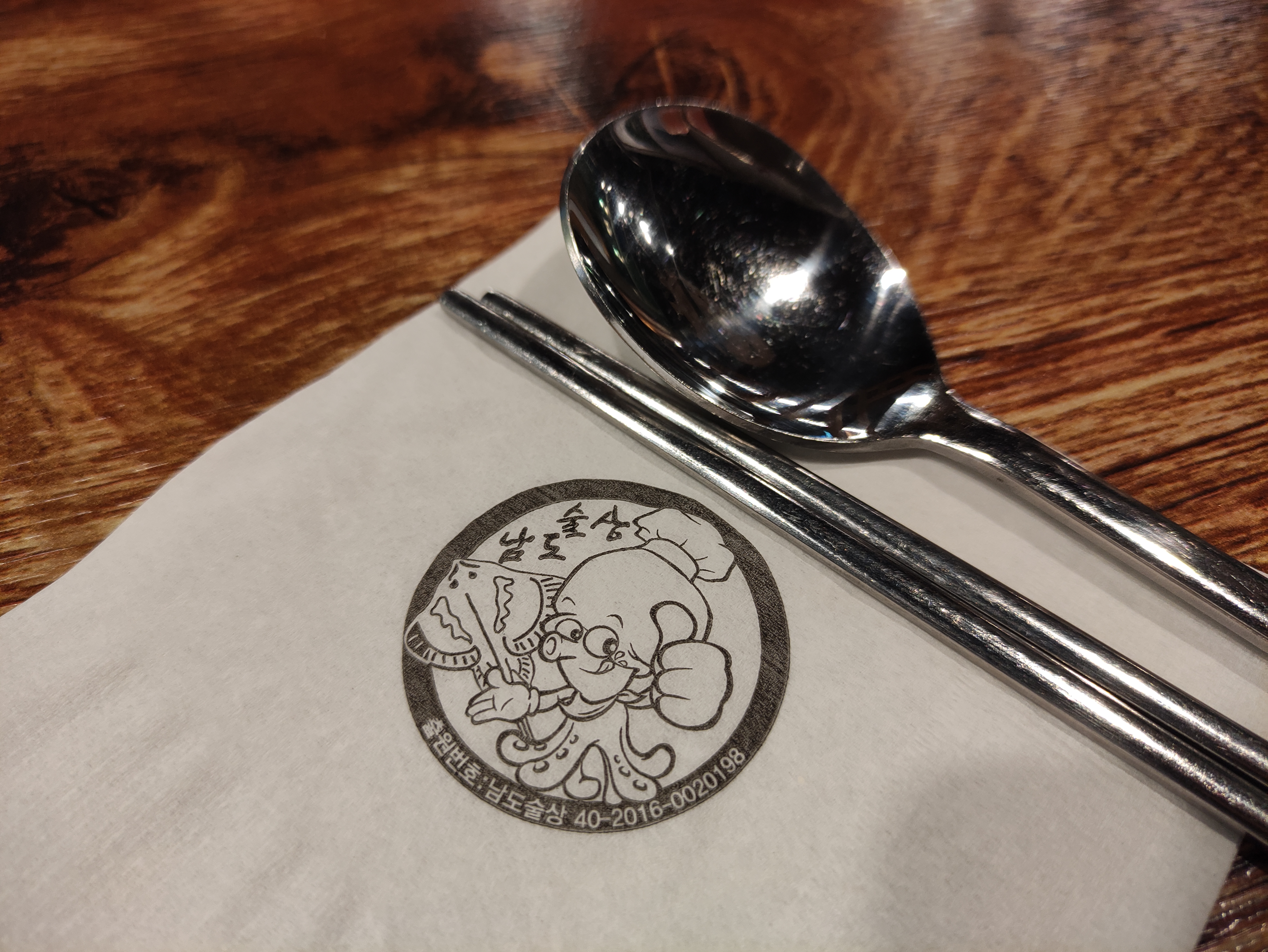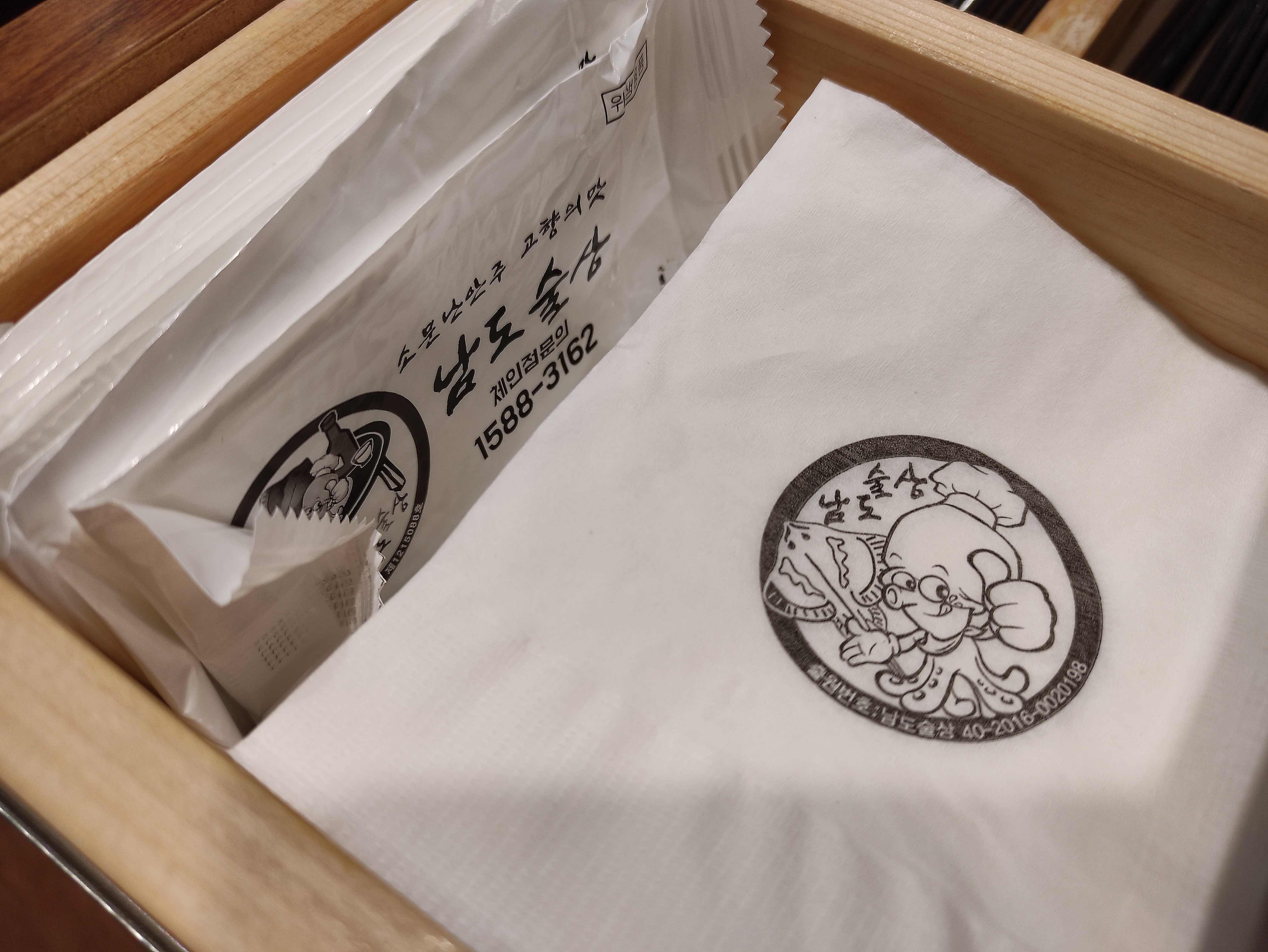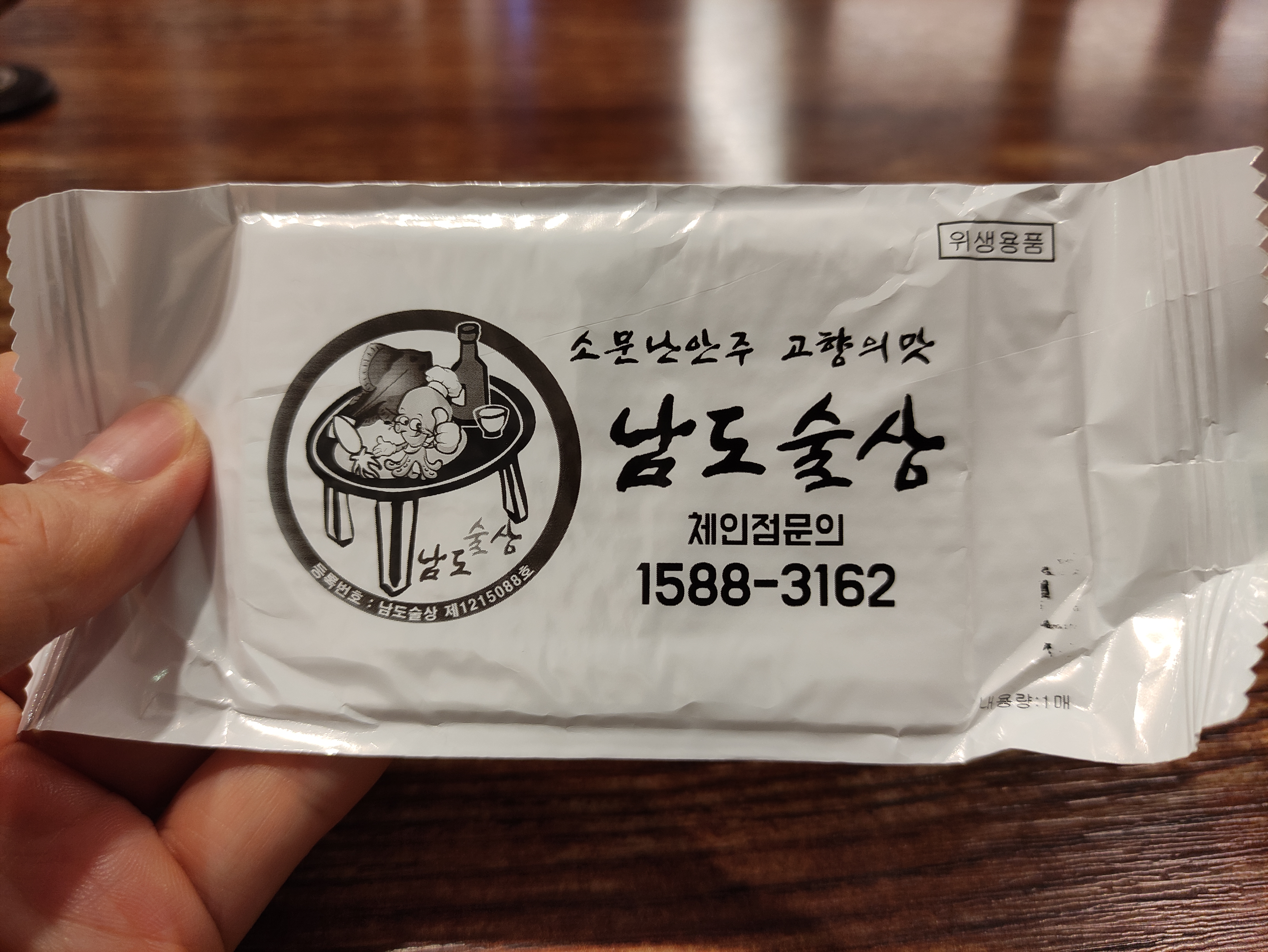 슬라이드형 수저함안에 수저랑 물티슈 등이 들어있습니다. 소문난안주 고향의 맛 남도술상입니다.