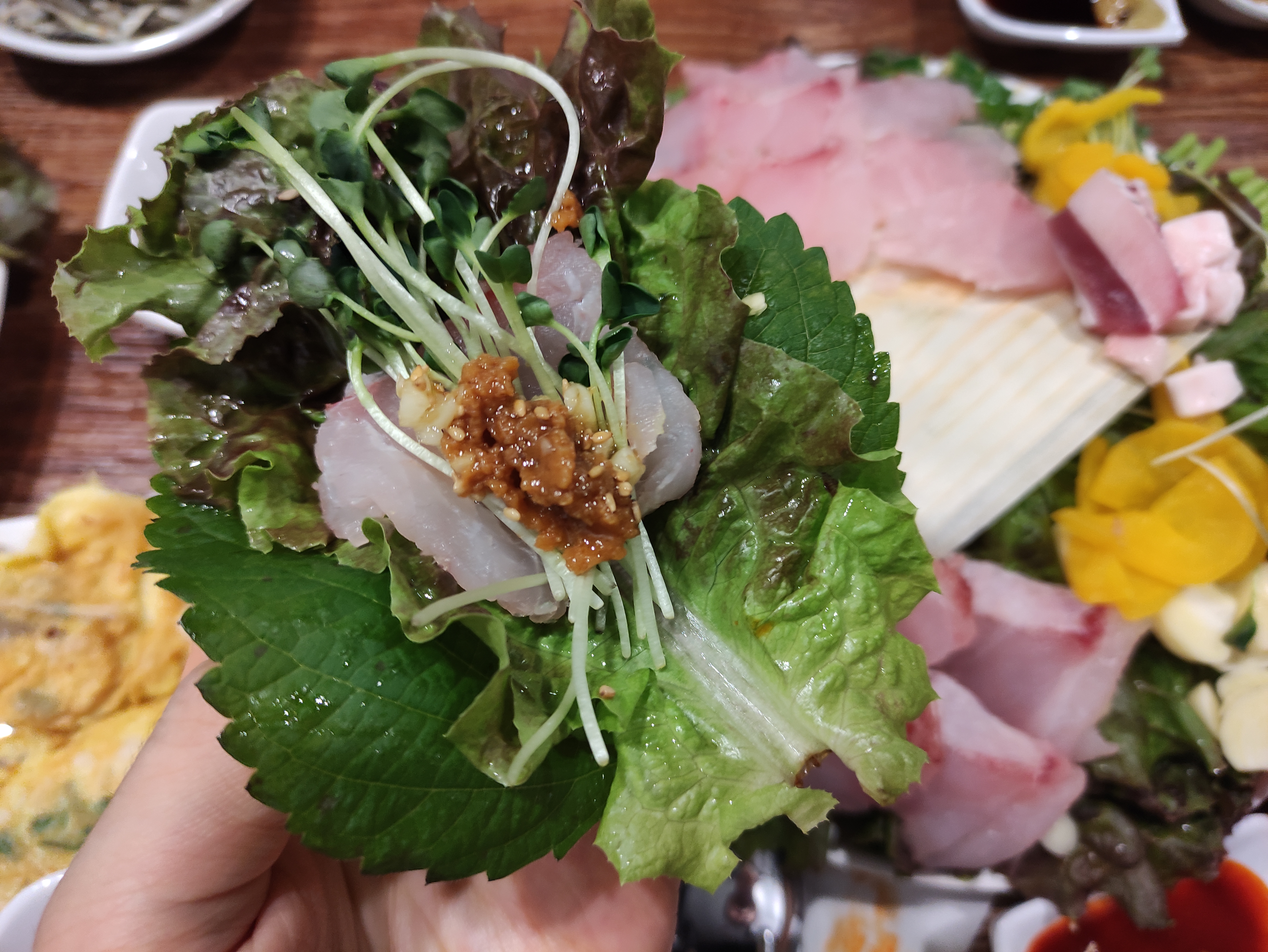 밑반찬도 넘 맛있고 민어회도 정말 맛이좋네요.
