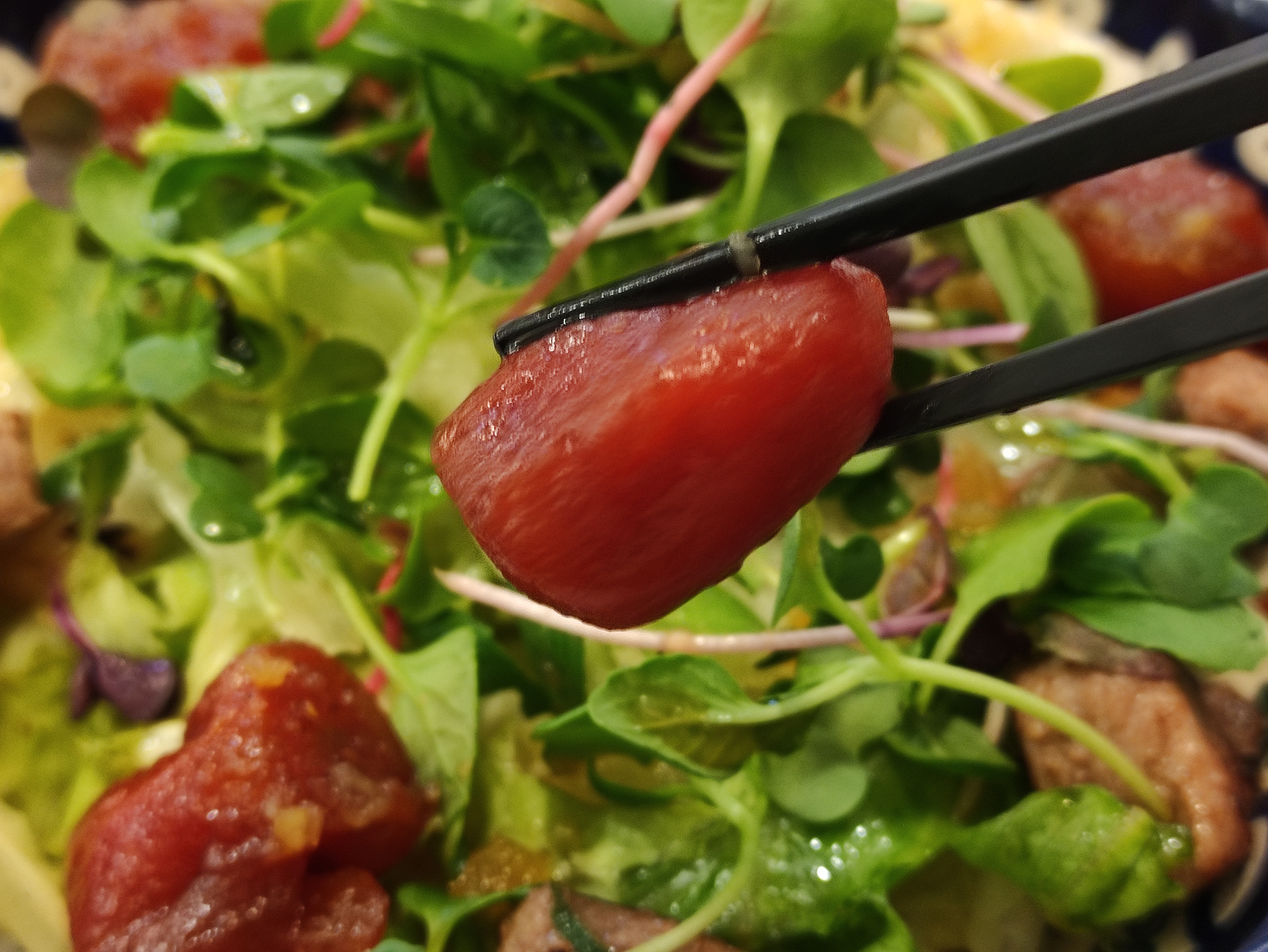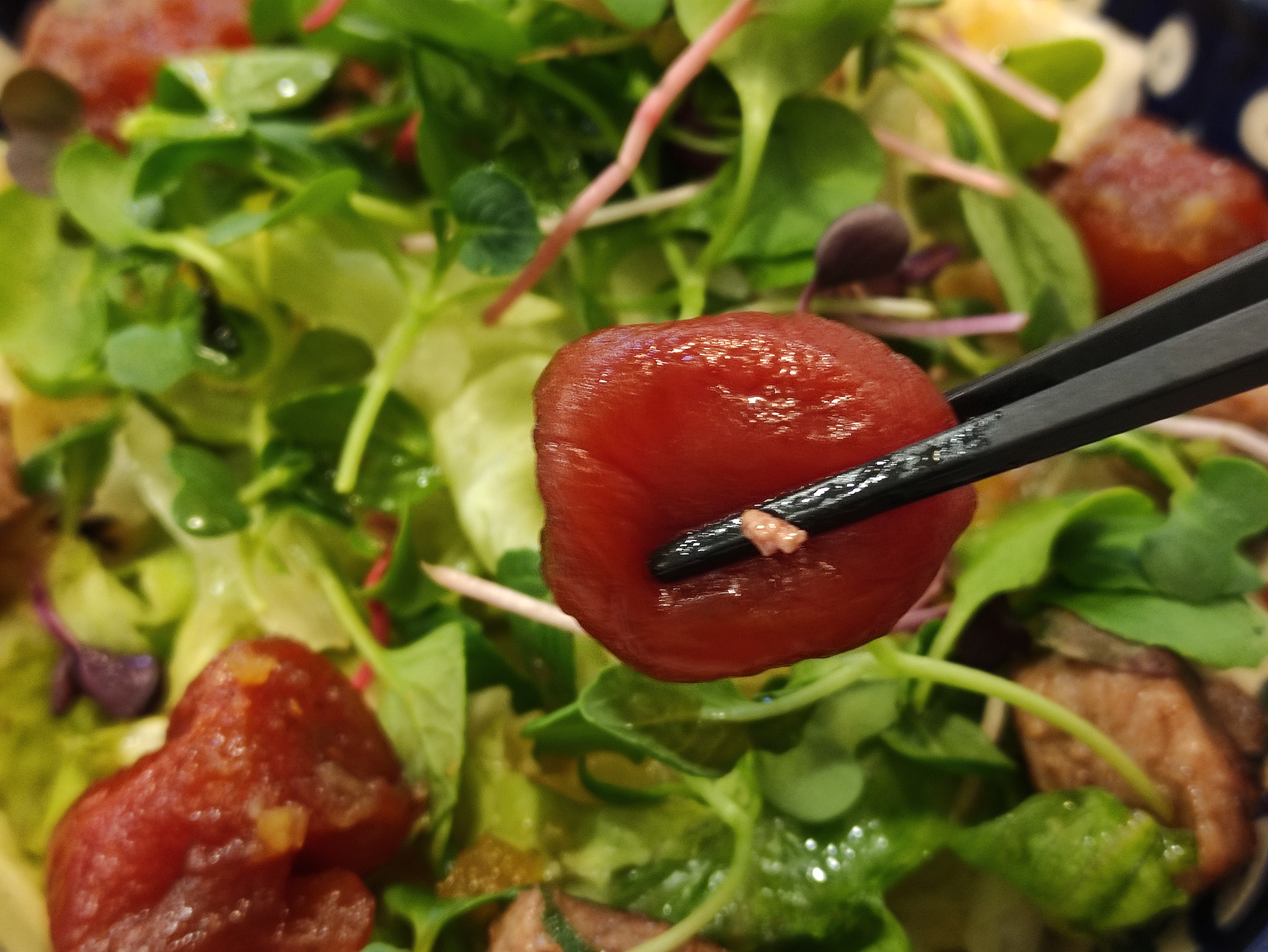 샐러드도 넘 신기하고요 방울토마토 껍질벗기니 놀랍도록 식감이 부드럽네요 처음알았어요.