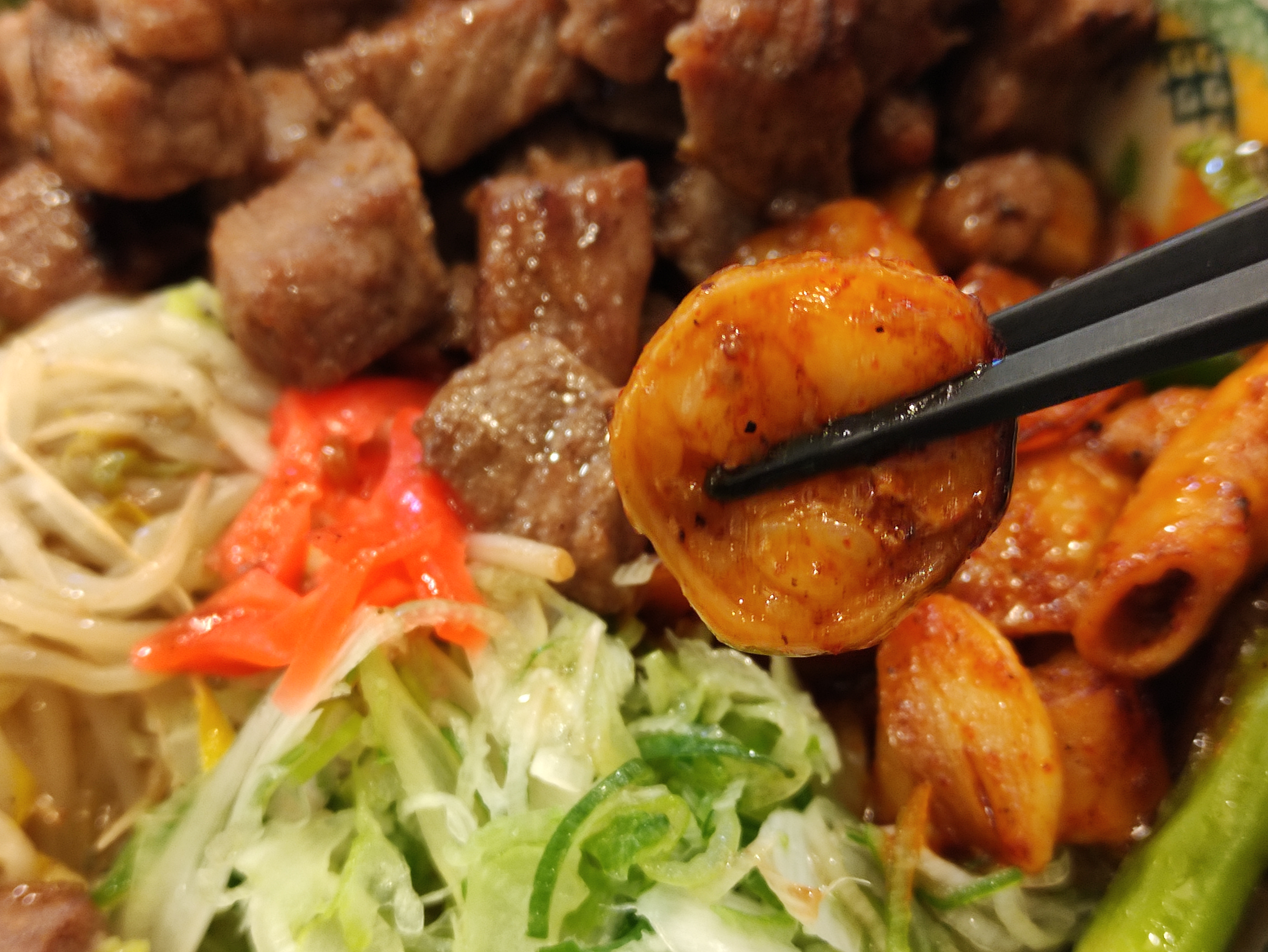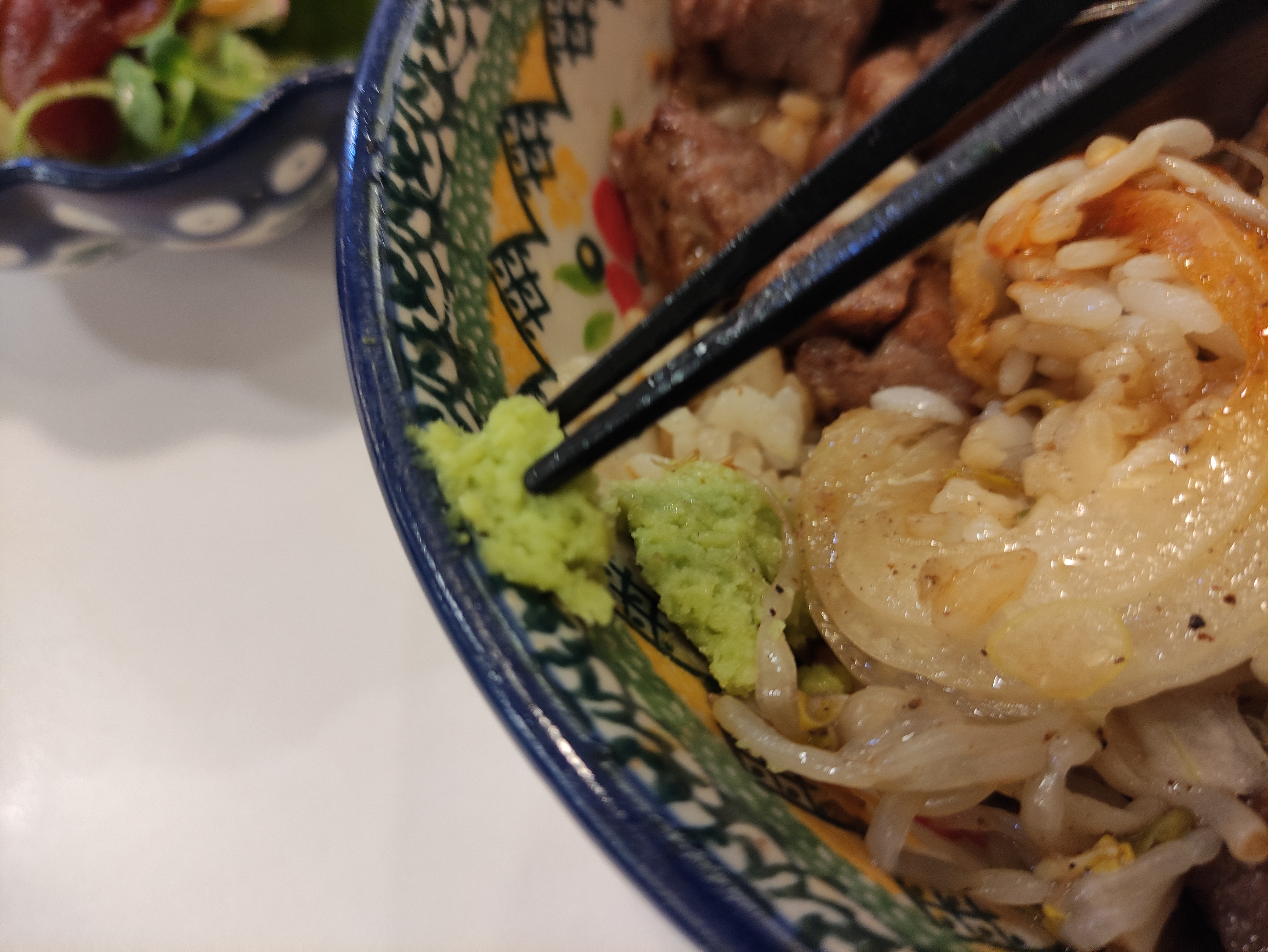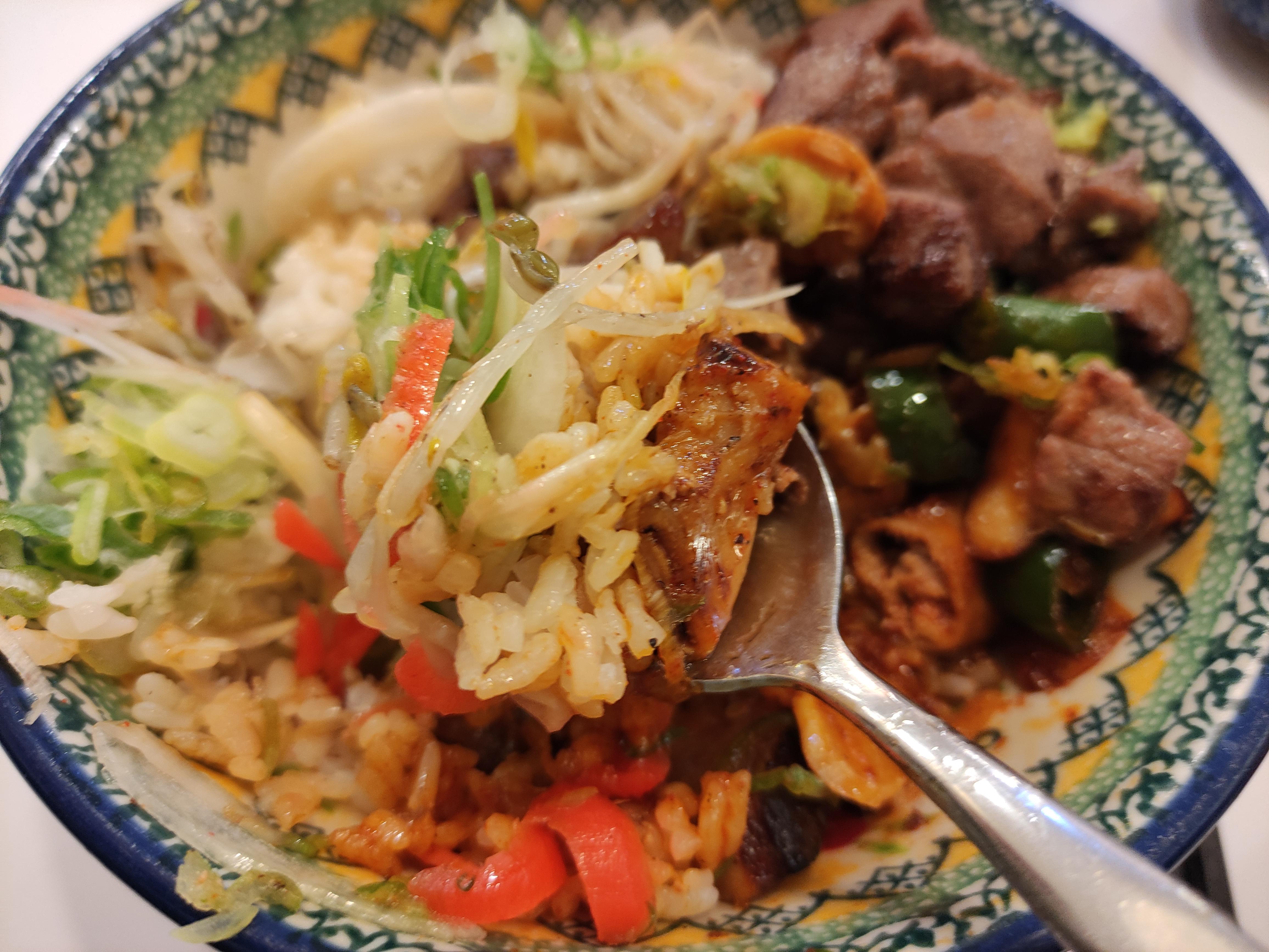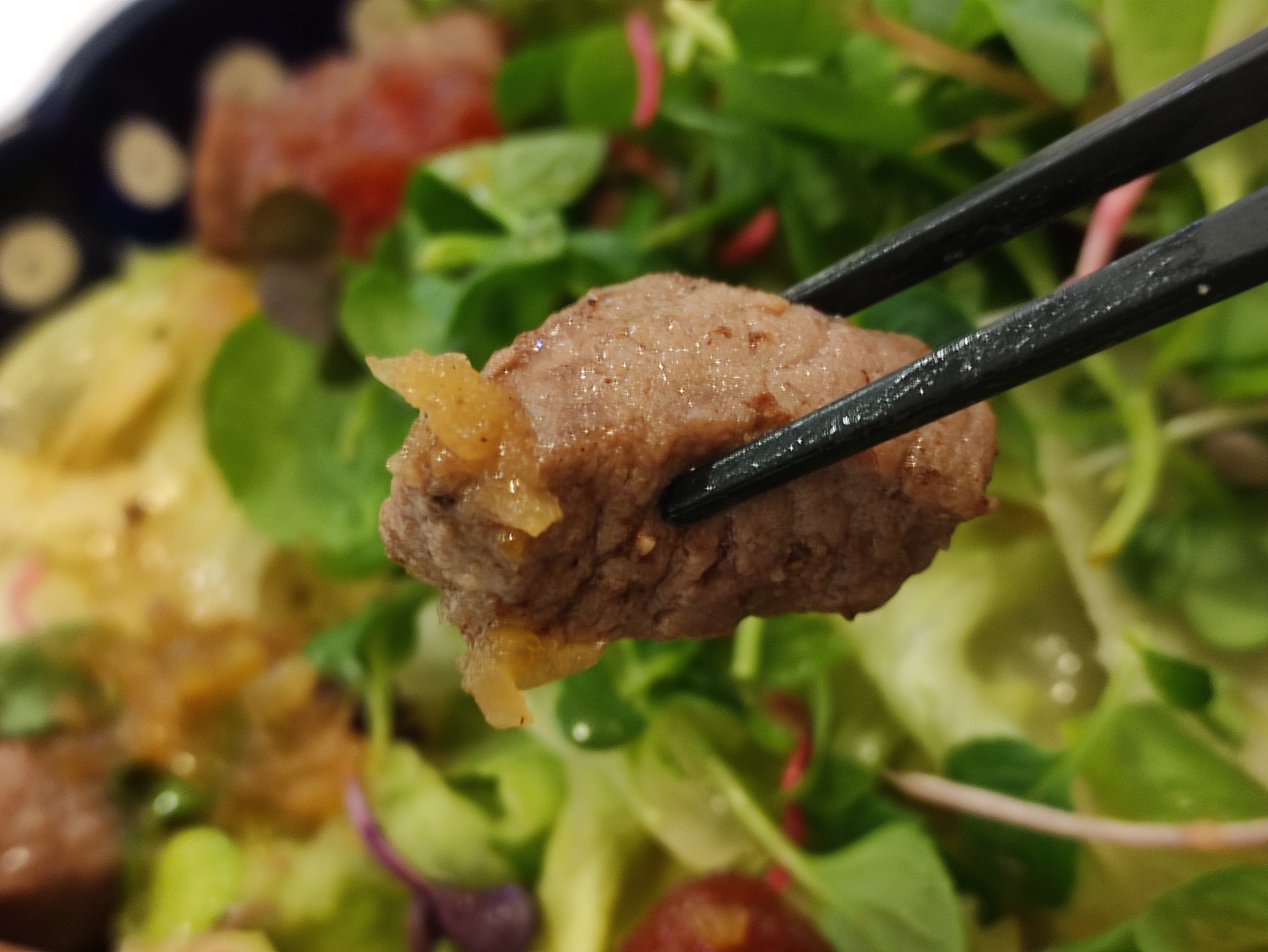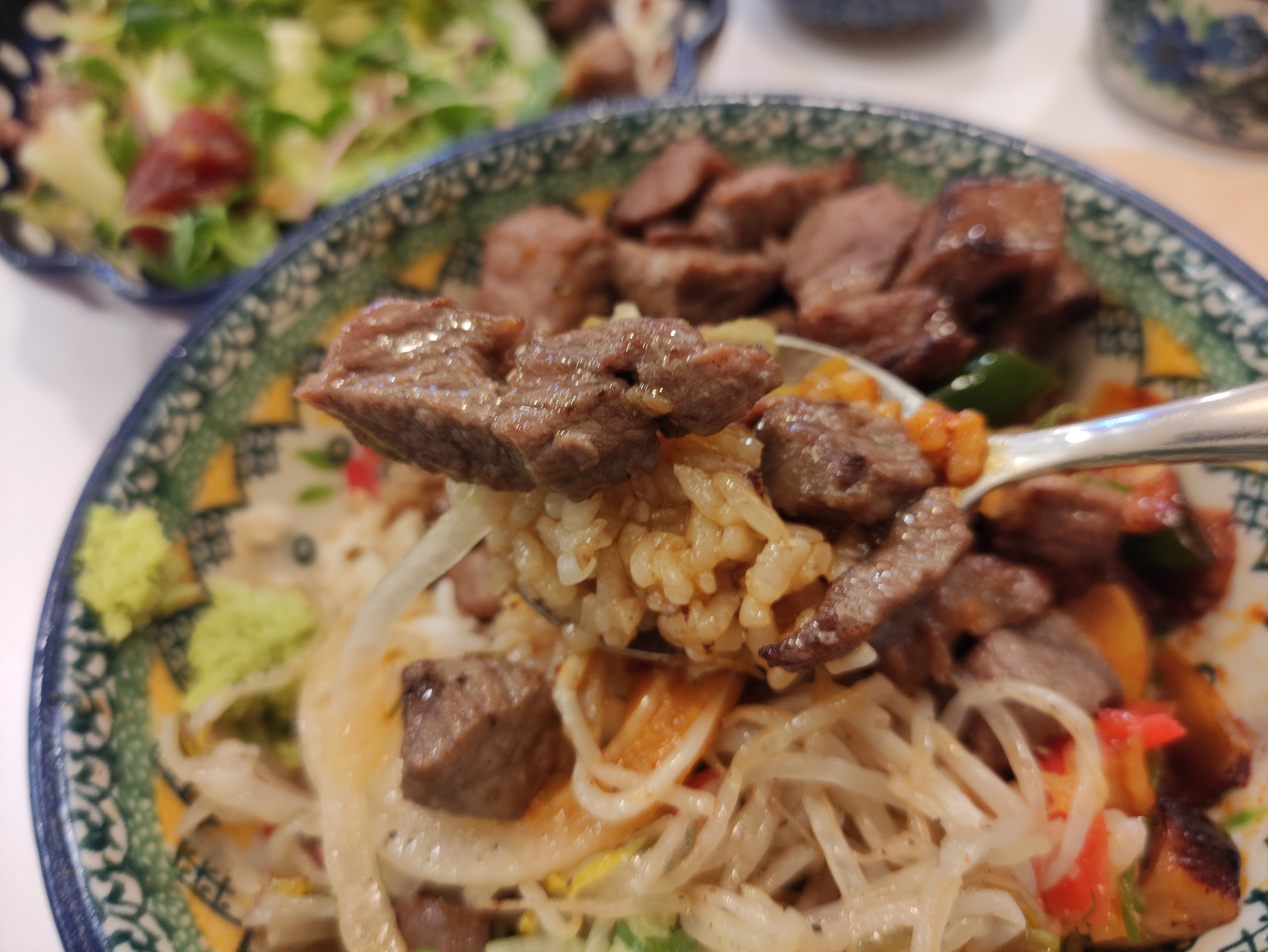 곱대큐덮밥이에요 대창 놀랍도록부드럽고 살살녹고요 곱창 쫄깃해서 씹는맛이좋고 스테이크도 넘넘맛있어요. 특히 곱창소스가 매콤하니 입에 착착붙어서좋았어요.