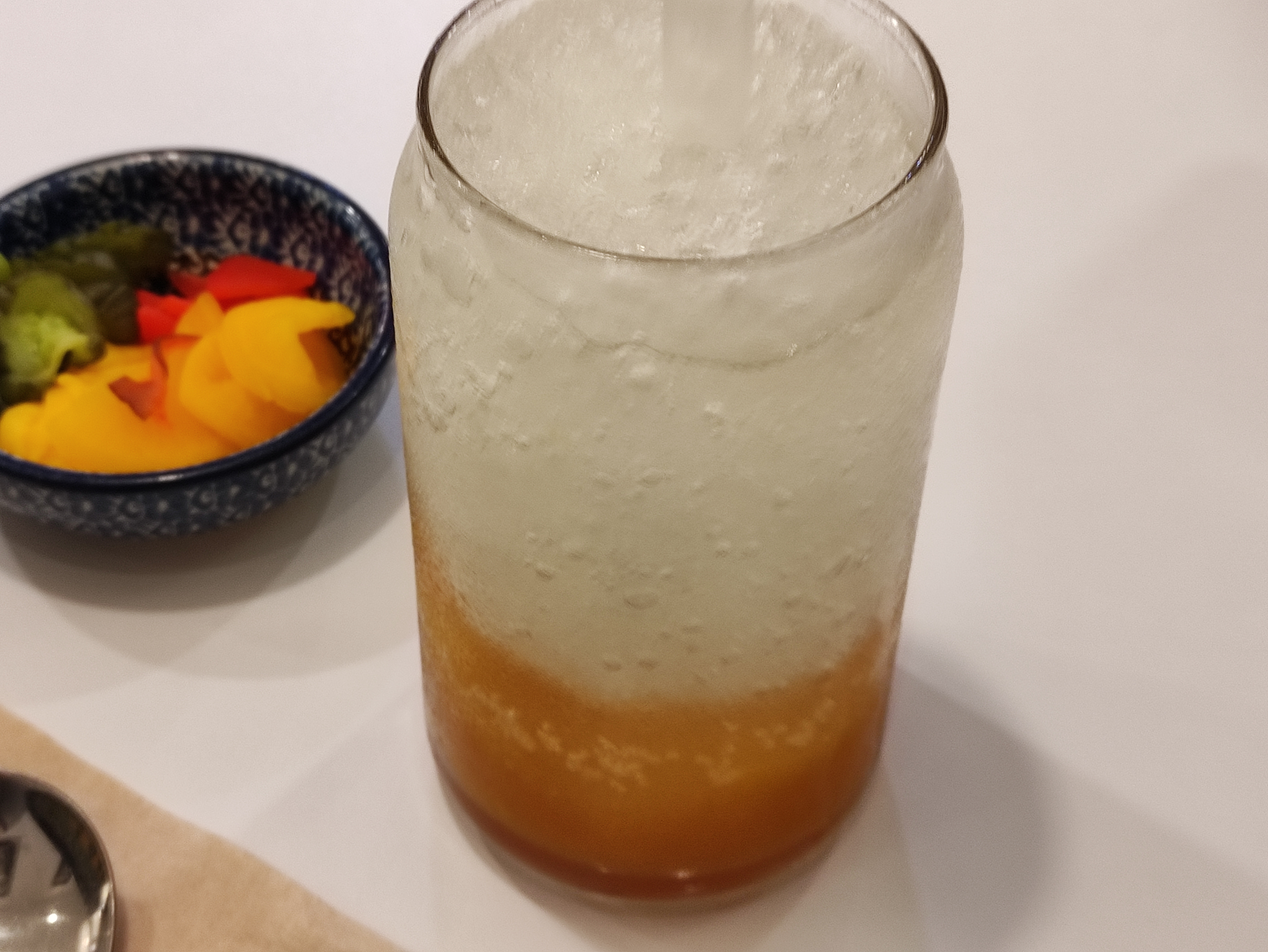 곱대큐와 샐러드 기본찬으로 나오능 단무지피클류와 장국 그리고 아까본 망고주스입니다.