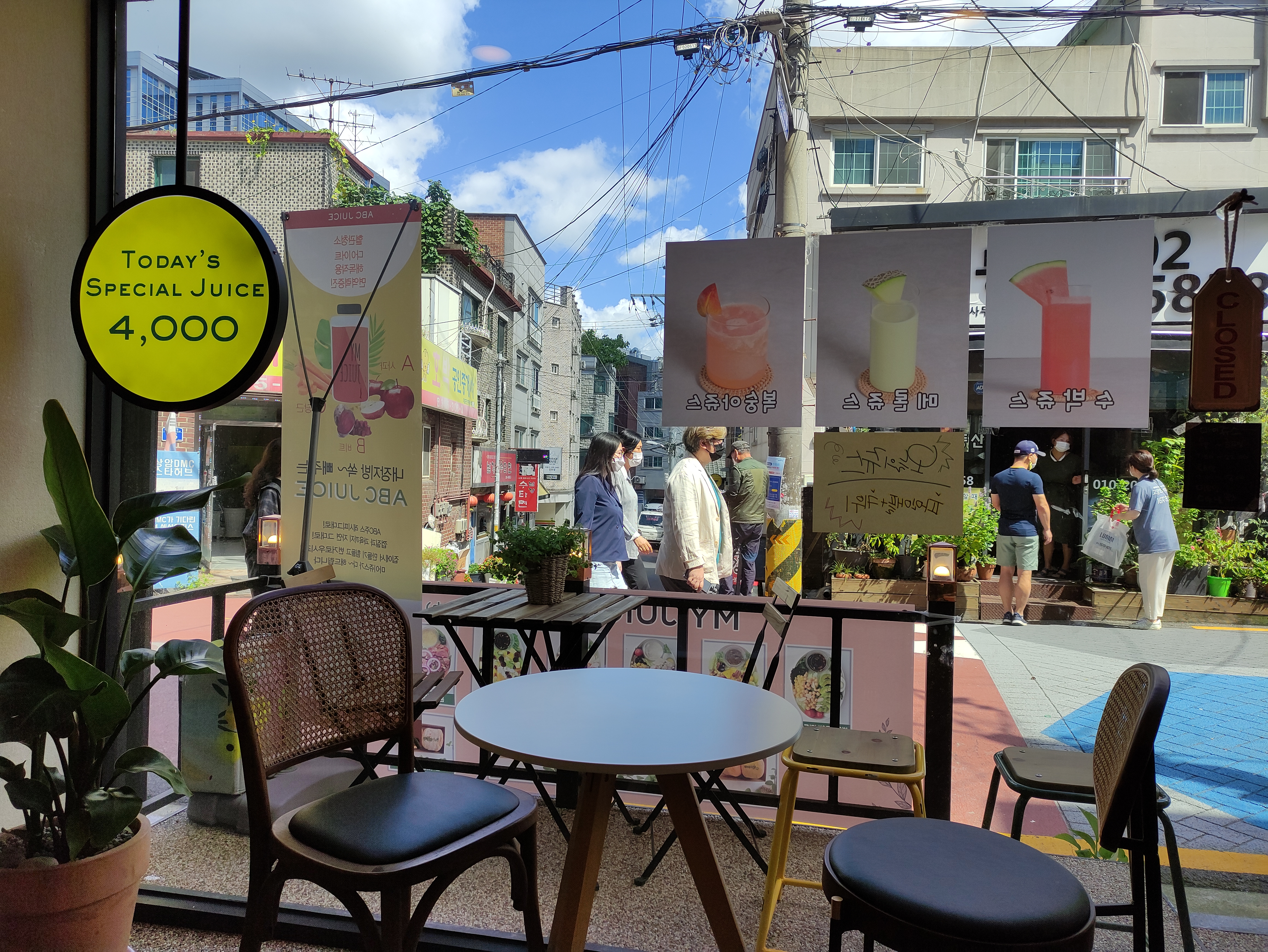상암동에서 일을 하고 난 후 상암동맛집을 하나하나들르는 재미를 느끼고 있어요. 이번에도 처음가보는 맛집 마이쥬스에요. 이곳은 매일 다른과일로 만드는 오늘의 쥬스와 다양한 샐러드먹기좋은곳이에요.