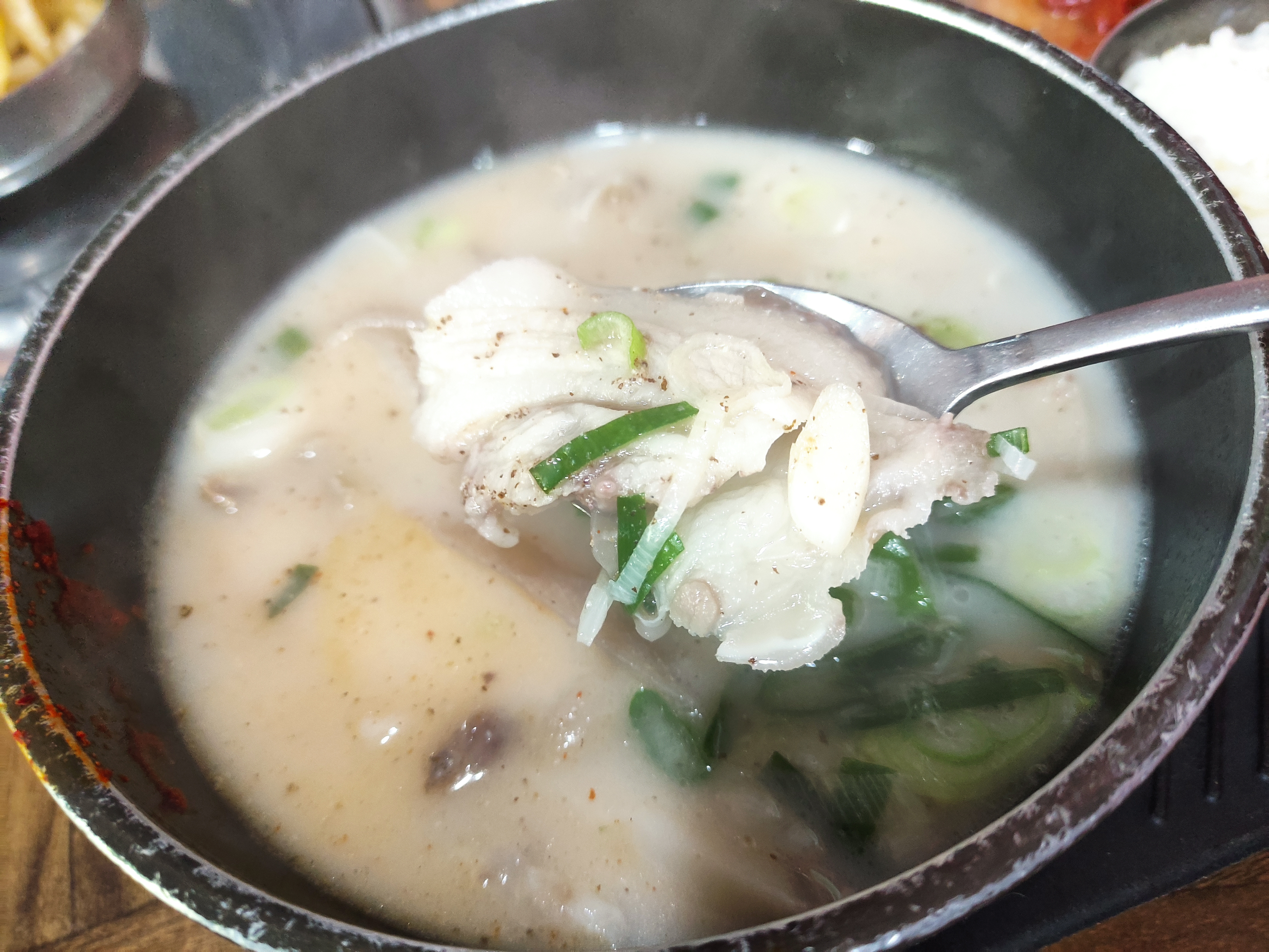 저는 돼지국밥을 먹었고요. 다대기와 들깨가 들어있지만 풀어져있진않아서 매운것을잘못먹는 저같은분들은 다대기를 빼서 먹음 됩니다. 막 깔끔하거나 그렇기보다 맘편히 국밥한그릇비울수있는 서민적인분위기에 편한맛집이에요. 돼지국밥도 막 뛰어나기보다 소탈하고 무난하게 잘 먹은느낌입니다. 점심에 국밥먹고싶을때 종종오려고요. ㅎㅎ 든든하게 맛있게 잘먹었습니다.