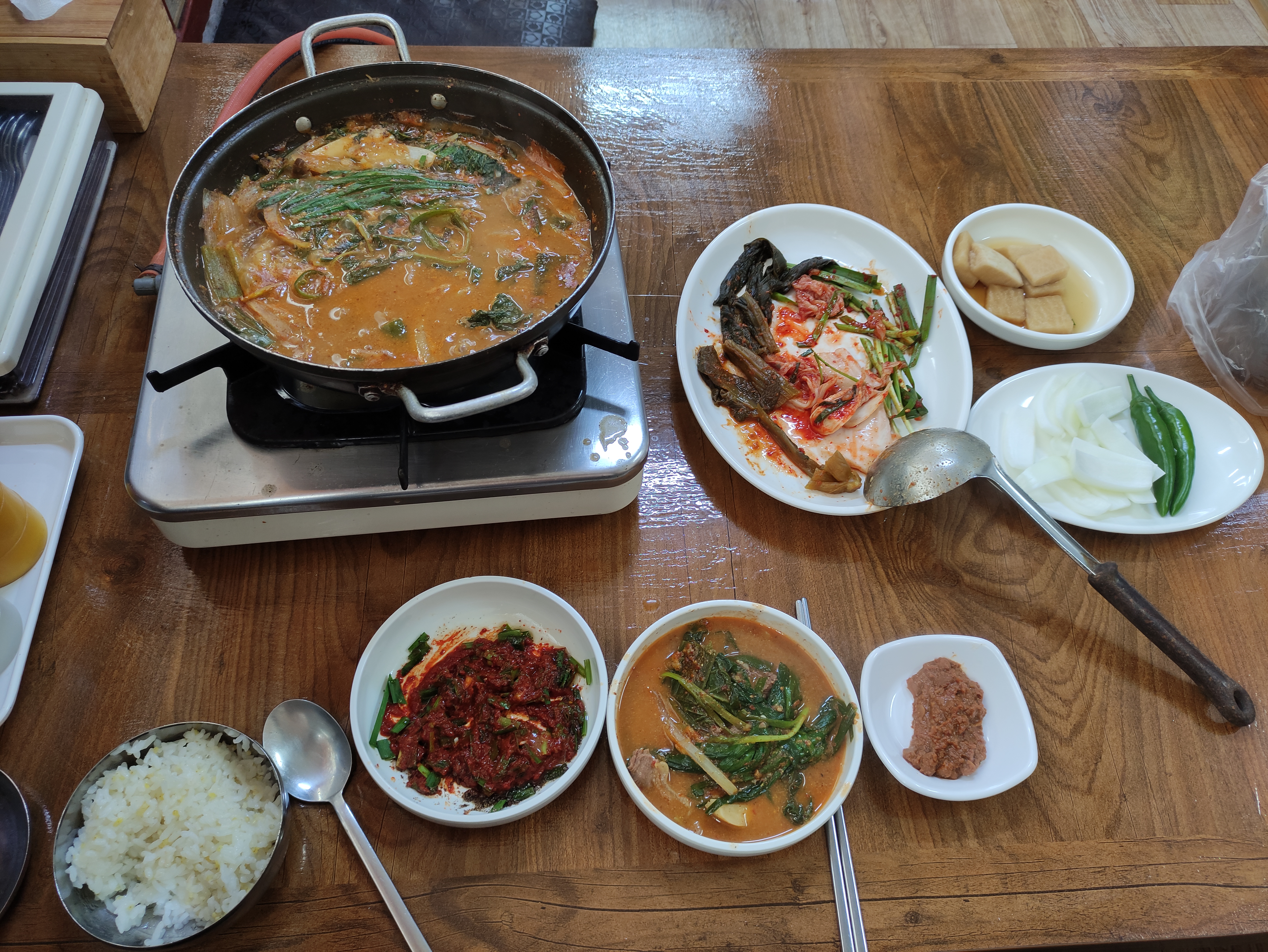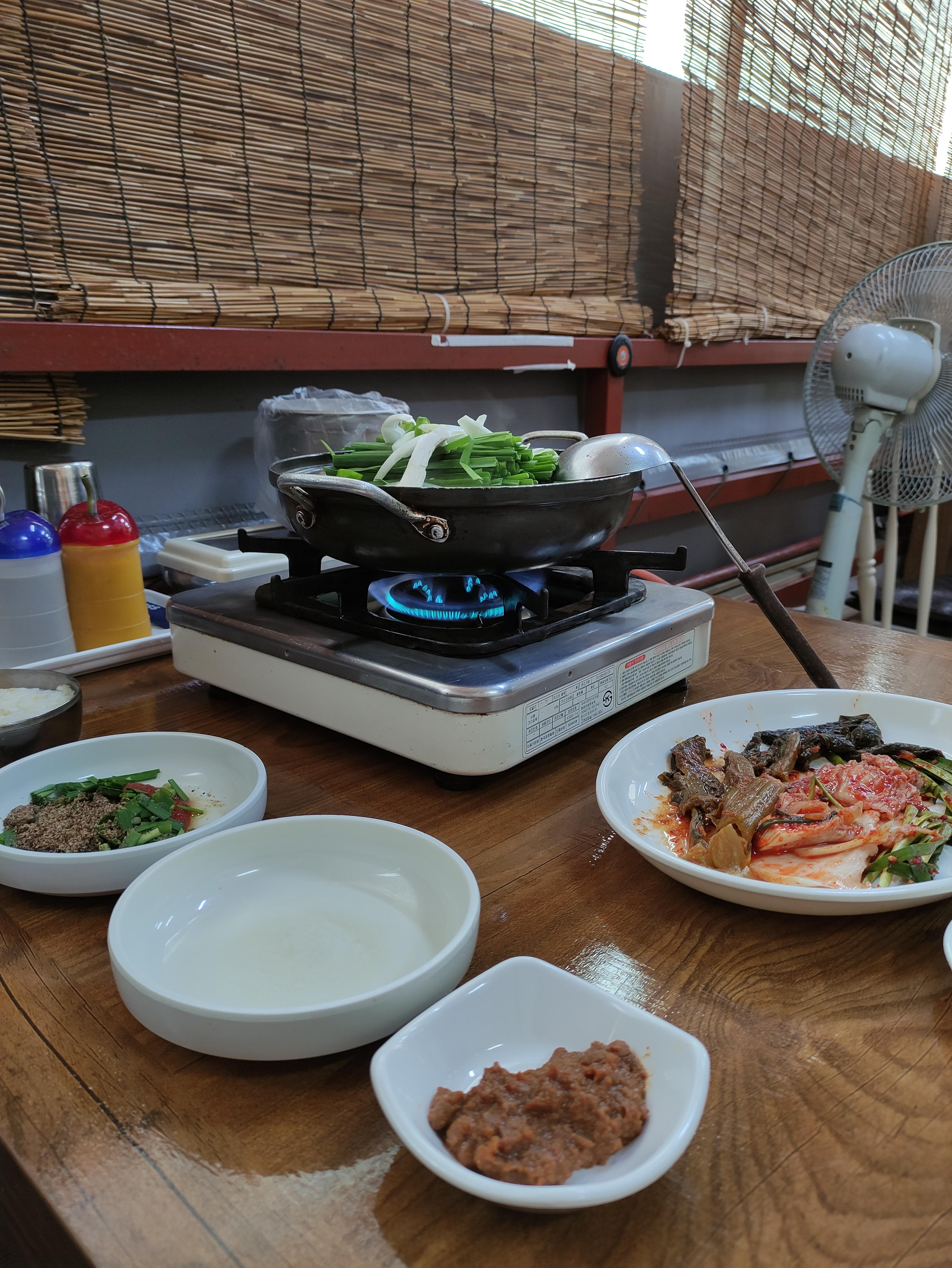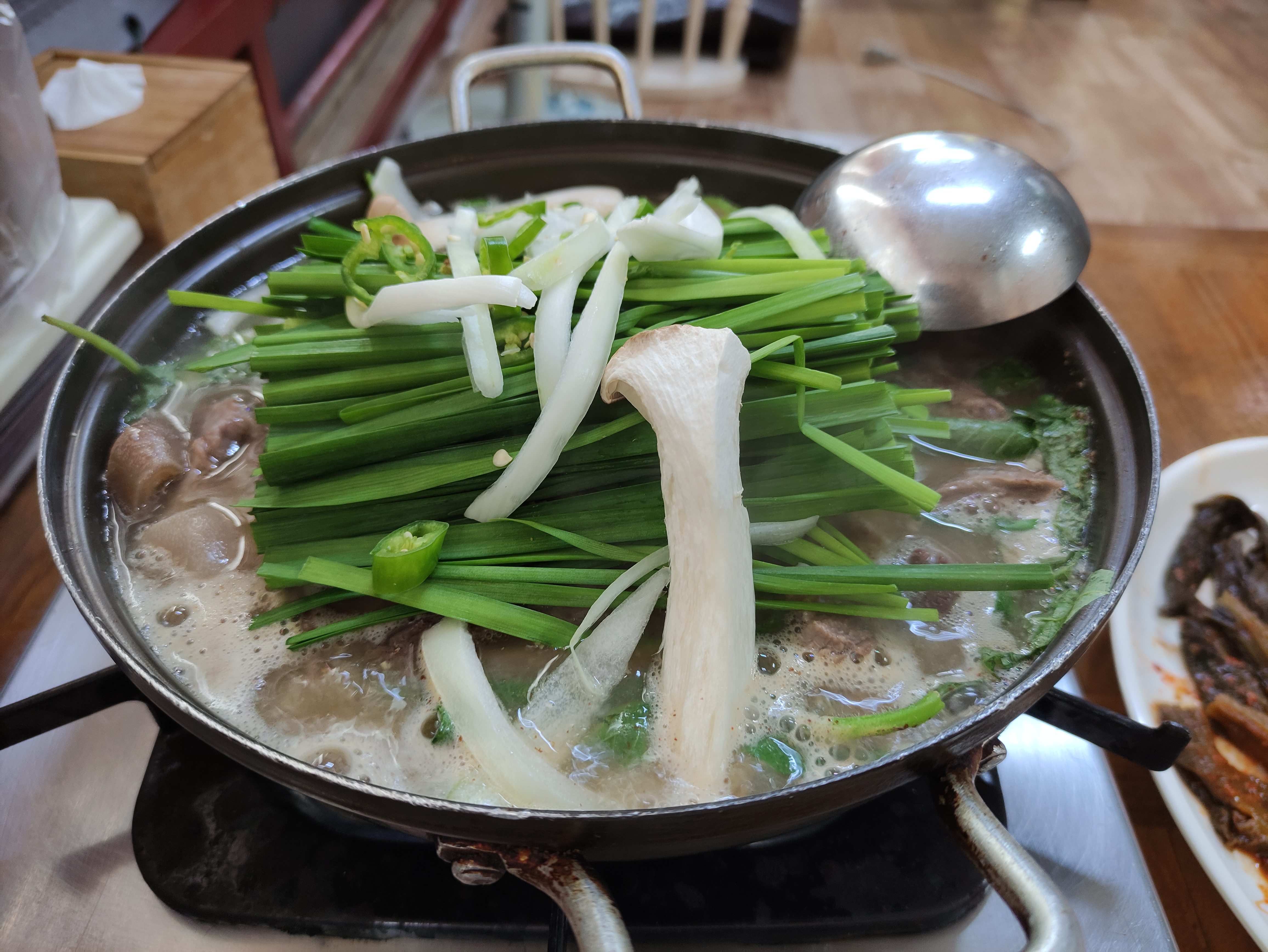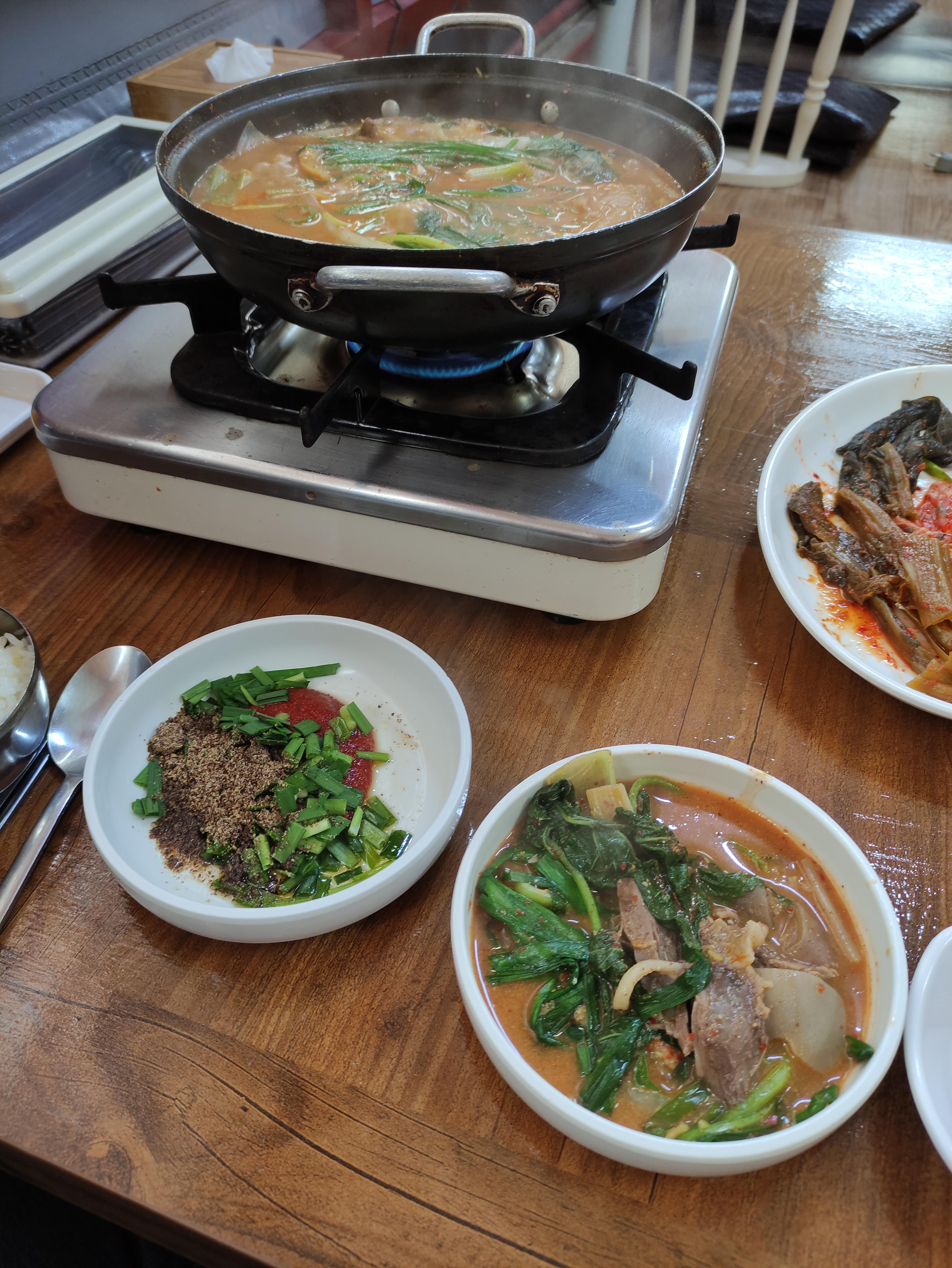 테이블에 가스렌지가 있고 주문하면 얼마지나지않아 전골이 나와요. 산악모임에서도 많이들오시더라고요.