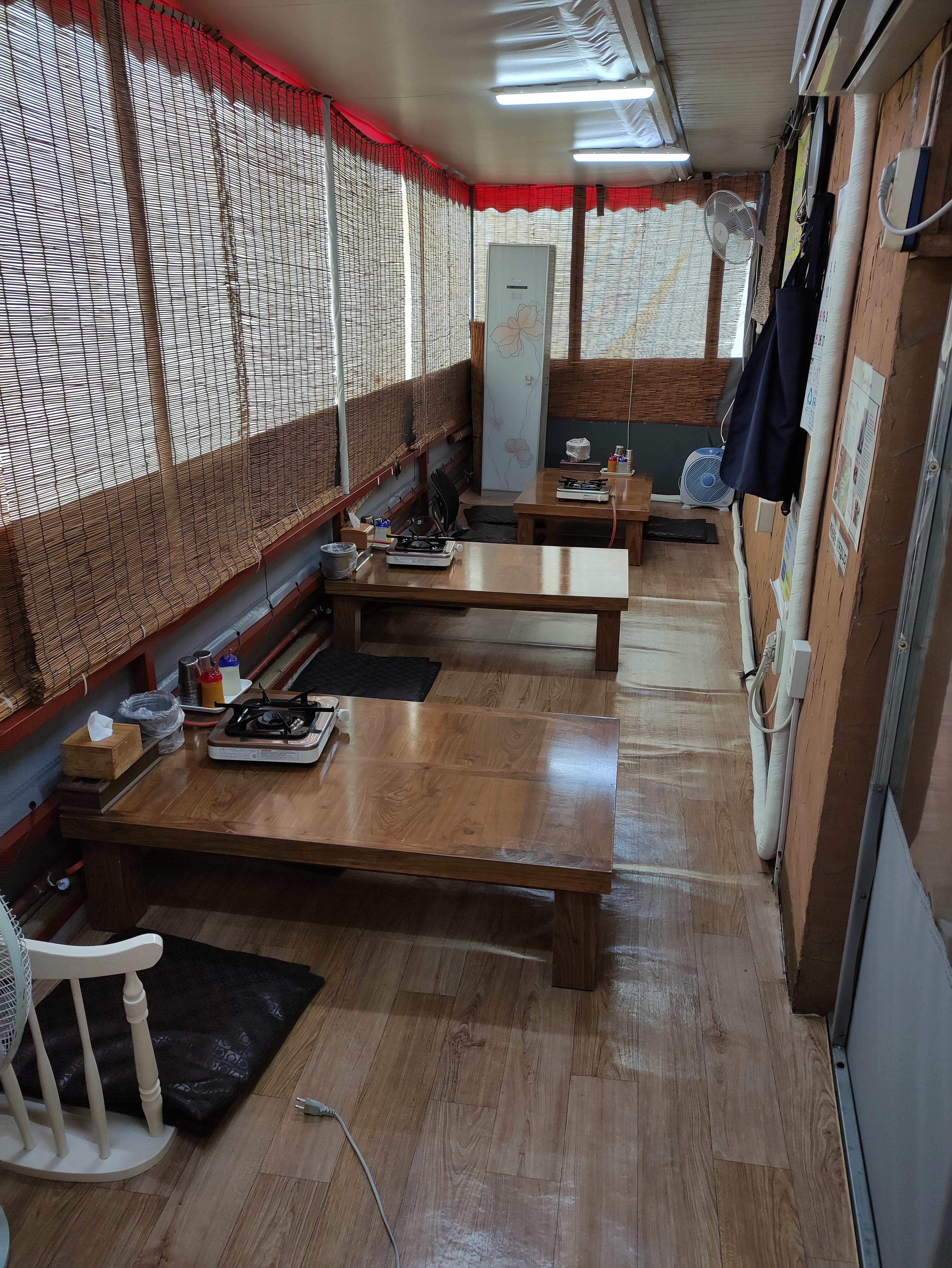 매장안에 입식테이블이, 매장 입구왼쪽에는 좌식테이블이 있어요. 저는 좌식테이블에앉았습니다.