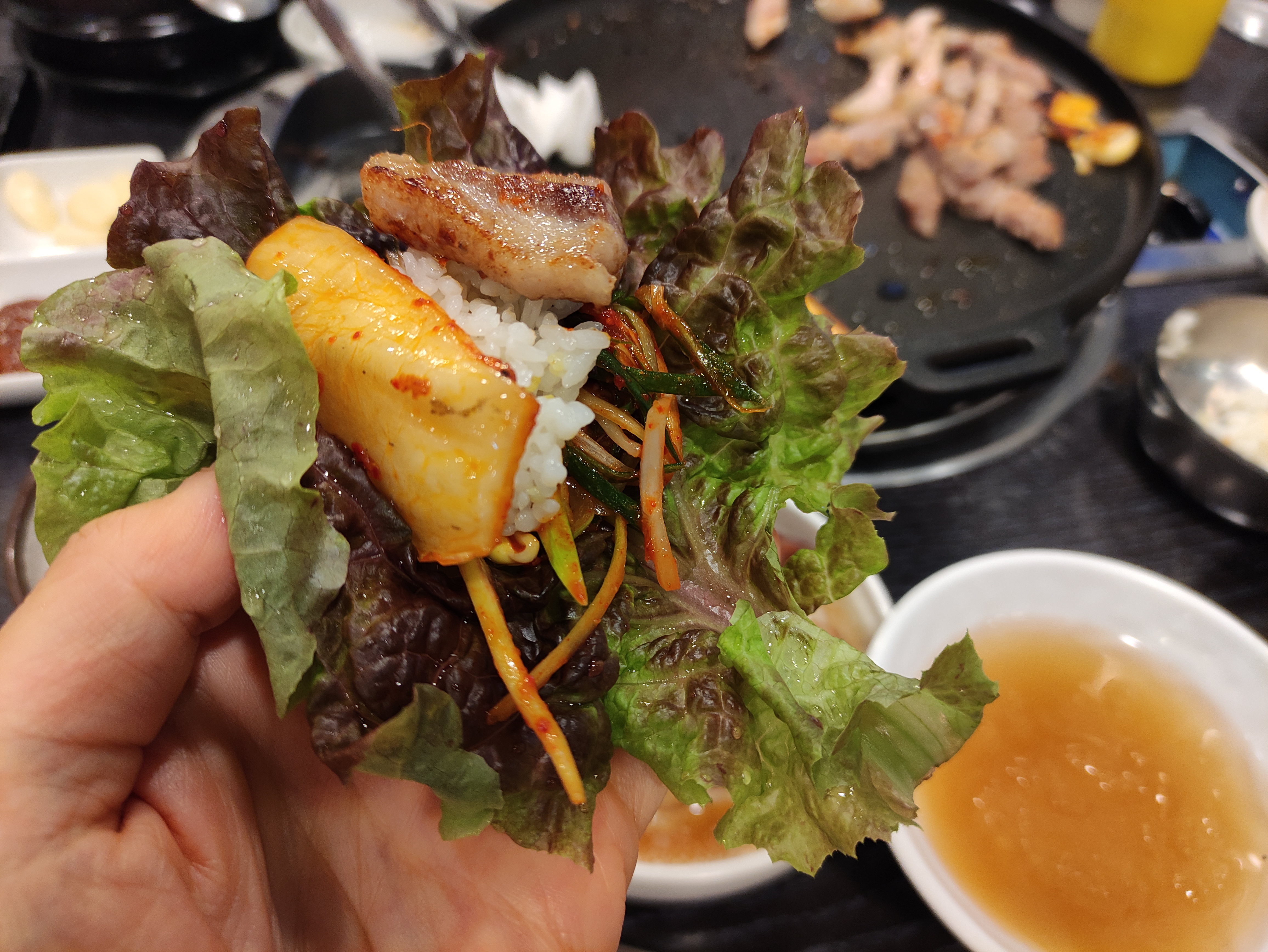 고기가 숙성이 잘되어 감칠맛과 식감이 정말좋아요. 특히 김치가 국내산이고 반찬과 소스가 입에 잘맞아서 참 좋았어요.