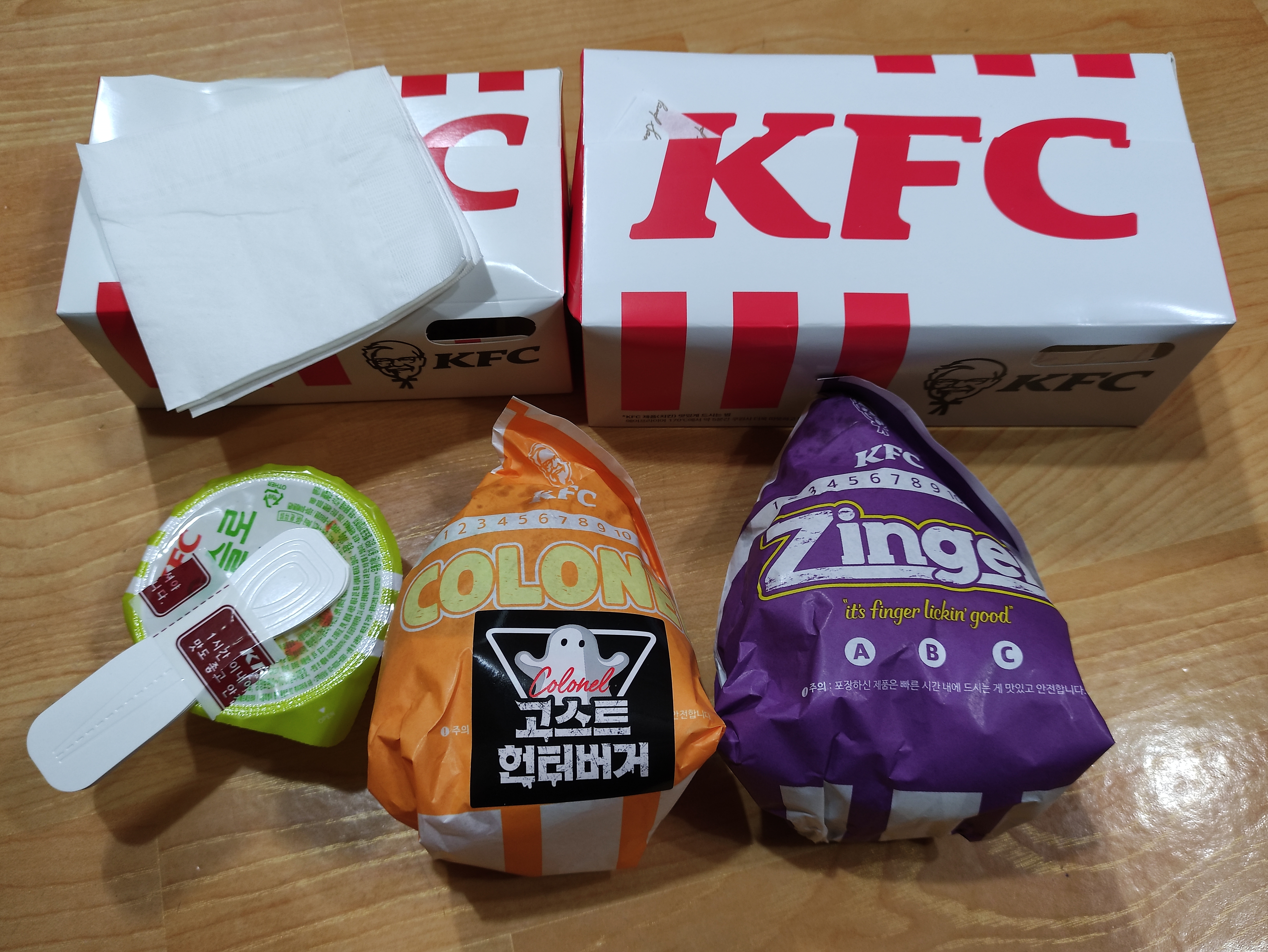고스트팩에 포함된 징거버거입니다. 저의 케이에프시 최애메뉴죠 바삭 매콤한 패티와 야삭양상추맛이 예술입니다. ㅎㅎ오늘은 맛있게 먹고 다이어트는 내일부터 하기로 해요.