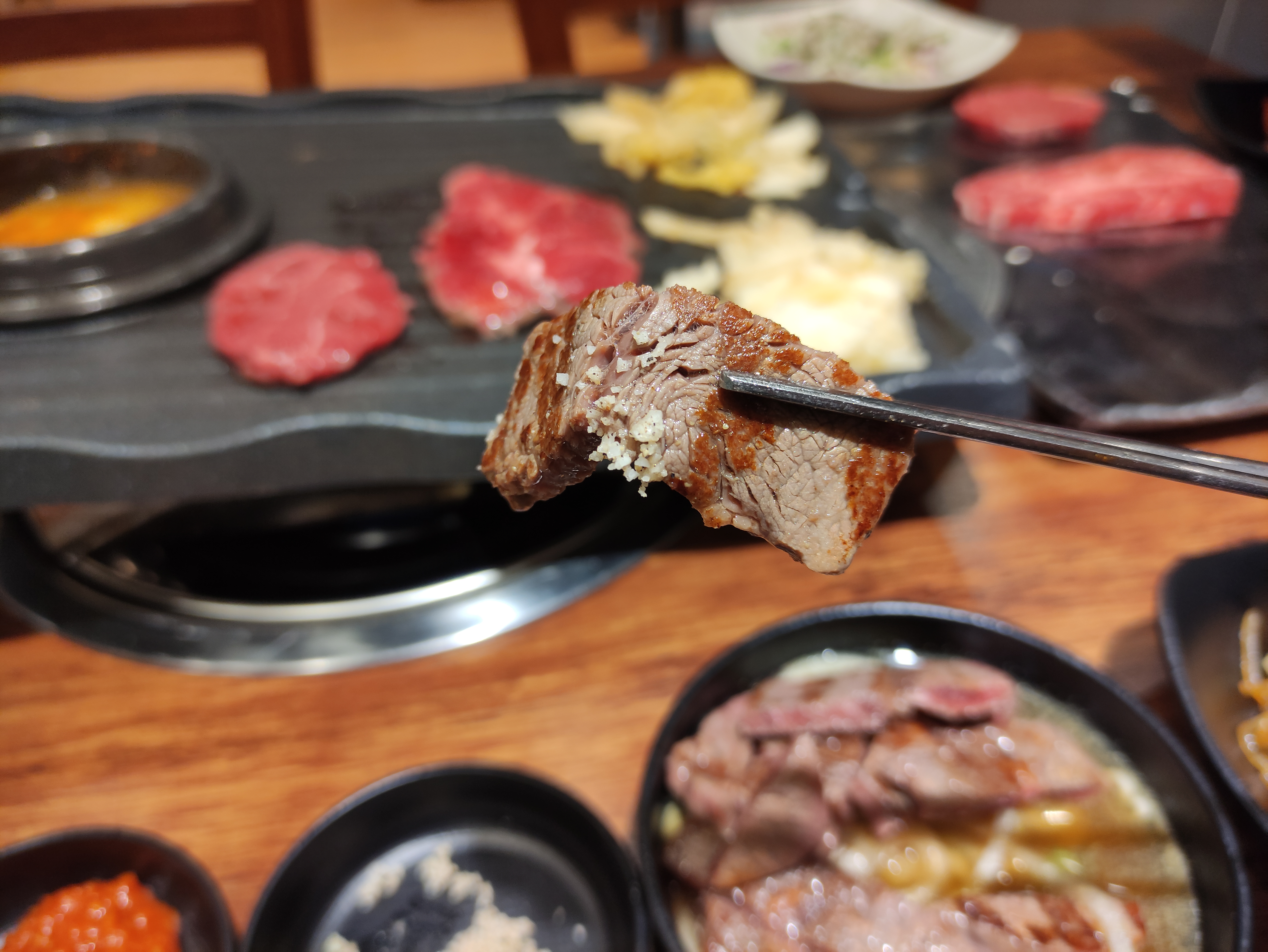 한우부채살은 부채살스테이크먹을때 그 부채살이고요. 안심은 안심스테이크의 그 안심 맞습니다. ㅎㅎ 잘구워진고기 한입물면 육즙이 입안에서 터집니다.