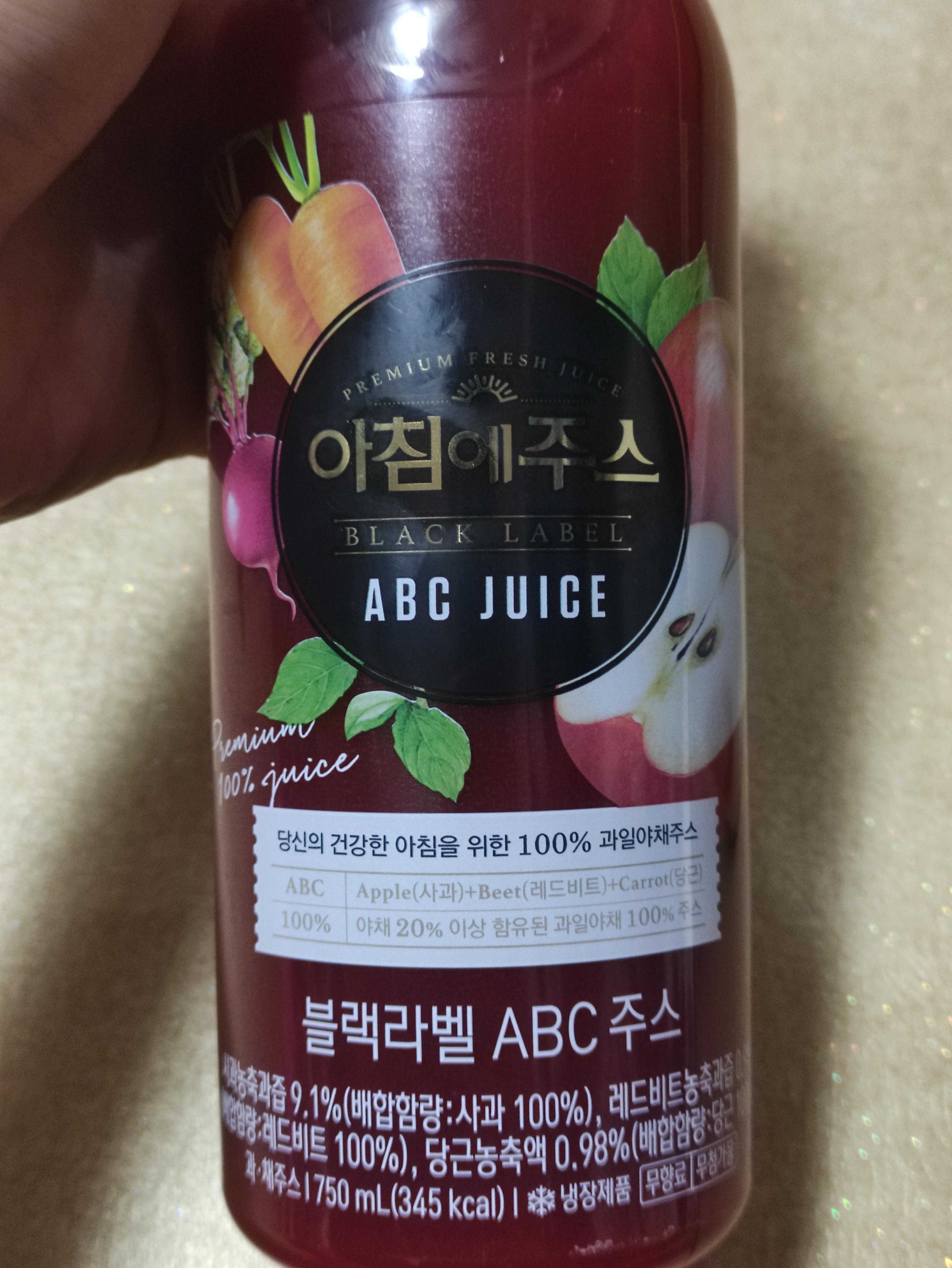 아침에주스 블랙라벨 에이비씨주스를 마셨어요. 아침에주스 블랙라벨은 프리미엄라인인가봐요 에이비씨주스는 애플, 비트, 캐럿의 앞글자 ABC를 의미해요.