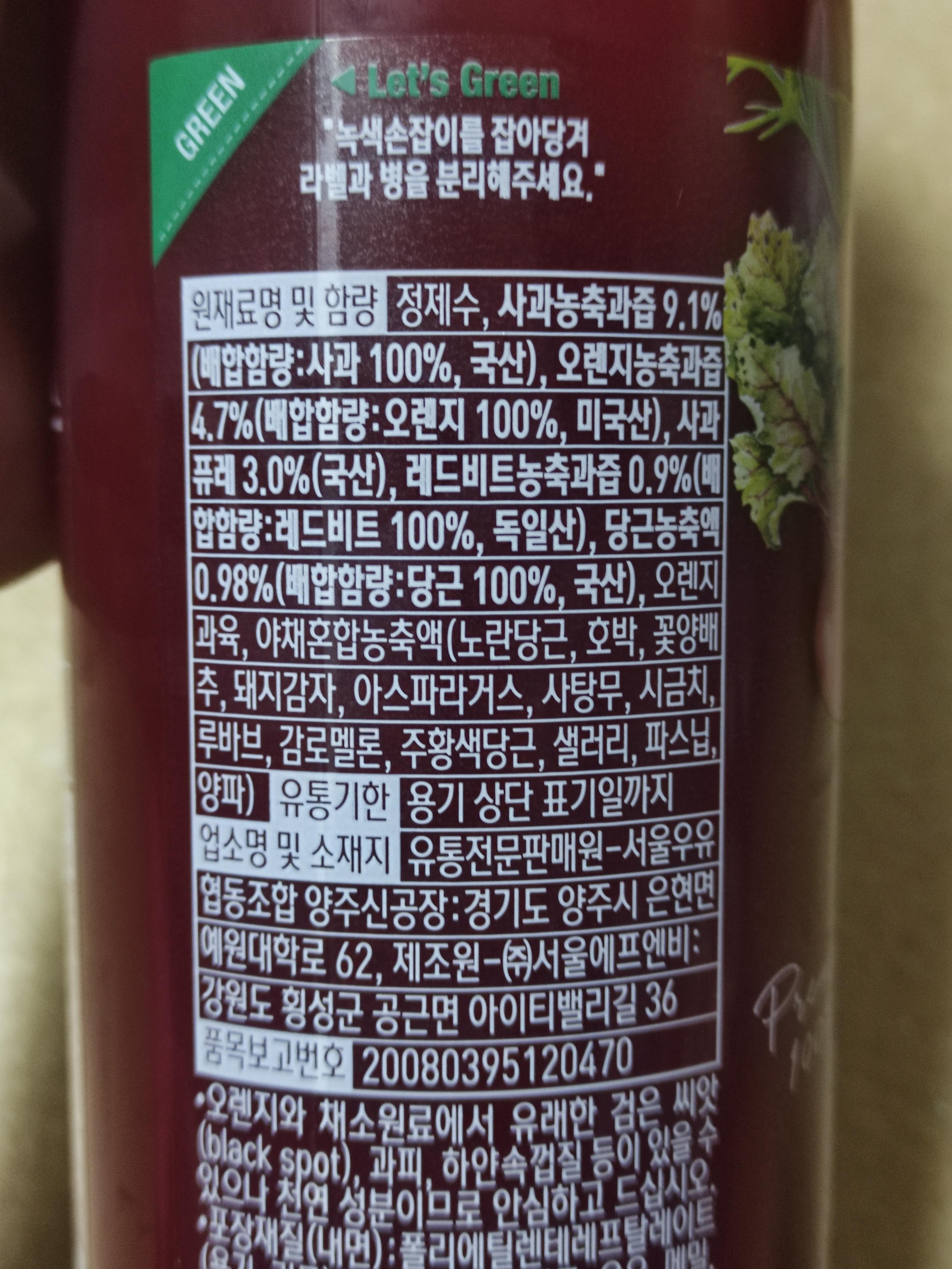 요즘 다이어트, 디톡스 하시는 분들이 즐겨찾는 주스라고 하더라고요. 몸에 독소 빼주고 다이어트에 좋은 쥬스에요. 사과비중이 높아서 마시기도 편하고 참 좋아요. 앞으로 꾸준히 아침마다 마셔야겠어요.