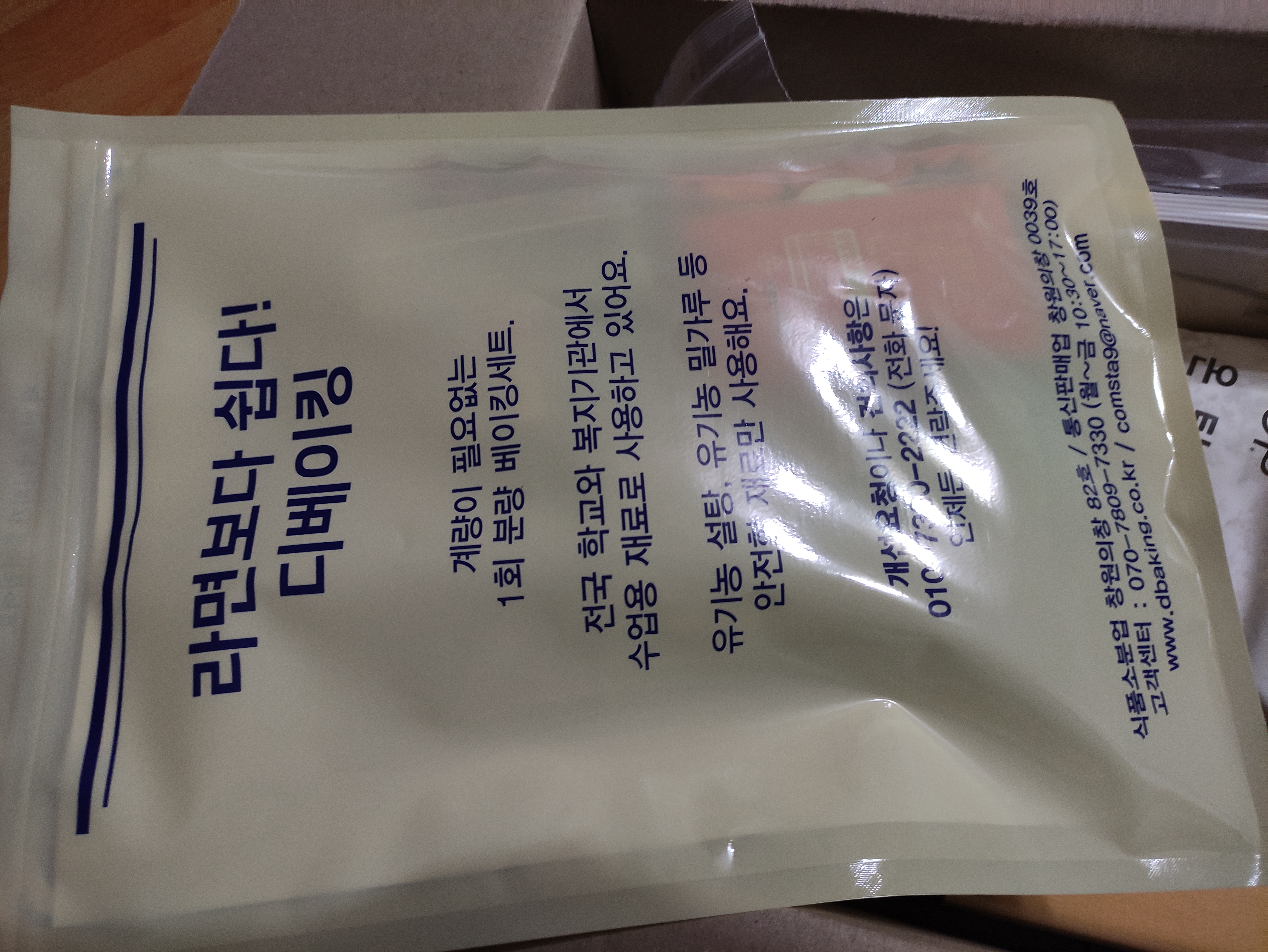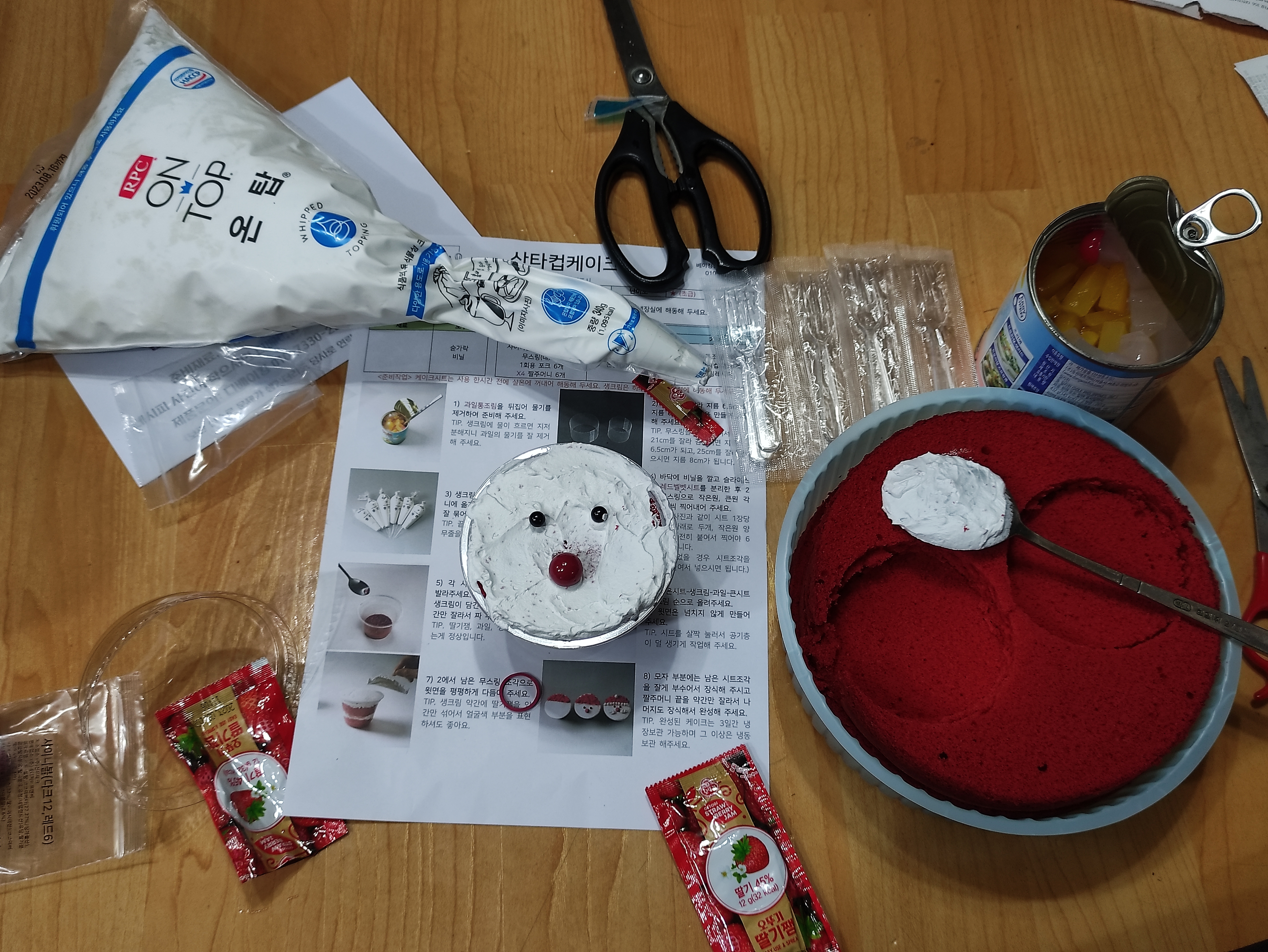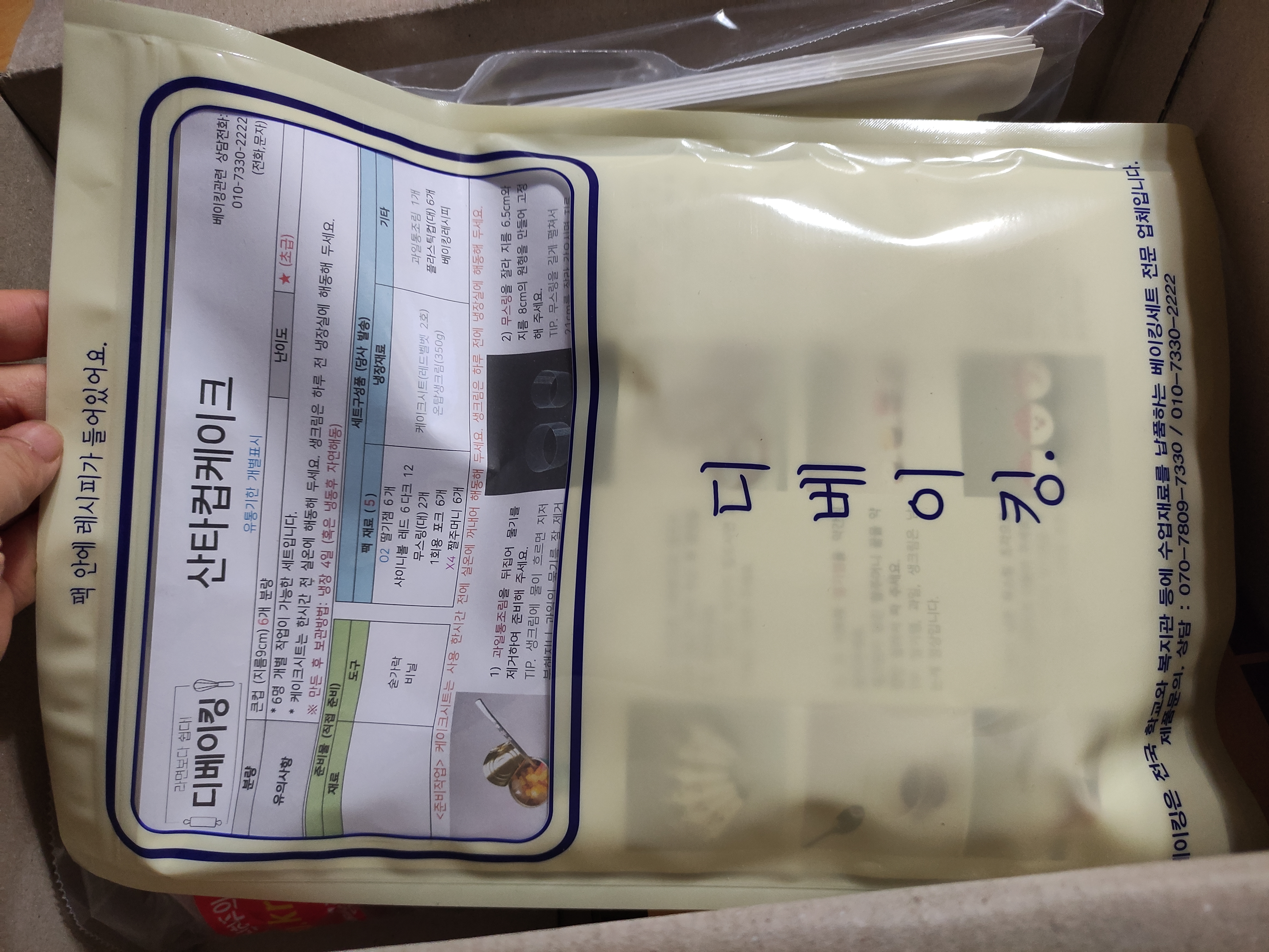 케이크 시트과 생크림, 그리고 케익컵과 포장상자까지 알차게 들어있어요.
