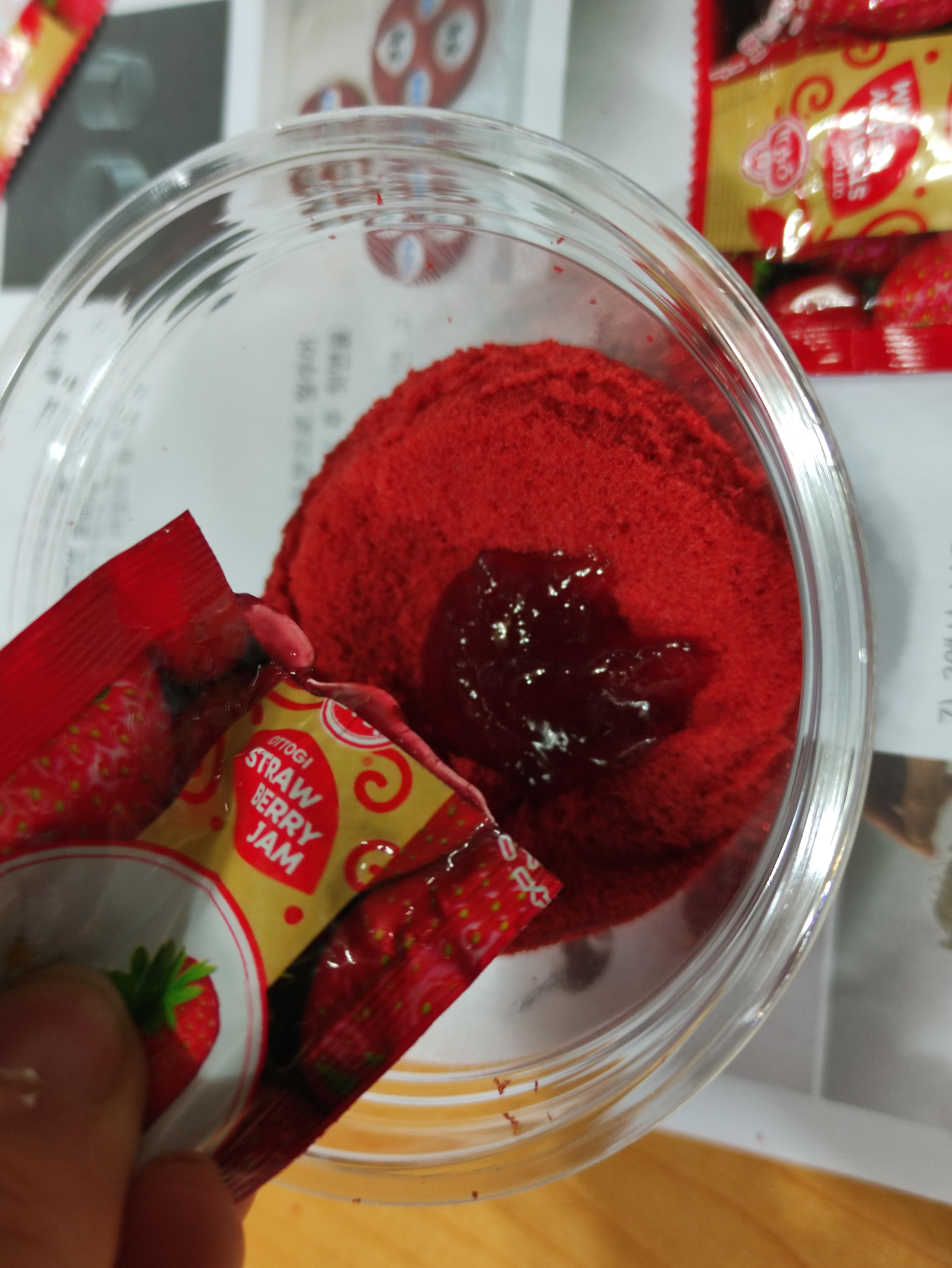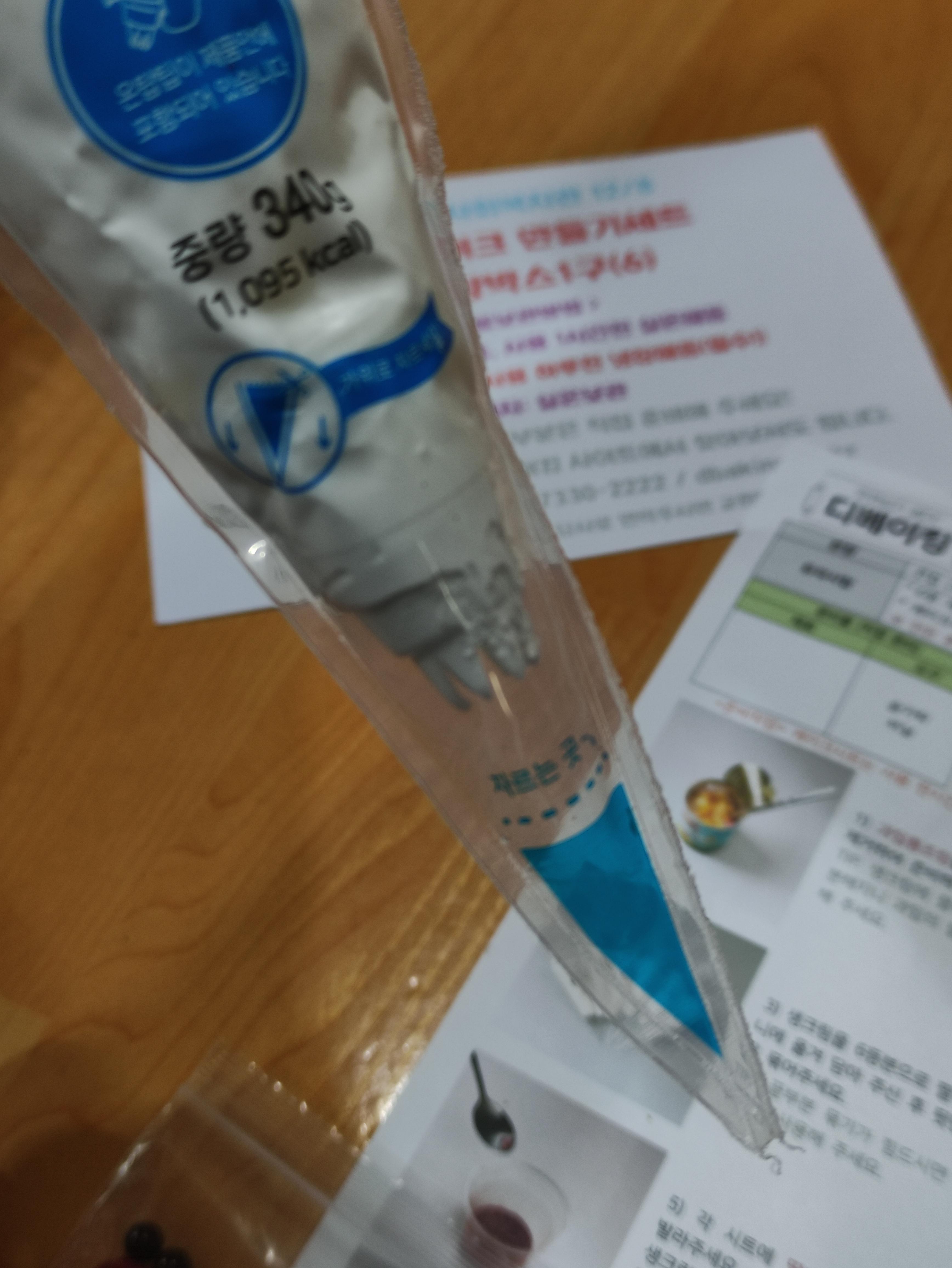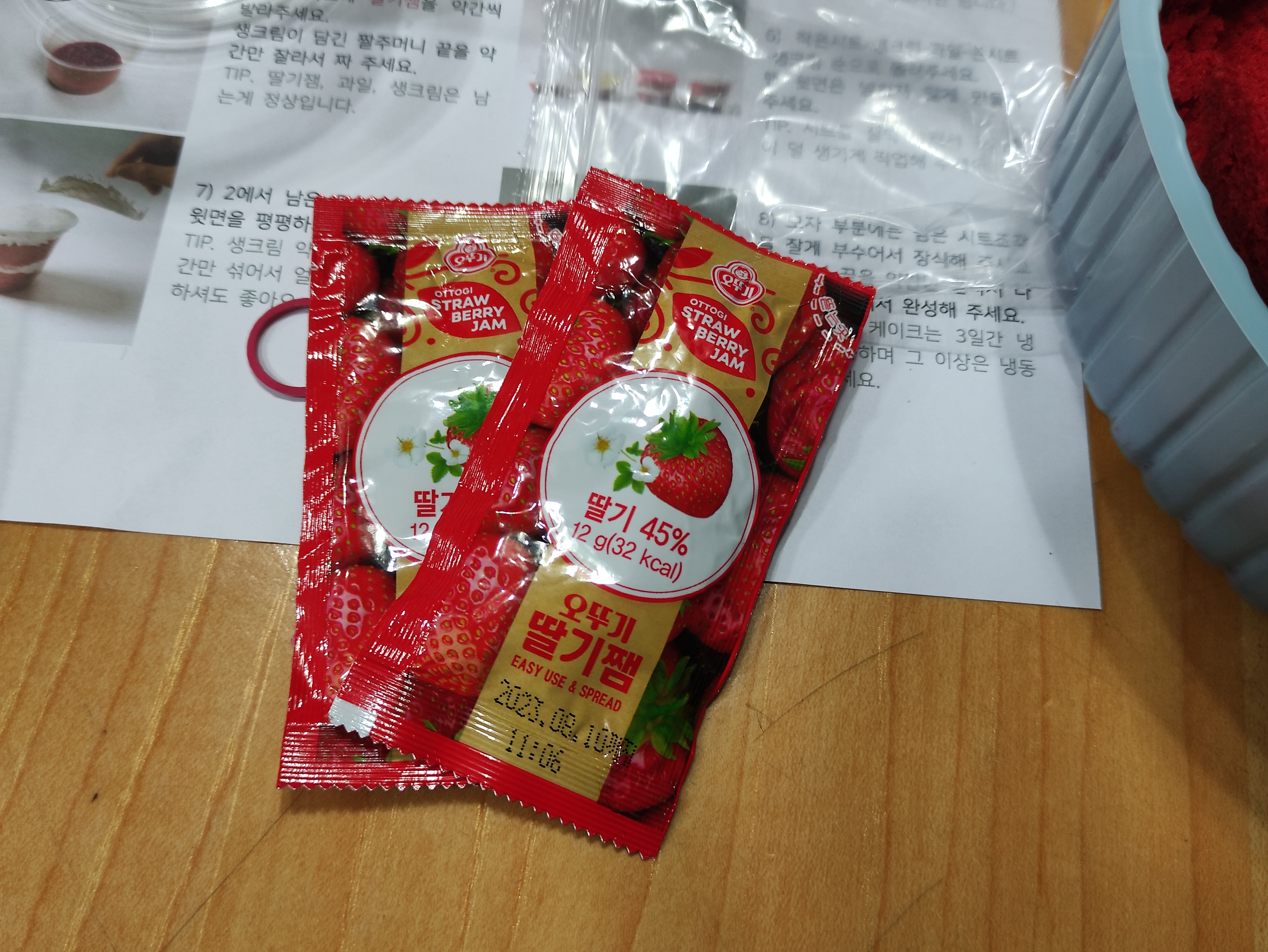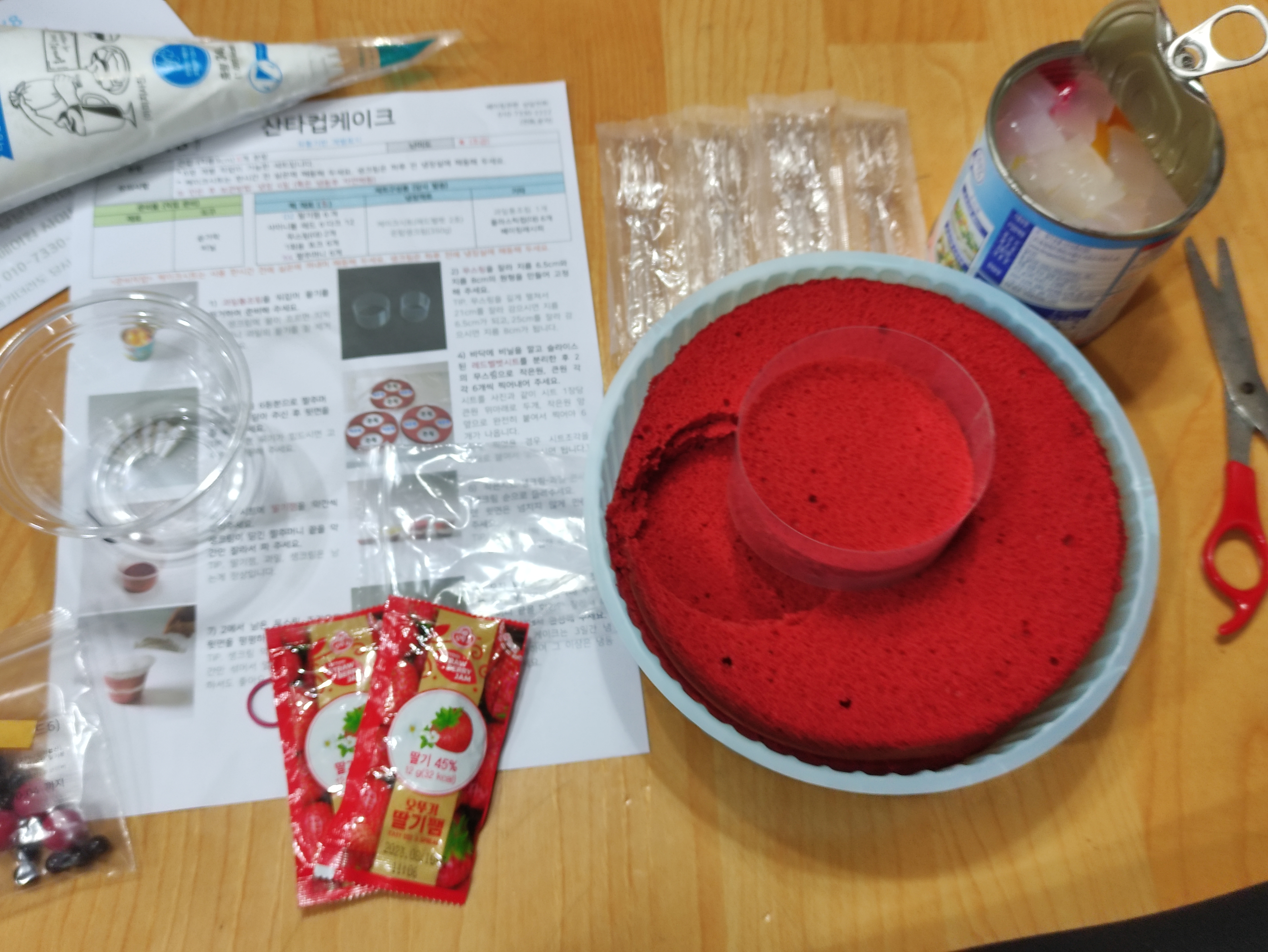 커팅할수있게 둥글게 플라스틱을 말아서 적정크기의 원형을 만들고 시트를 둥글게 컵에 들어갈수 있도록 자릅니다. 이후 딸기잼도 세팅해 둡니다.
