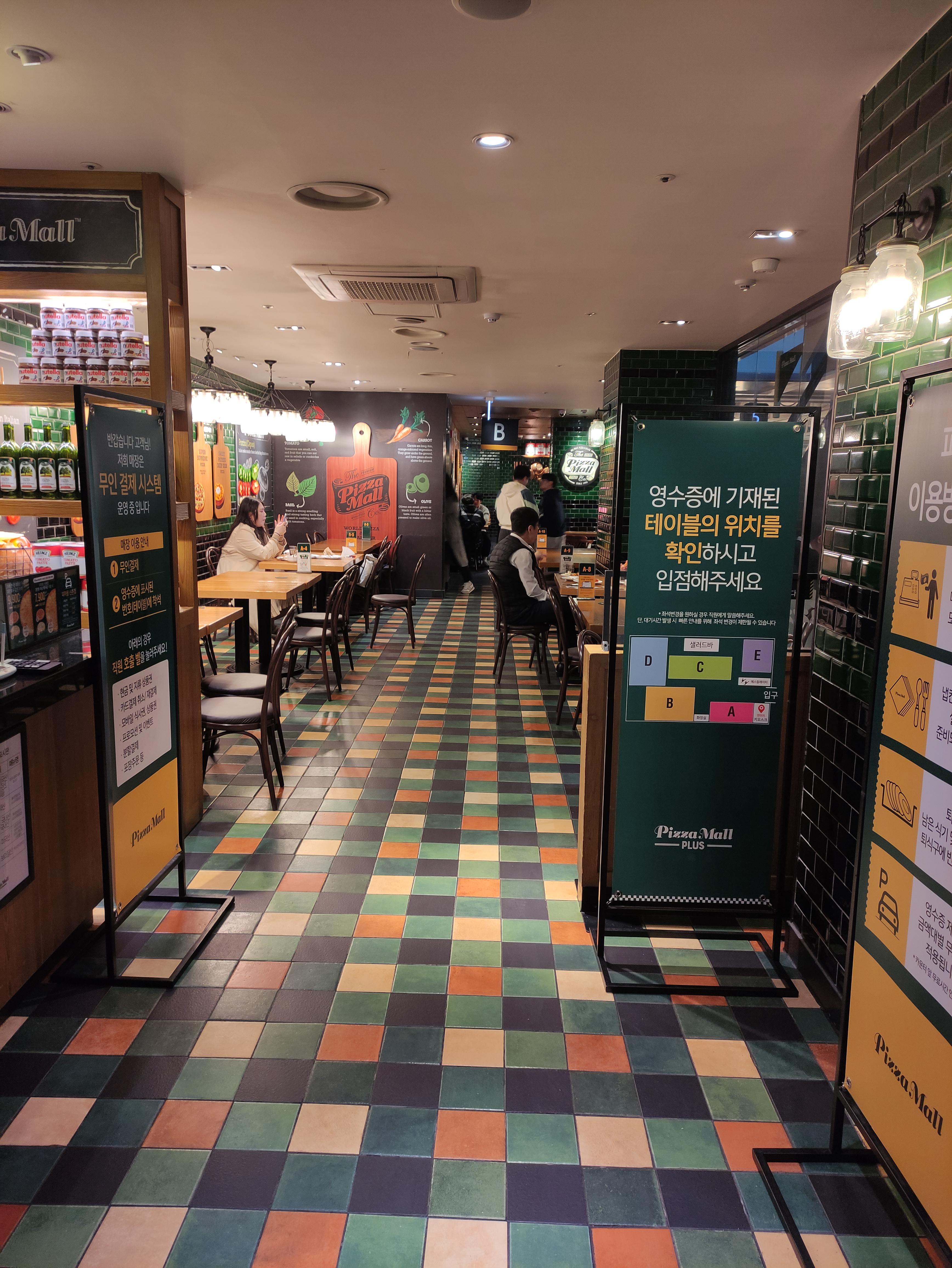 약간 입구쪽 자리로 배치되었습니다. 아마 랜덤으로 정해지는듯해요. 예전에는 저기서 직원분이 응대해주셨는데, 이제 무인으로 바뀌어가고 있습니다.