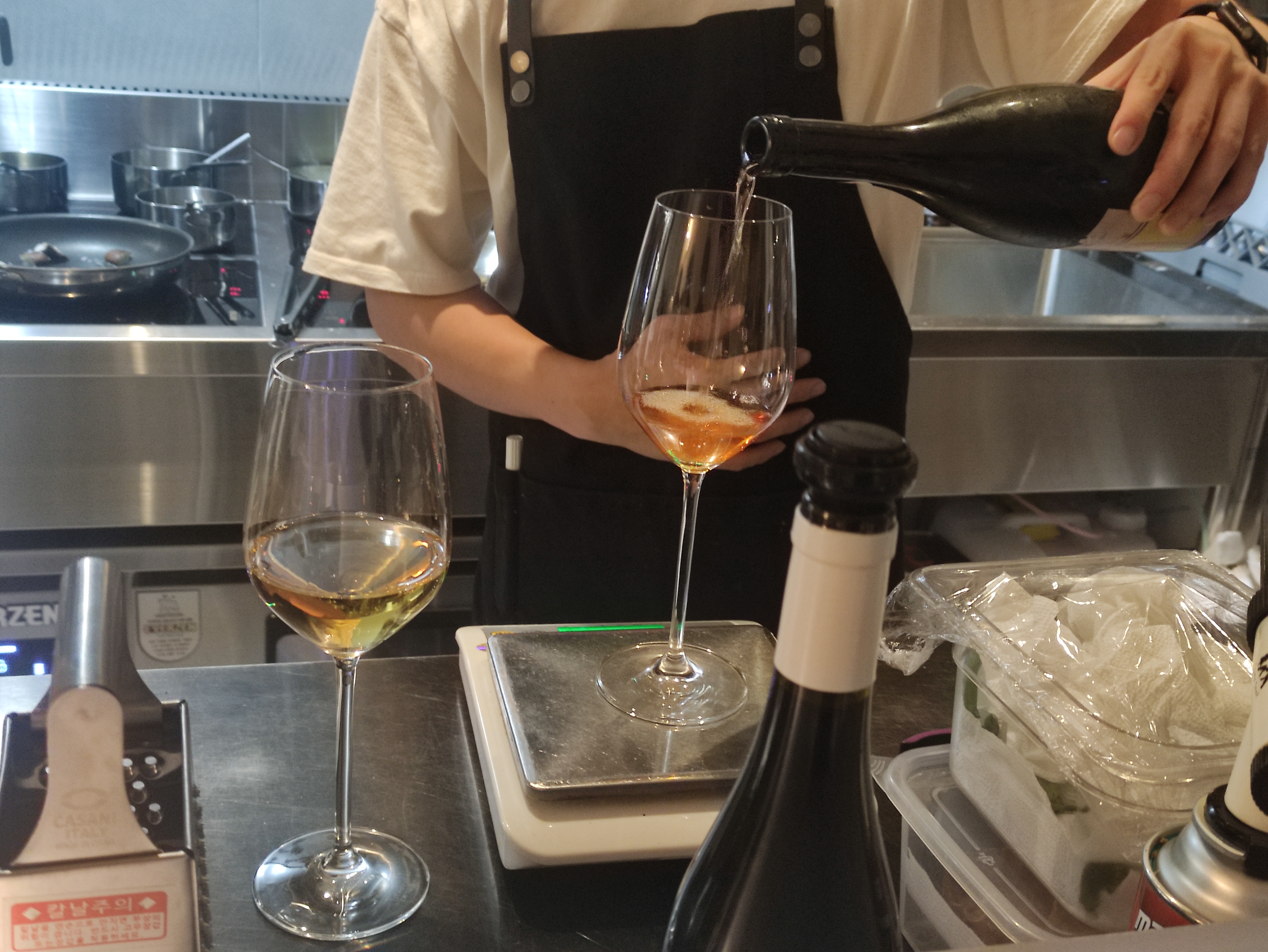 와인을 글라스에 따라 주시는 것을 눈앞에서 볼 수 있습니다.