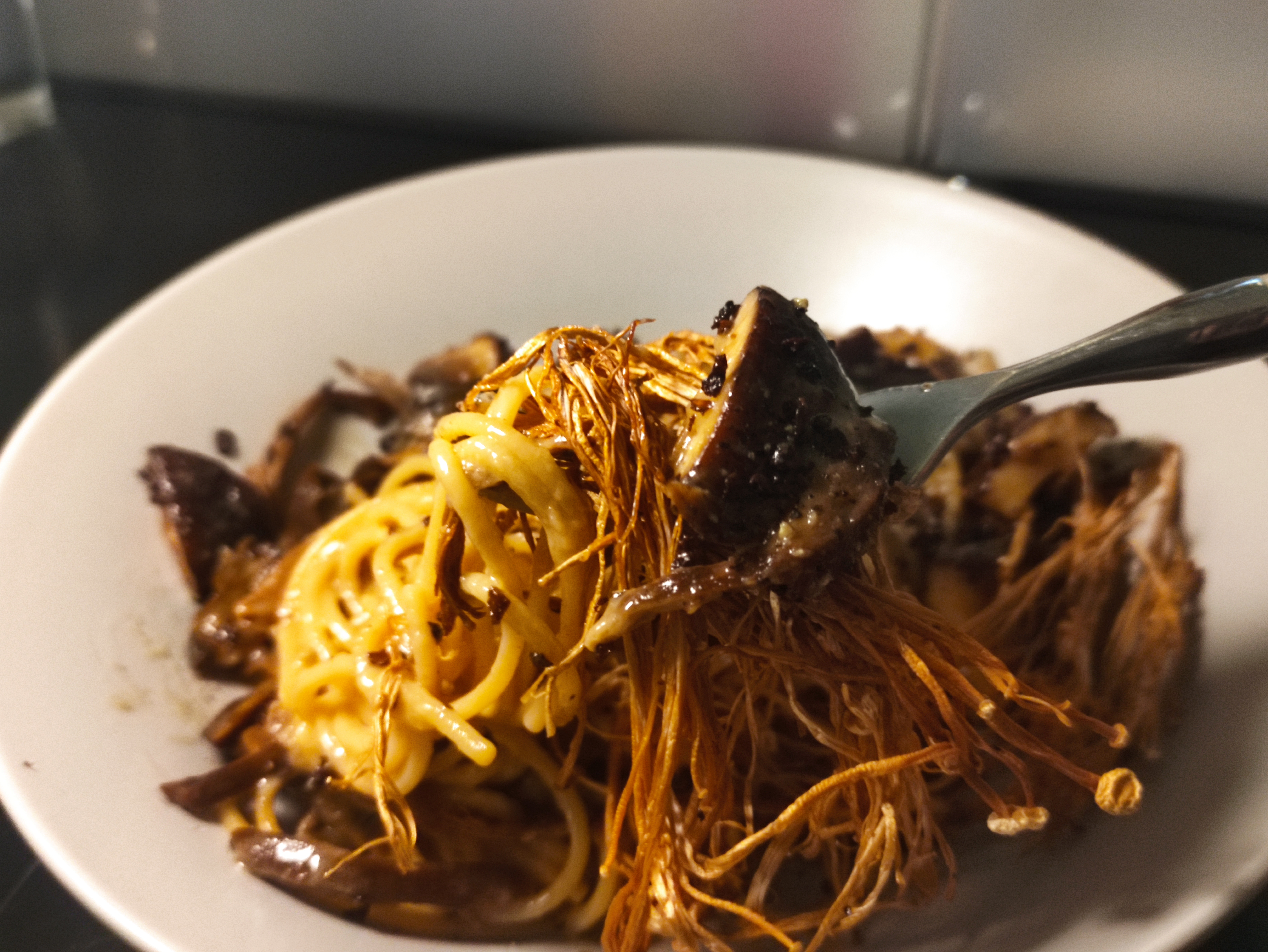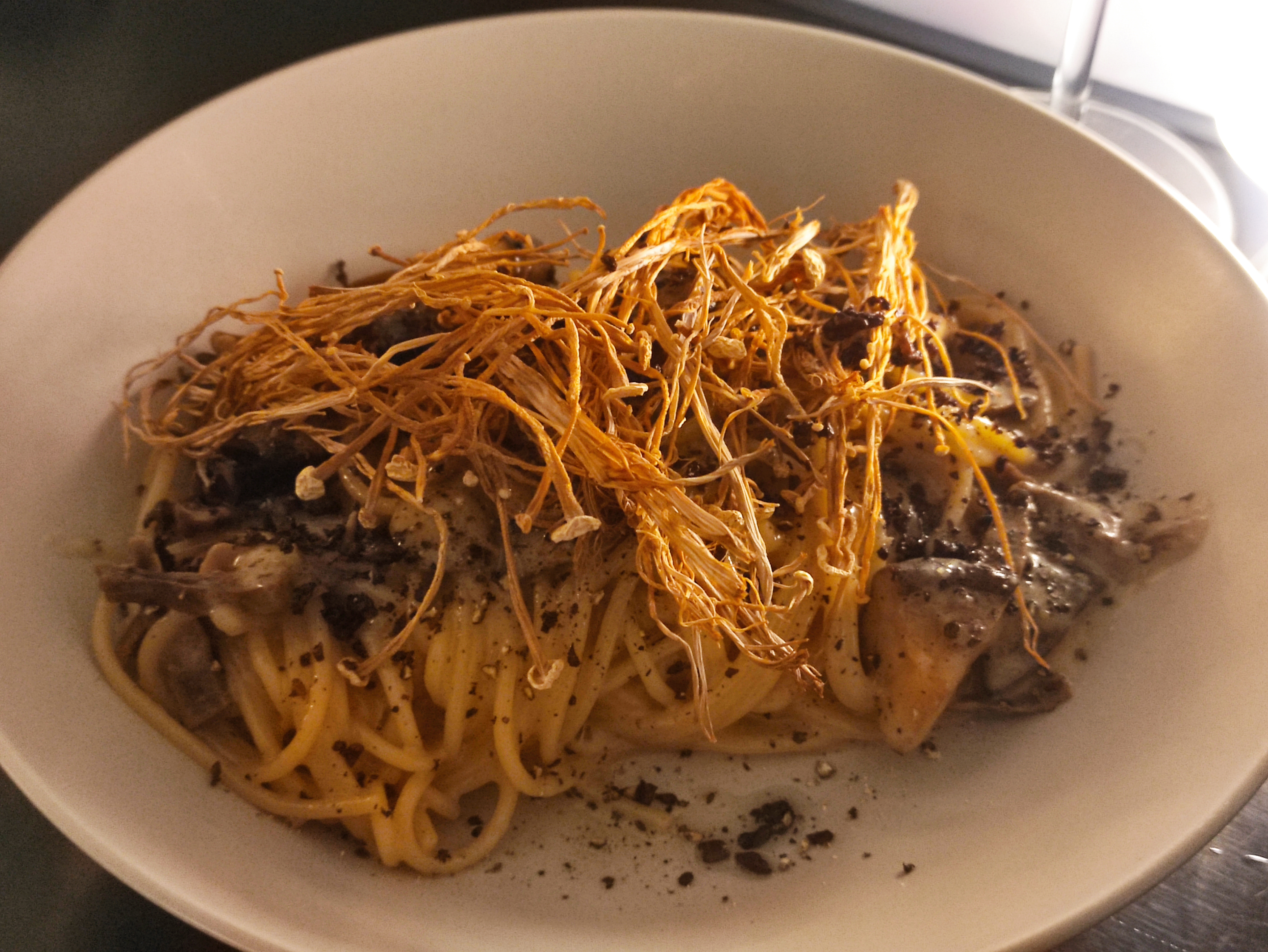 트러플버섯크림파스타인데 다양한 버섯이 종류별로 들어있고 크림맛도 진하고요. 한입 먹으니 입안에 진한 버섯향이 퍼지는 기분좋은 파스타 입니다. 면발도 딱 좋게 잘 익었습니다. 버섯 좋아하시는 분이라면 이 요리로 꼭 주문하시면 좋을것 같아요.