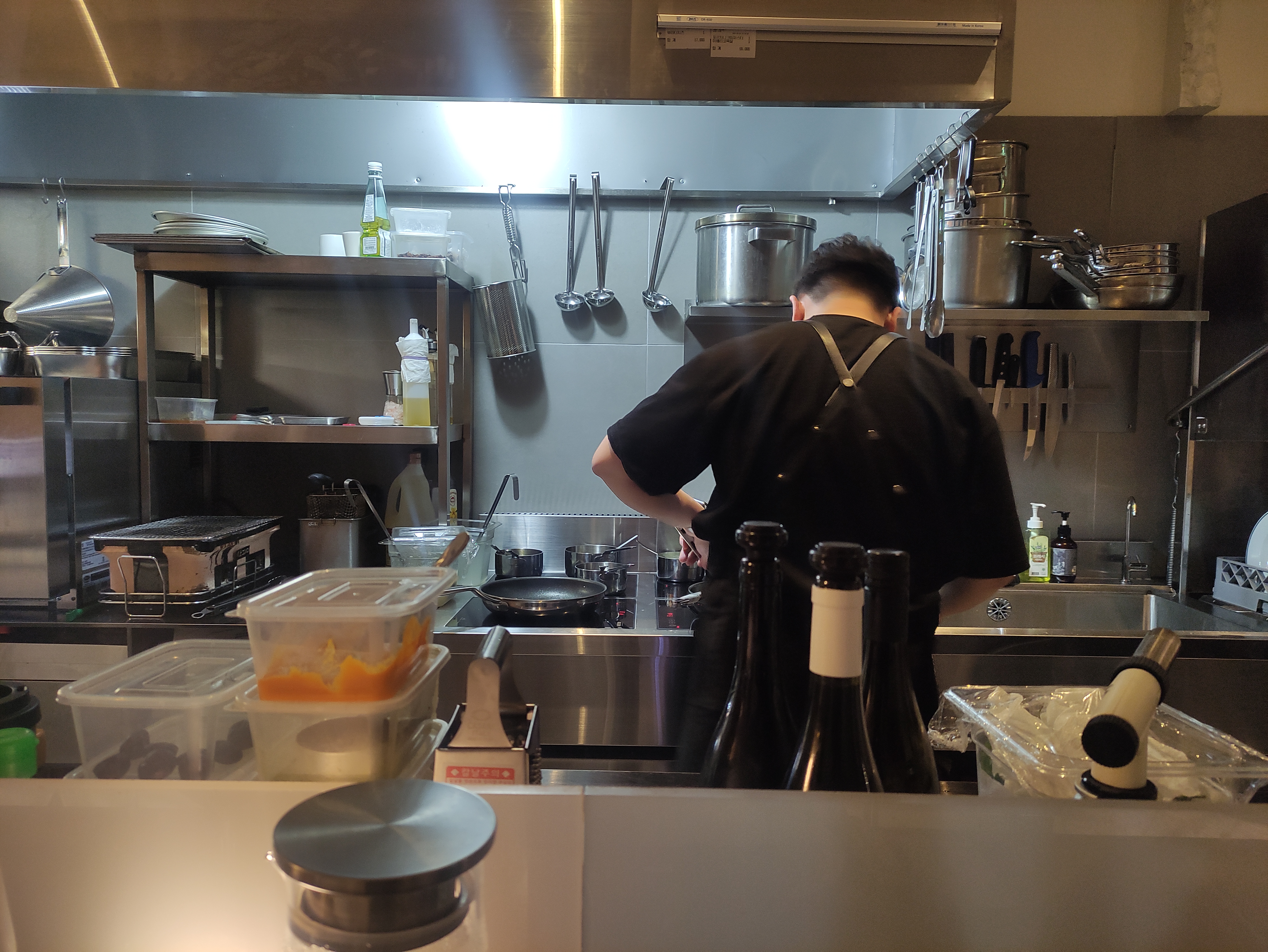 단정에 들어왔습니다. 오픈주방, 100% open kitchen이라서 조리하는 모습을 처음부터 끝까지 볼 수 있는점이 큰 메리트인 듯합니다.