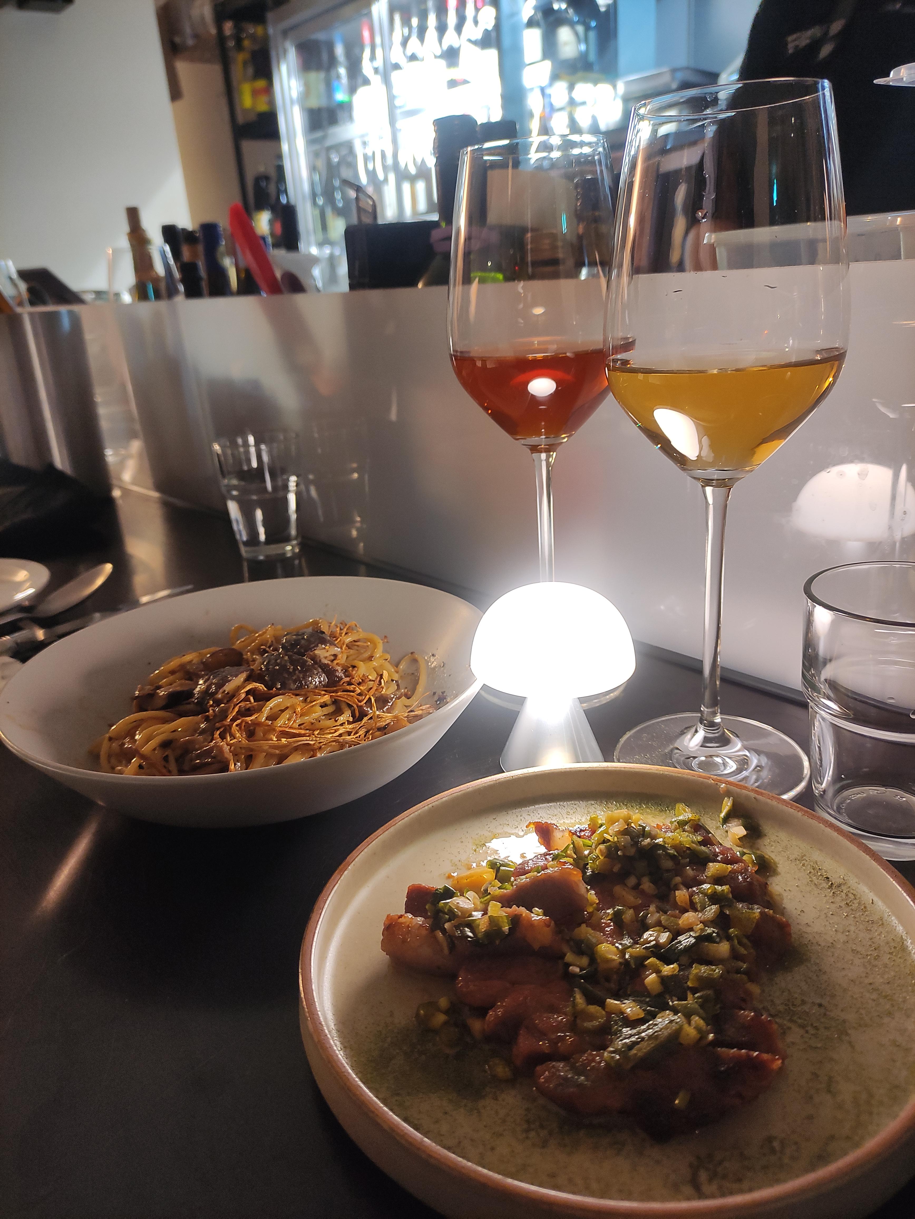 주문한 음식이 나왔습니다. 트러플버섯크림파스타와 하나는 수비드 돼지고기 요리 였던걸로 기억합니다.