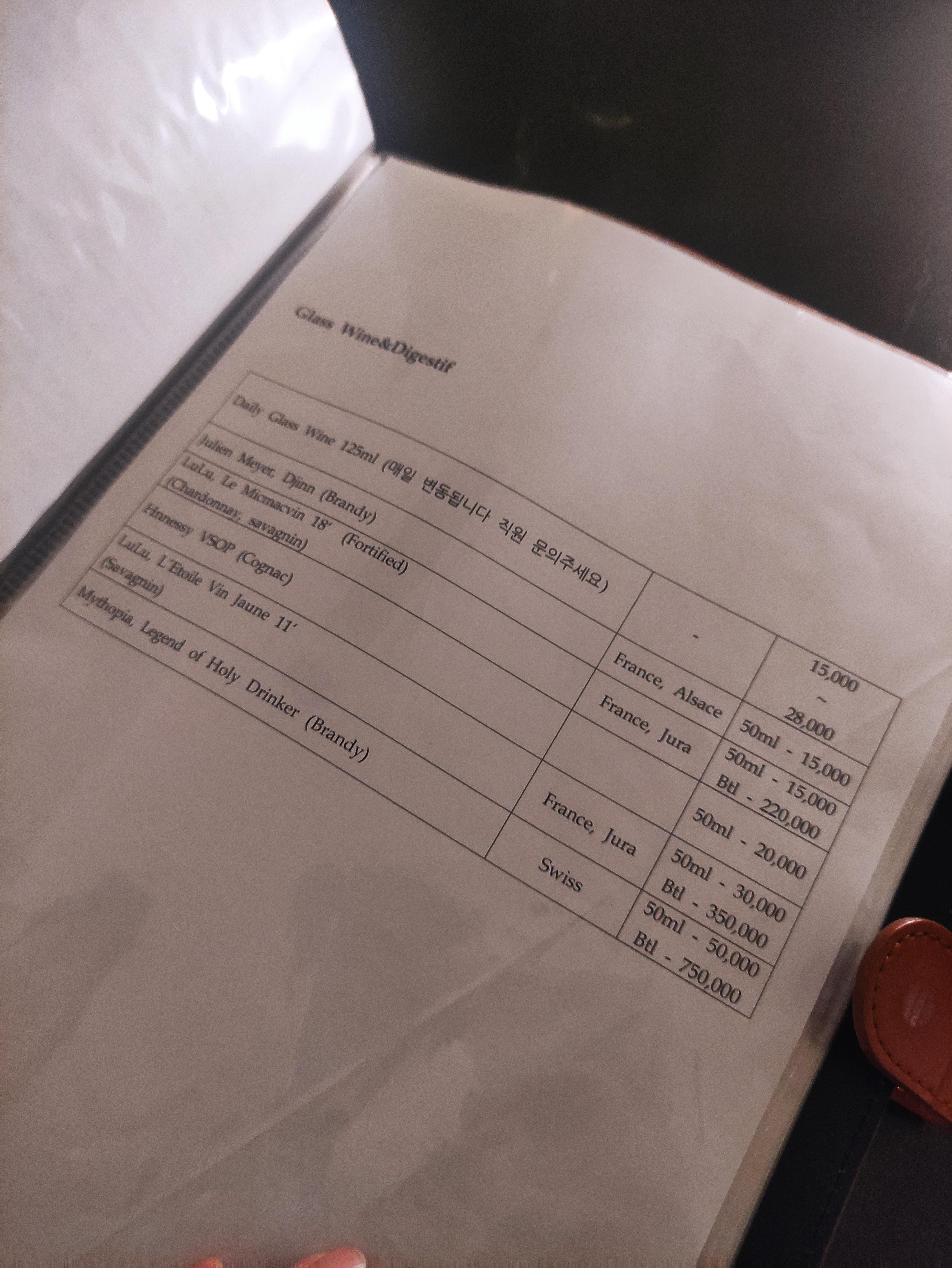 메뉴입니다. 첫페이지는 매장명이 적혀있고 두번째 페이지는 음식메뉴가, 그리고 세번째 페이지부터는 쭉 주류목록이 있습니다. 정말 다양한 주류를 즐길 수 있어요.