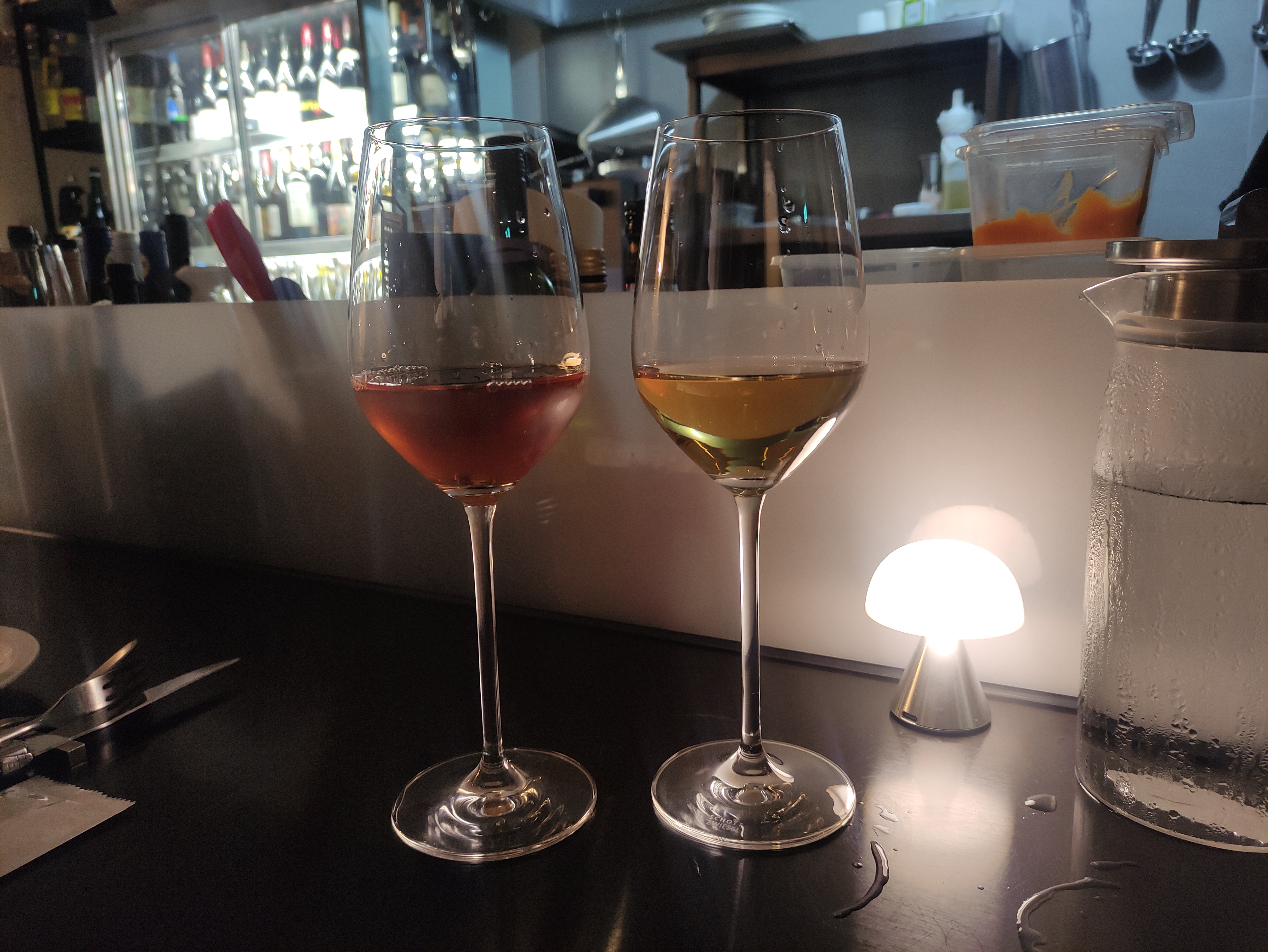 와인 색상이 참 예뻐요. 왼쪽이 레드와인, 오른쪽이 화이트와인입니다.