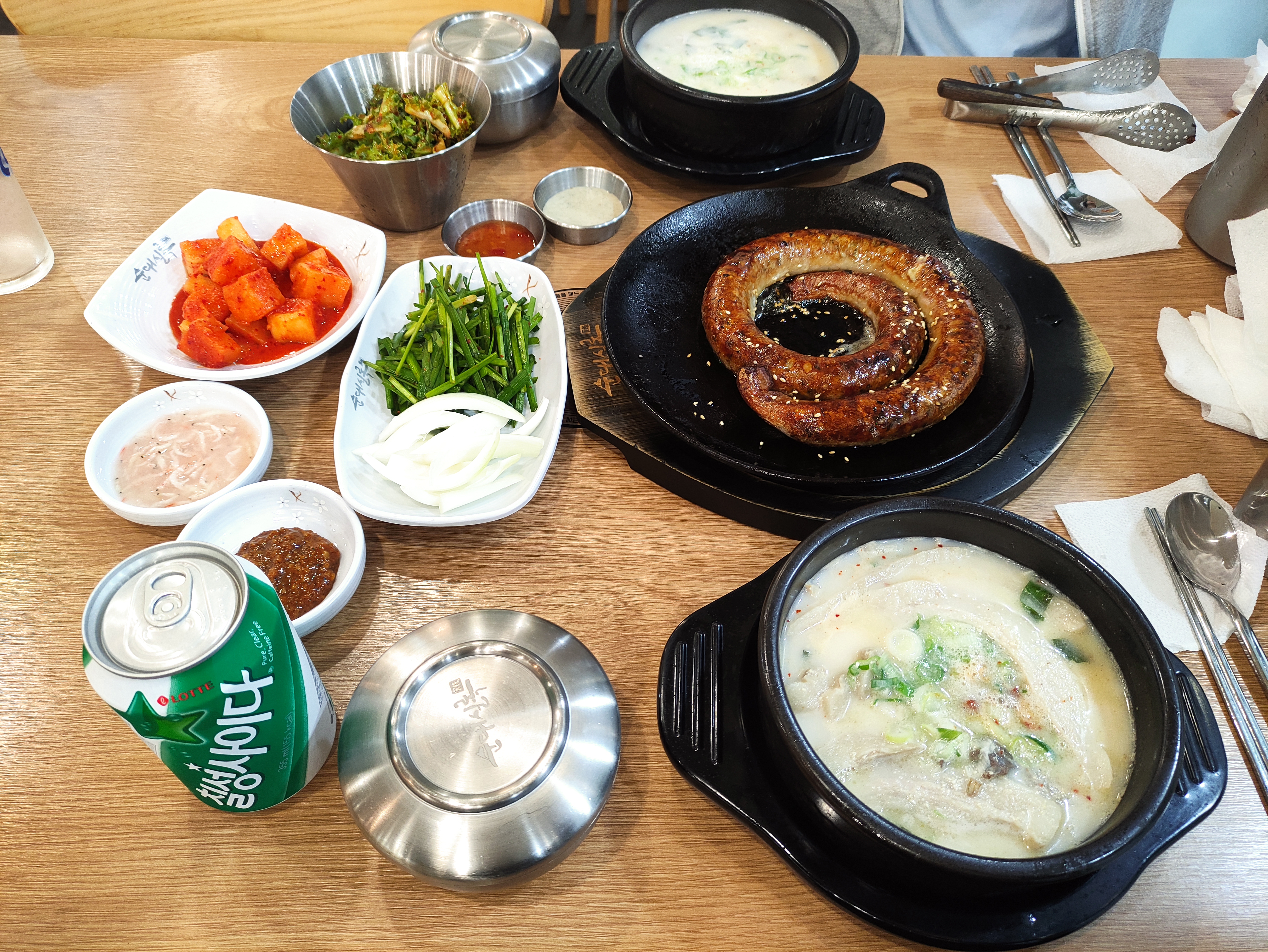 저는 순대스테이크와 항정순대국, 그리고 살코기 순대국을 주문했습니다. 그리고 음료수로 사이다를 주문했습니다.