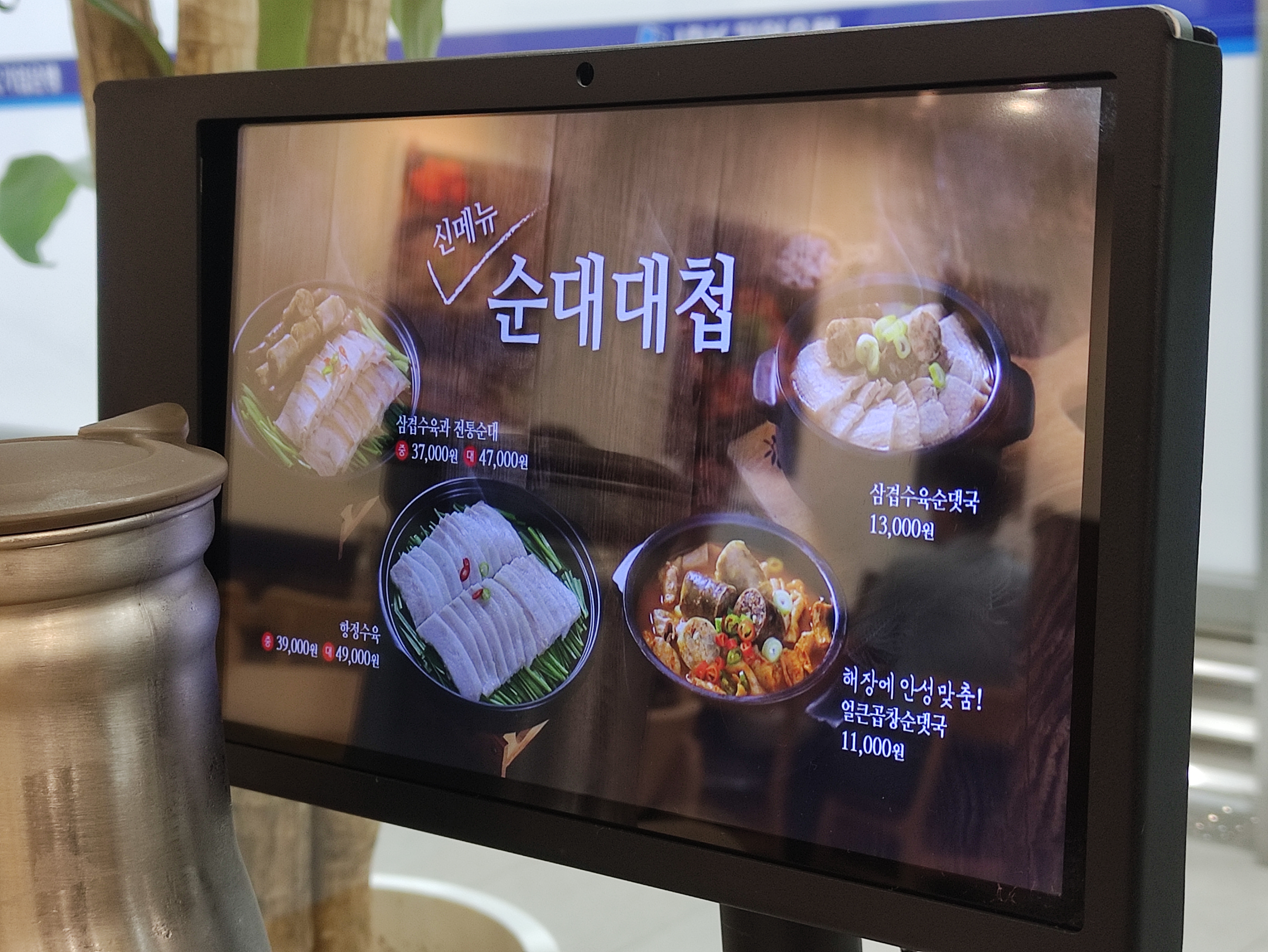 신메뉴 순대대첩입니다. 다양한 순대메뉴들이 있고 또 신메뉴를 연구하고 꾸준히 출시하는 모습이 인상적입니다. 이번 시즌 메뉴 순대대첩 신메뉴는 삼겹수육과 전통순대, 항정수육, 삼겹수육순대국, 그리고 해장에 안성맞춤 얼큰곱창순댓국이 있습니다.