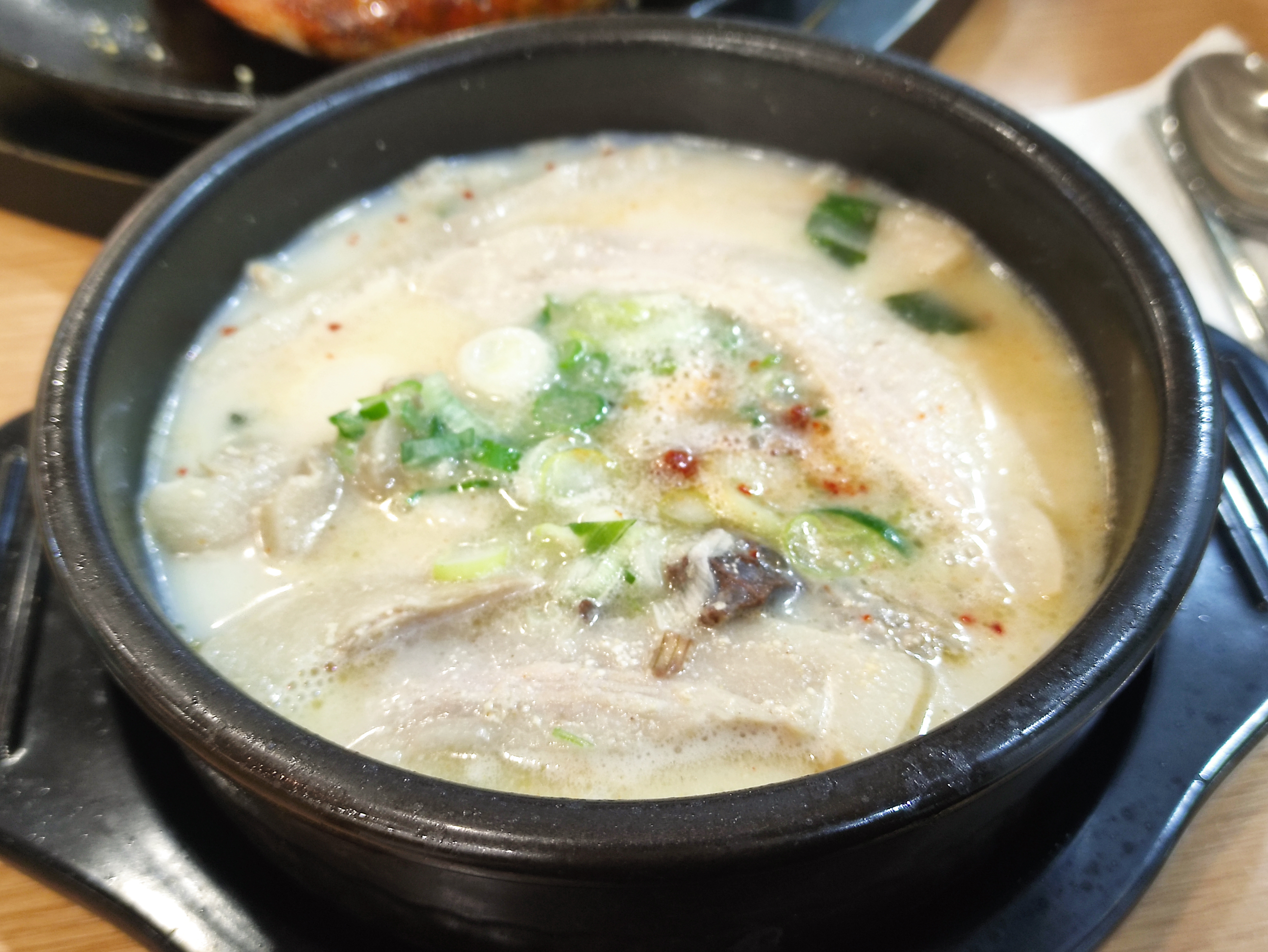 항정순대국은 위 사진에 보이듯 항정살이 순대국에 들어가있습니다. 항정살은 고기집에서 보통 구워먹는데, 이렇게 순대국에 넣어 먹으니 고기도 엄청 부드럽고 맛있었어요. 꽤 고급식자재인 항정살을 넣은 고급 순대국, 가격은 제법 있지만 그 가격만큼의 가치를 하는 맛입니다. 국물에는 약간의 다대기가 들어있고요. 섞여있지는 않아서 입맛에 따라 빼서 먹을 수도 있게 되어 있어요.