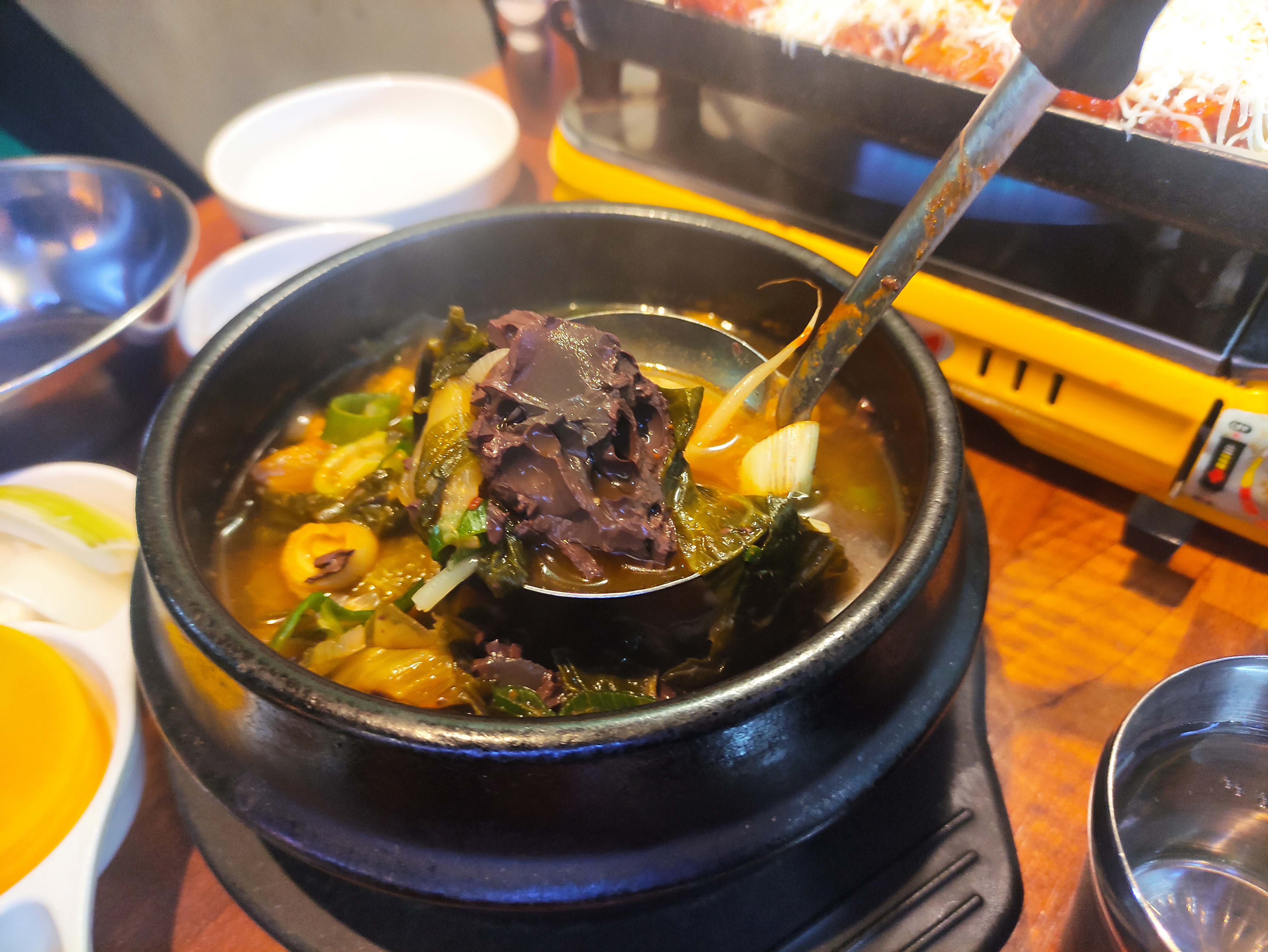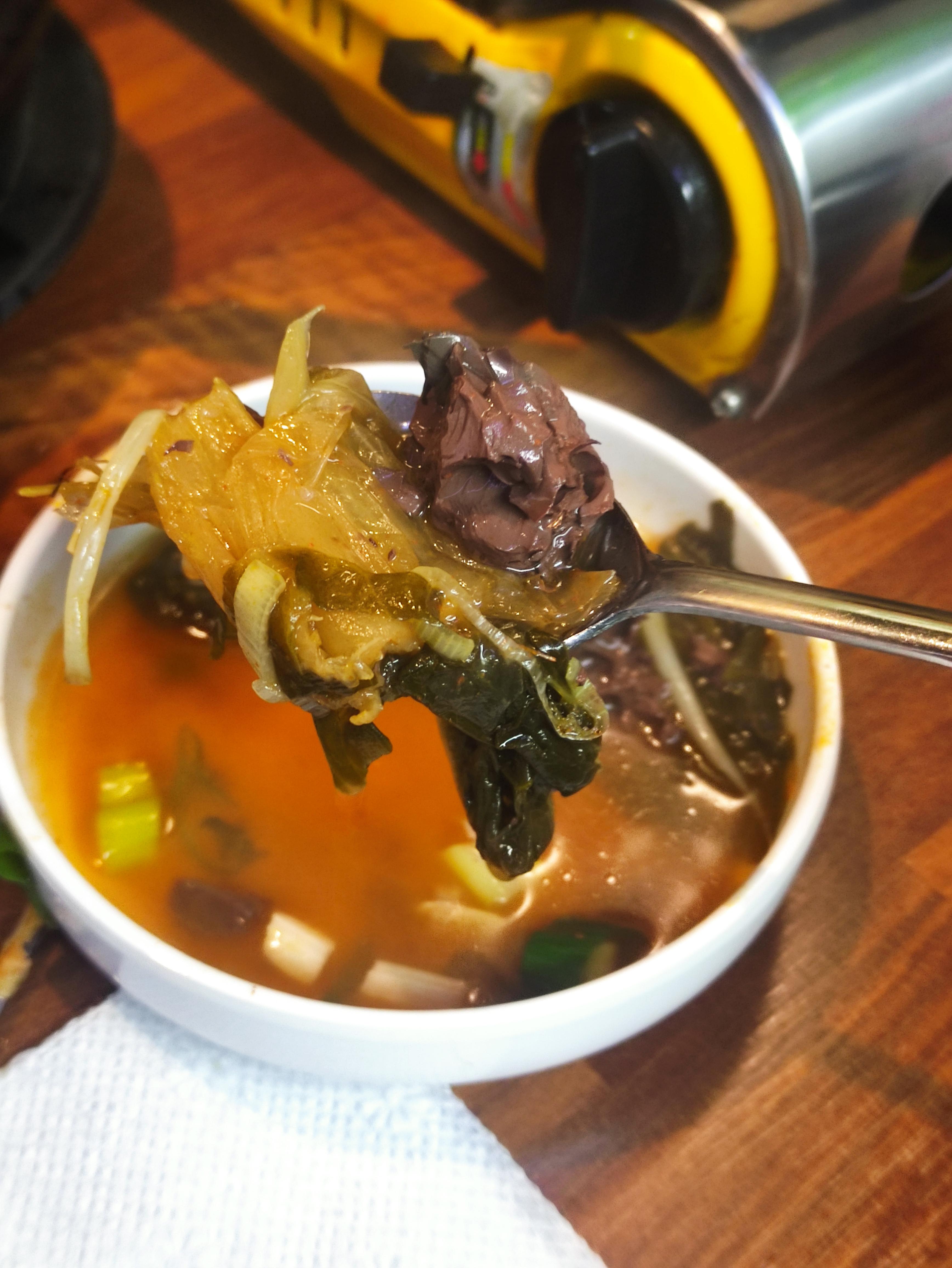 선지해장국입니다. 솔까말 공기밥하나주면 당장 저녁한끼가 해결되는 첫인상입니다. 제가 선지해장국 좋아하는데 참 이 메뉴를 곱창을 주문하면 서비스로 준다니 대박입니다.