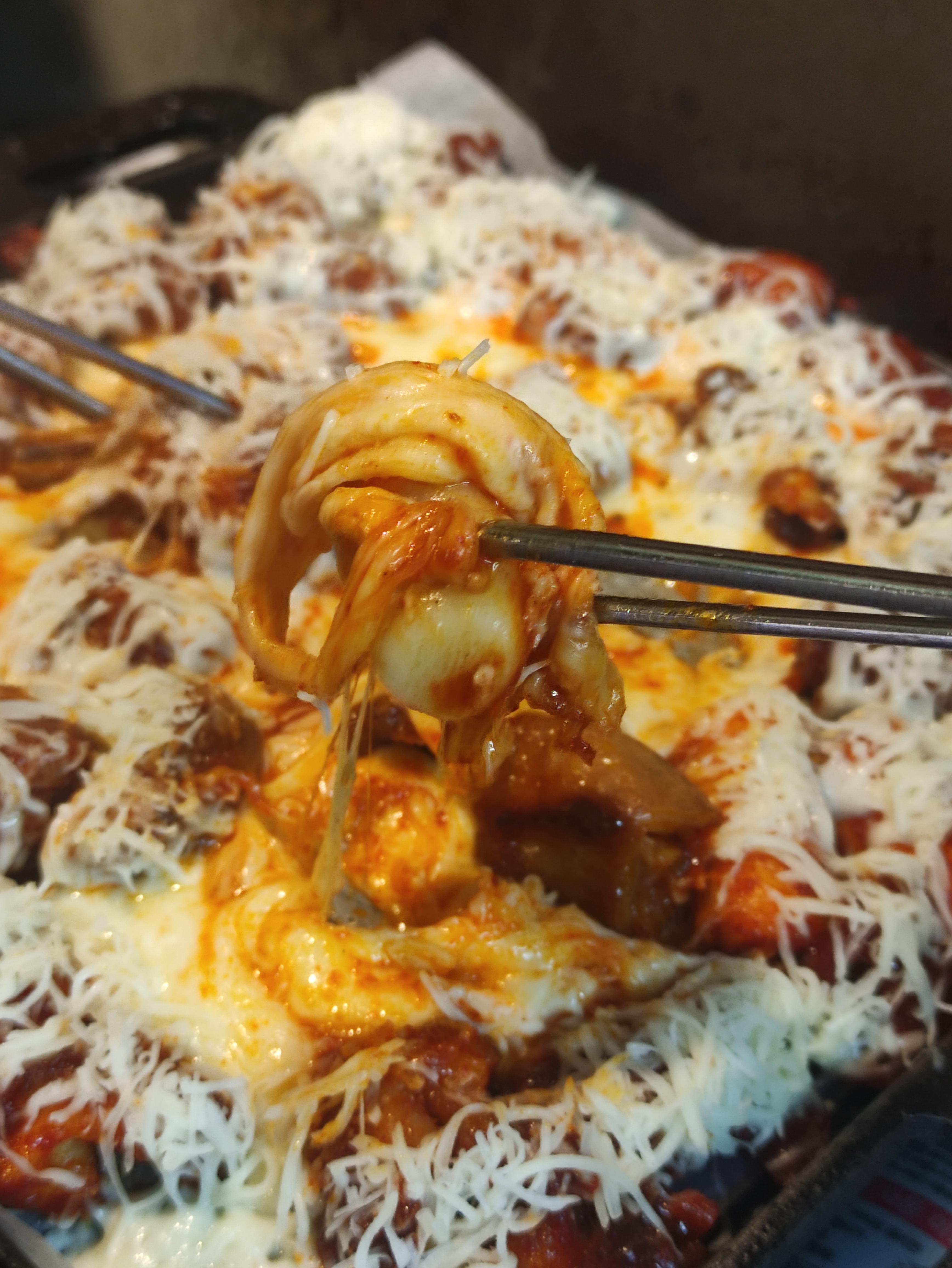 쭈압쭈압 늘어나는 치즈를 볼 수 있습니다.