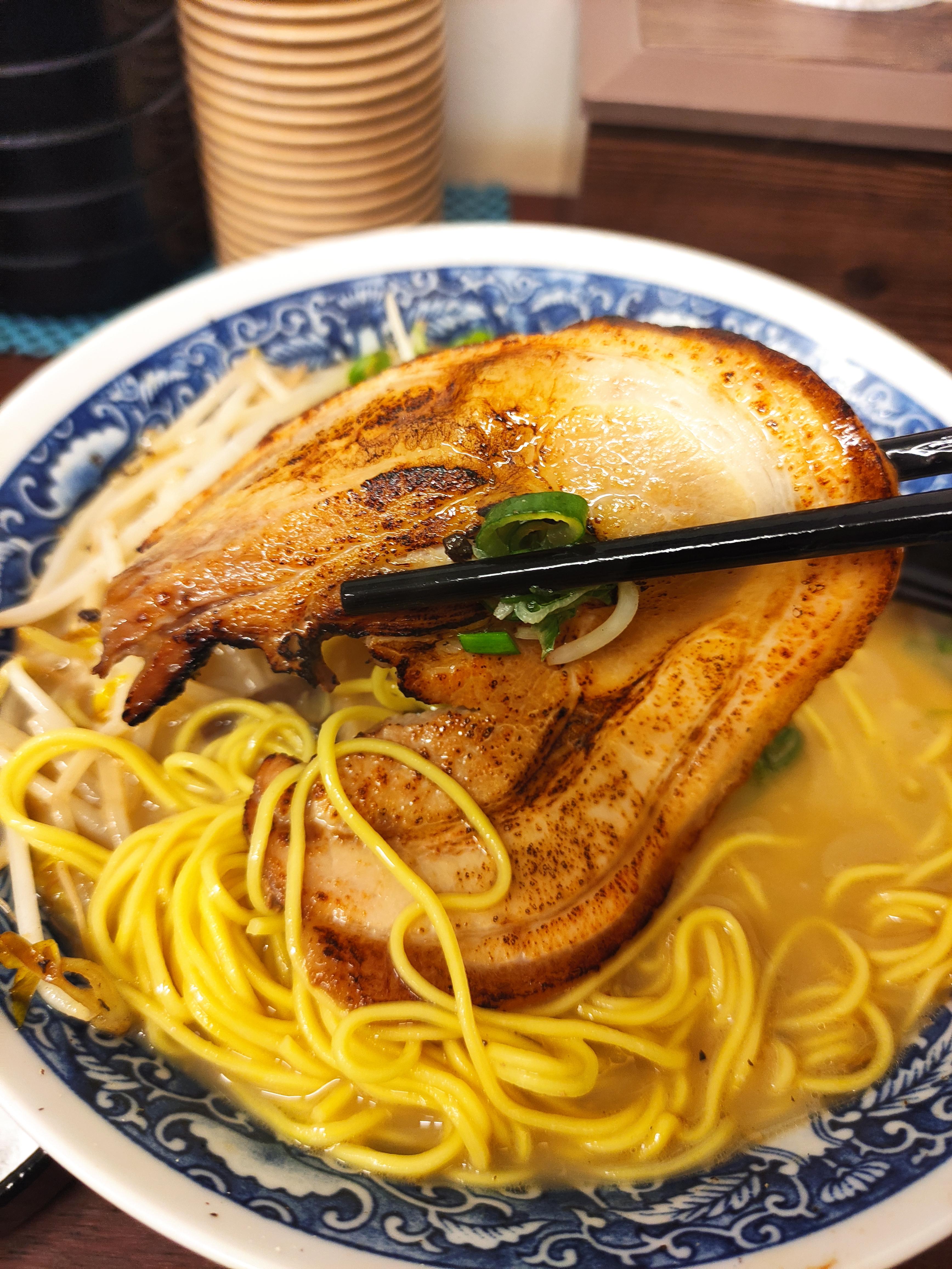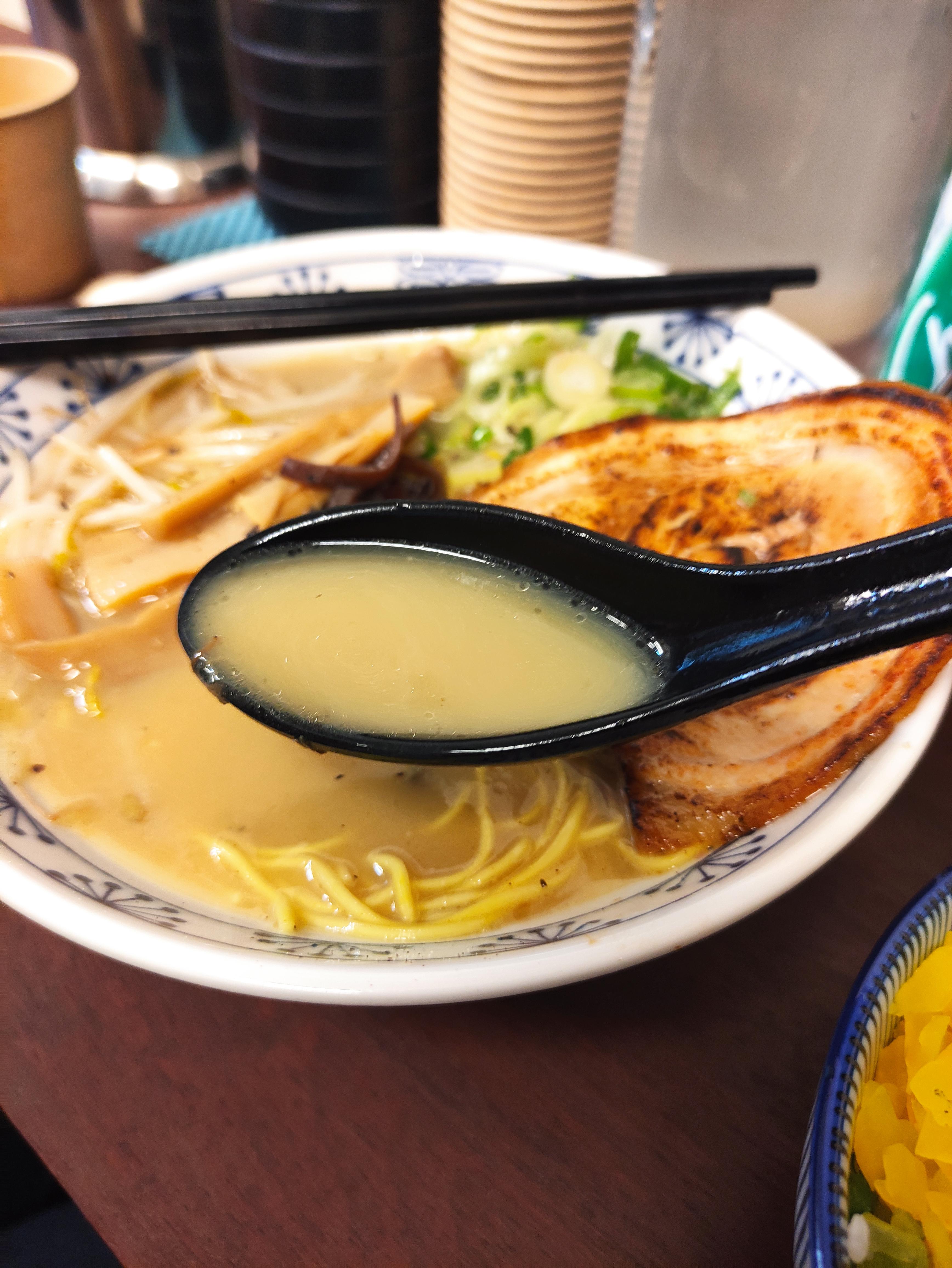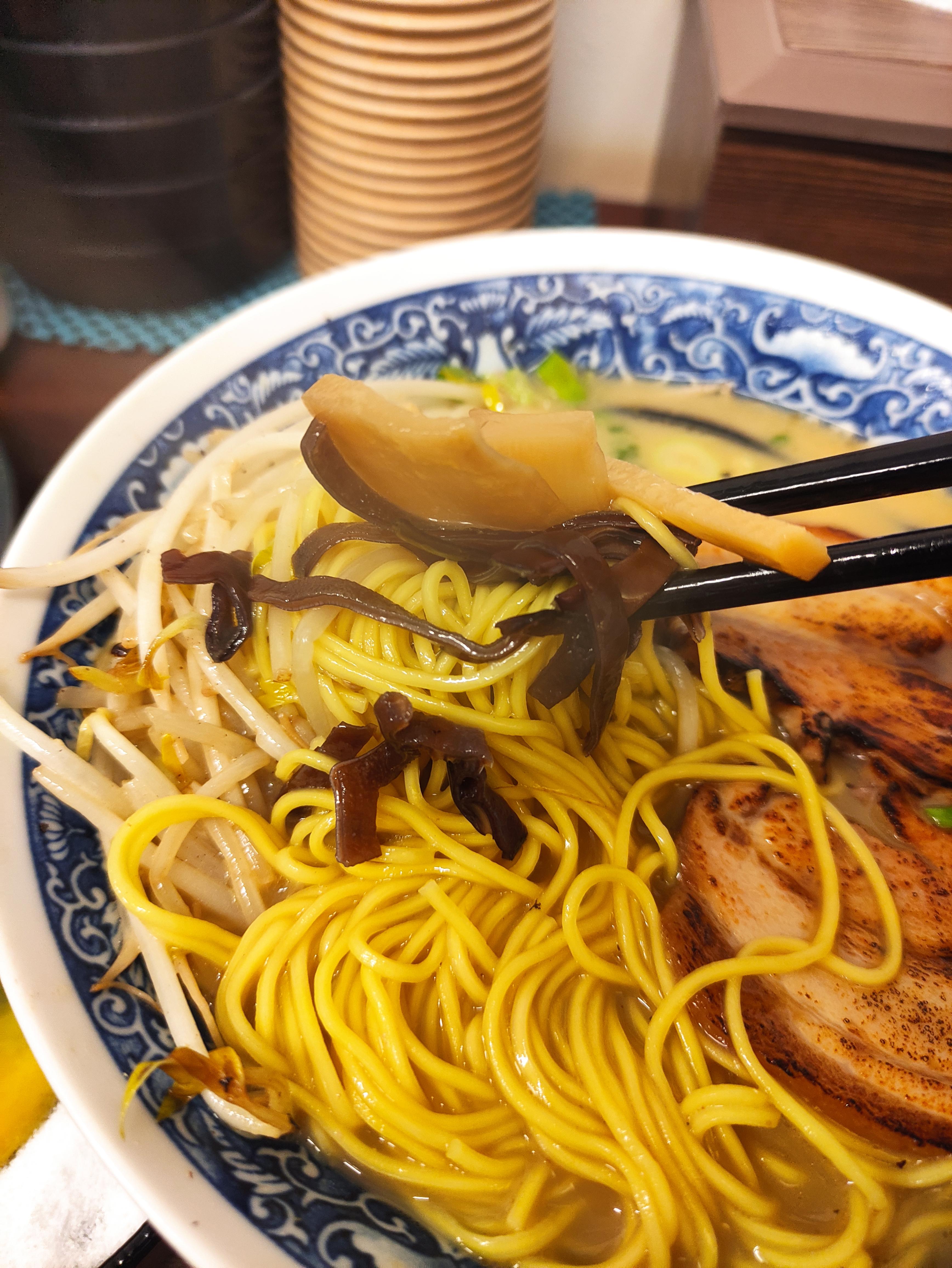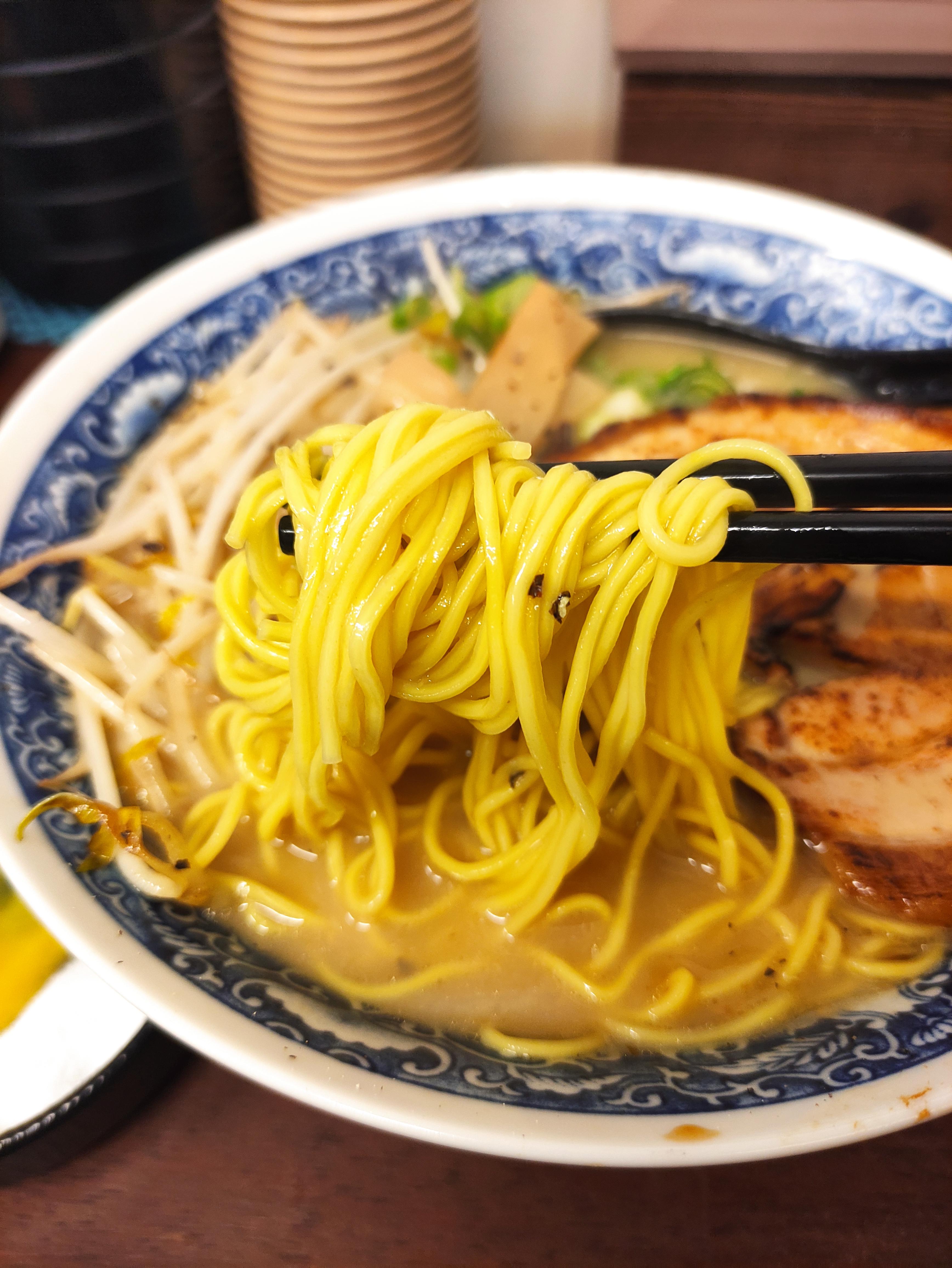돈코츠라멘의 면발입니다. 소유 돈코츠라멘과 돈코츠라멘은 재료가 거의 같고 국물에만 차이가 있습니다. 소유 돈코츠라멘이 간장(소유)가 들어가서 일반돈코츠라멘보다는 살짝 더 간이 세다고 느꼈습니다.