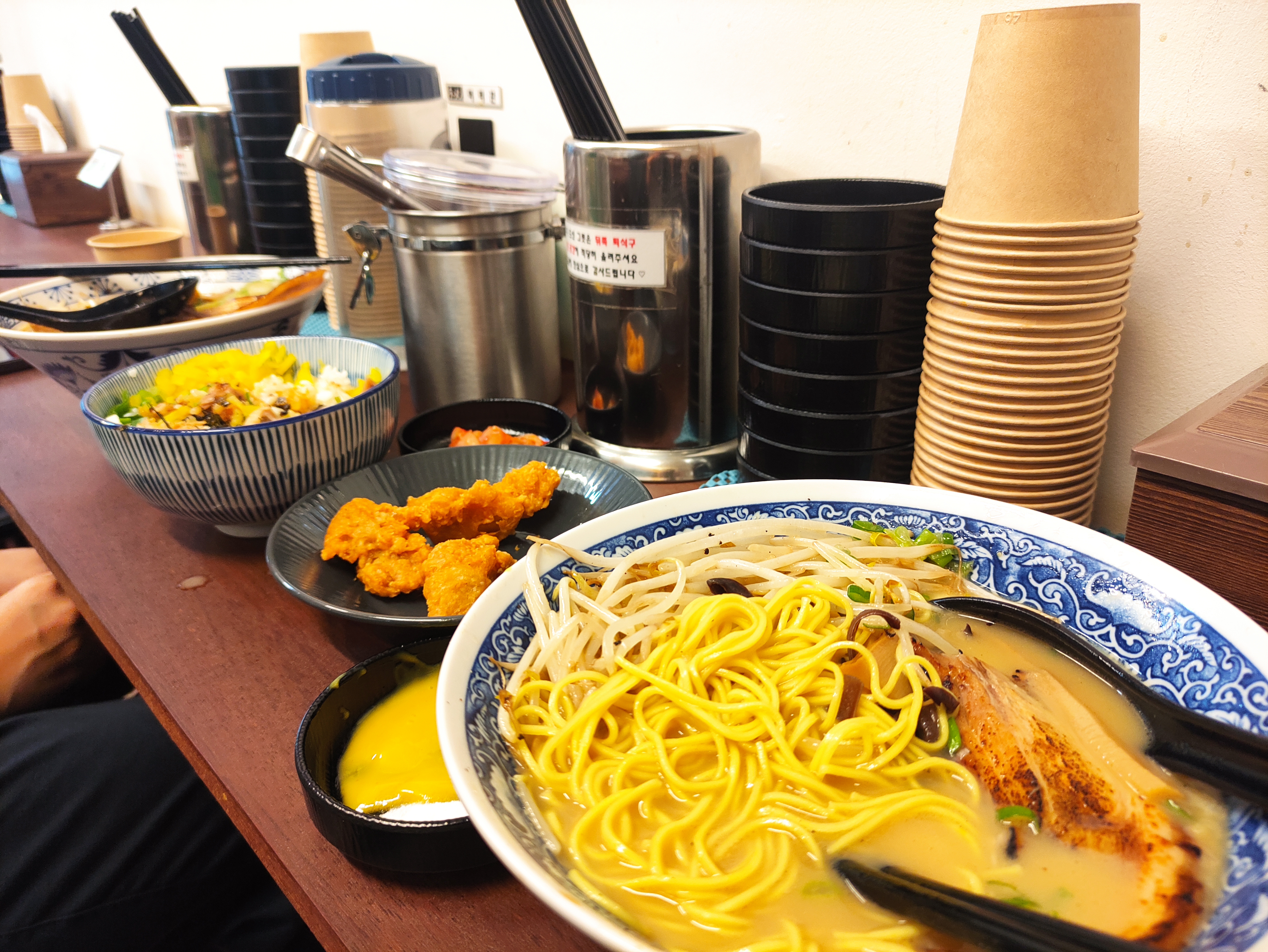 세트메뉴를 주문하니 은근 배부릅니다. 치킨가라야게, 라멘, 차슈동 등 맛있게 먹었습니다. 특히 돈코츠라멘은 일본현지맛과 별차이 못느낄정도로 잘 만들었고요. 치킨가라야게도 바삭해서 좋았습니다. 미니챠슈동은 차슈가 잘게 잘라져 있어서 먹기편했습니다. 다음번에는 차슈동 단품메뉴도 먹어보고, 이 날 못먹은 새우튀김도 주문해서 먹어보아야 겠습니다.