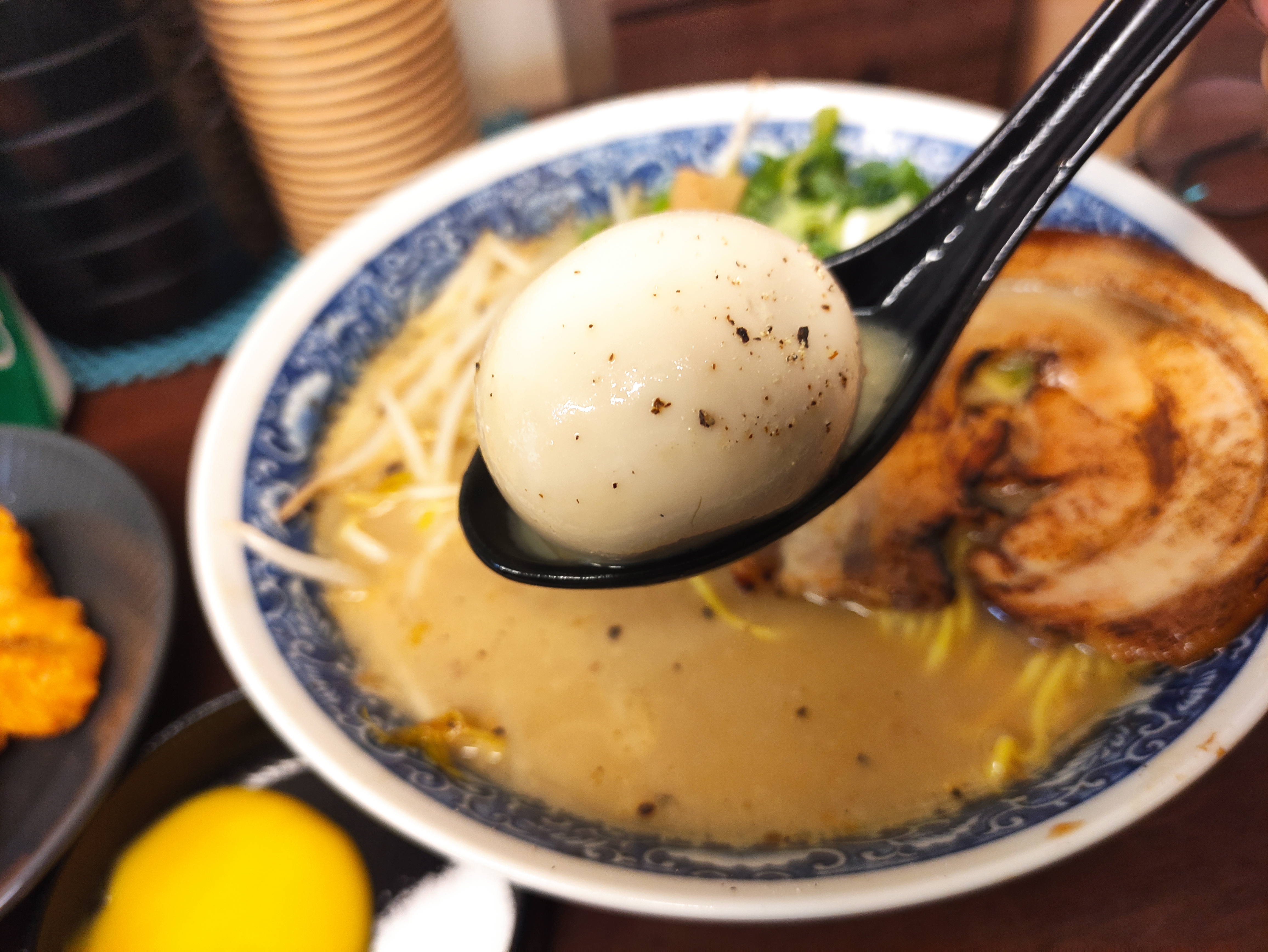 라멘에는 반숙계란이 들어있습니다.