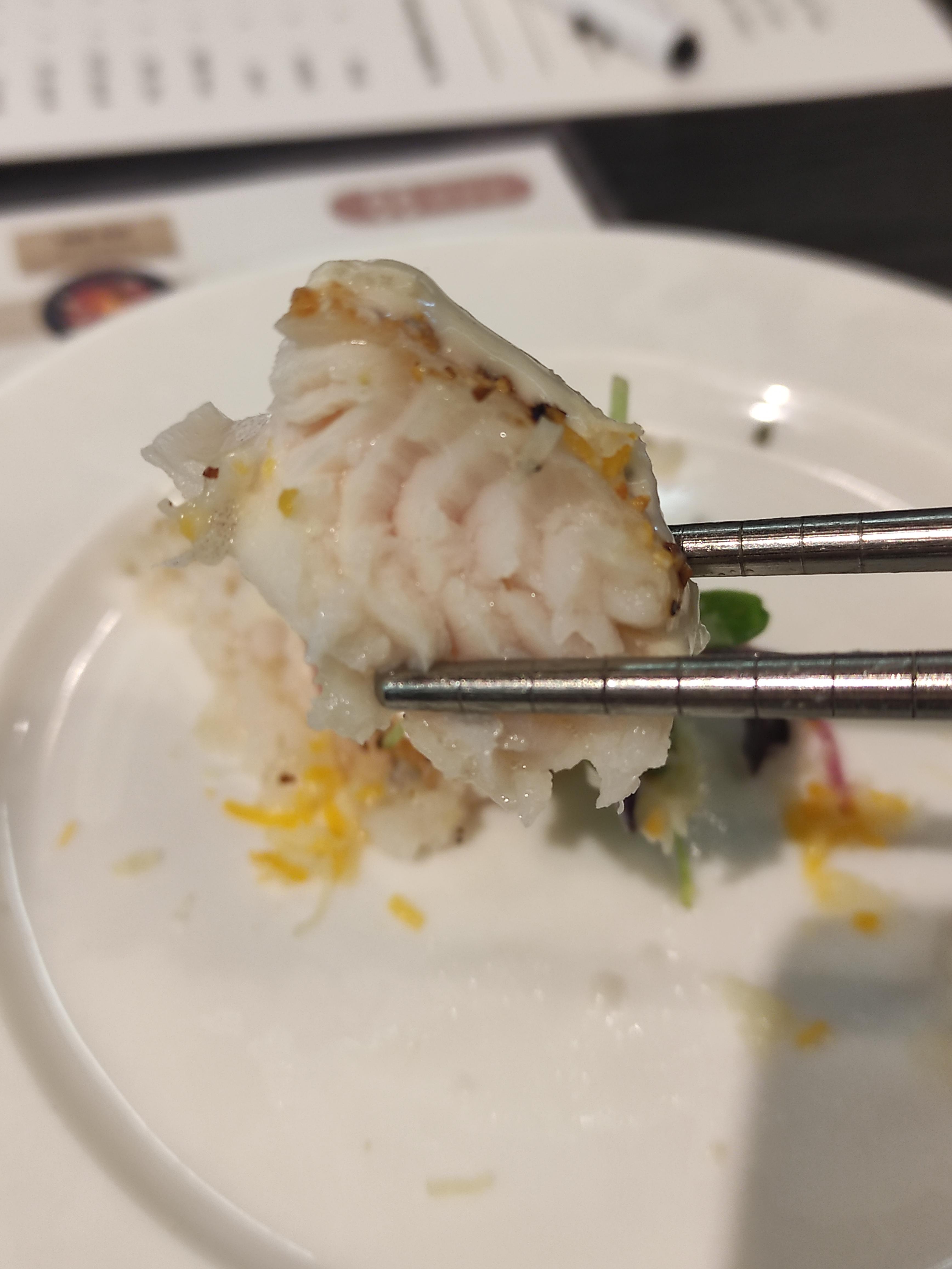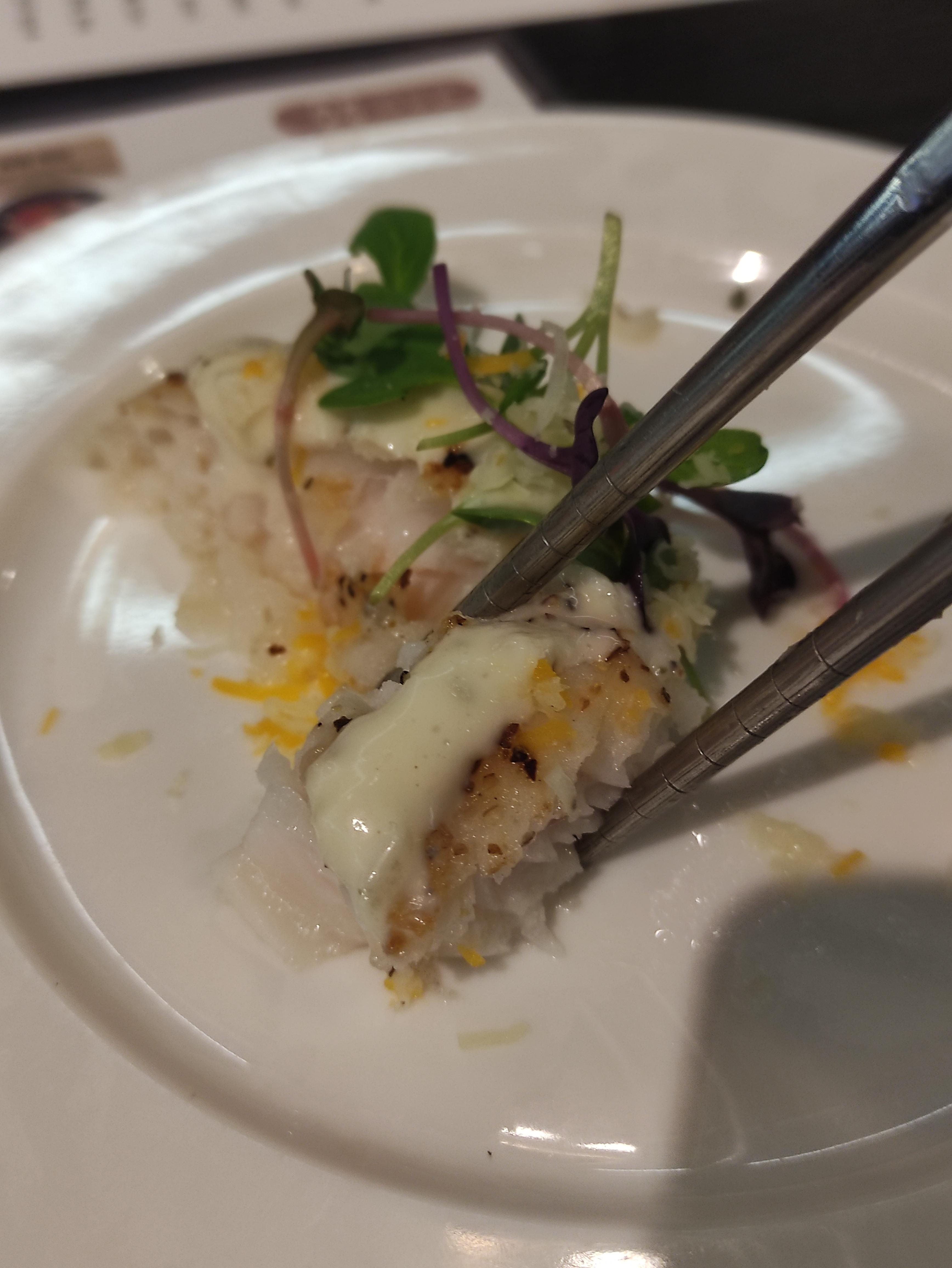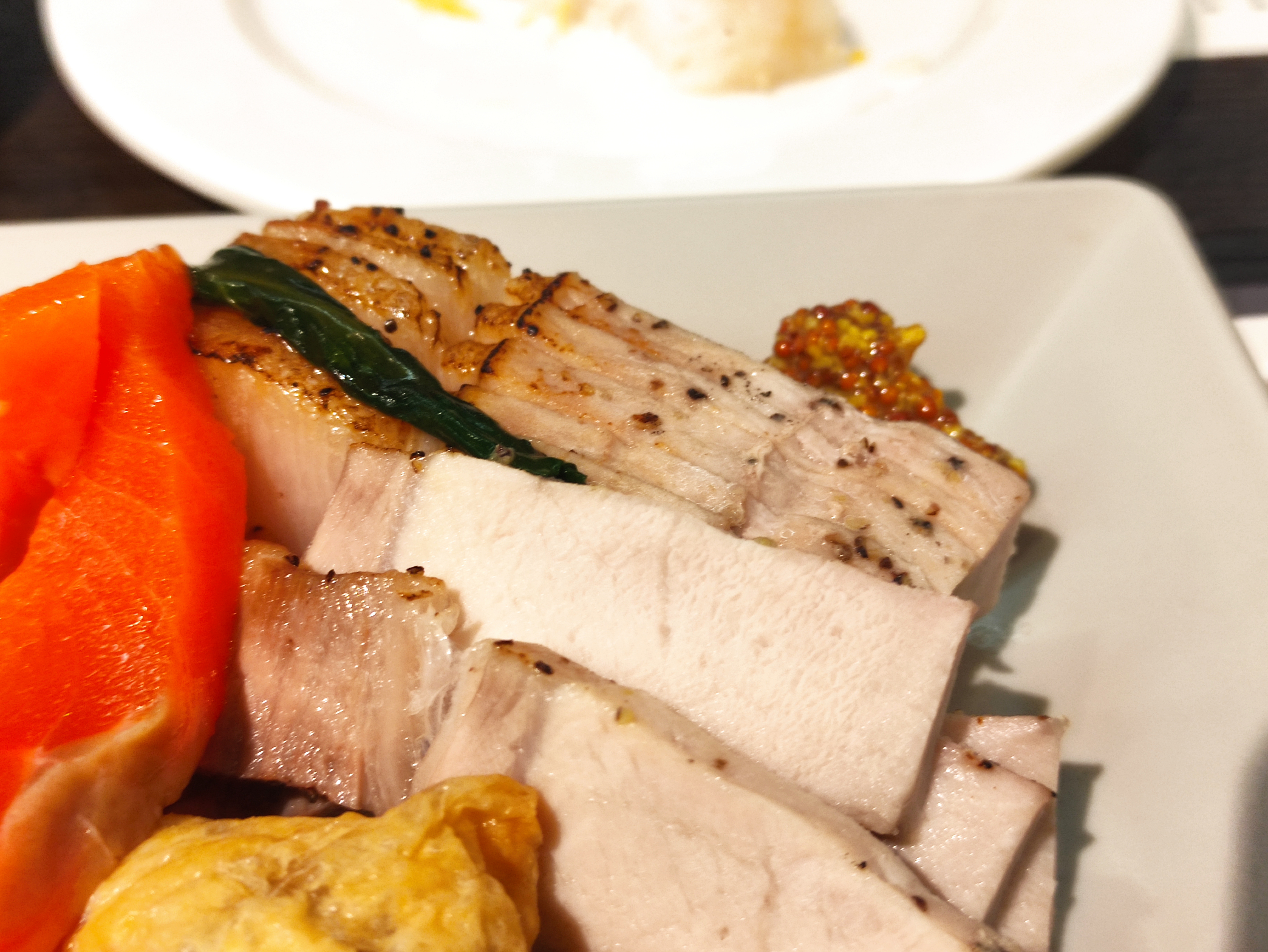 메뉴를 가져와봤습니다. 앞접시가 사각형인 점도 인상적이네요. 그리고 수제버거도 있어서 가져왔고, 생선스테이크? 생선 요리도 있어서 가져와봤습니다. 그리고 제가 가져온 접시에는 돈마호크, 그리고 연어회, 한치초밥, 연어초밥, 유부초밥 등 초밥류와 양장피? 중식메뉴를 하나 가져왔습니다. 처음에는 라이트하게 시작합니다. ㅎㅎ 여기에서 샐러드도 한접시 가져왔고요. 이후에는 튀김류 구이류 등으로 먹습니다. 이래야 많이(?) 먹을 수 있고 먹고나서도 속이 편하더라고요.