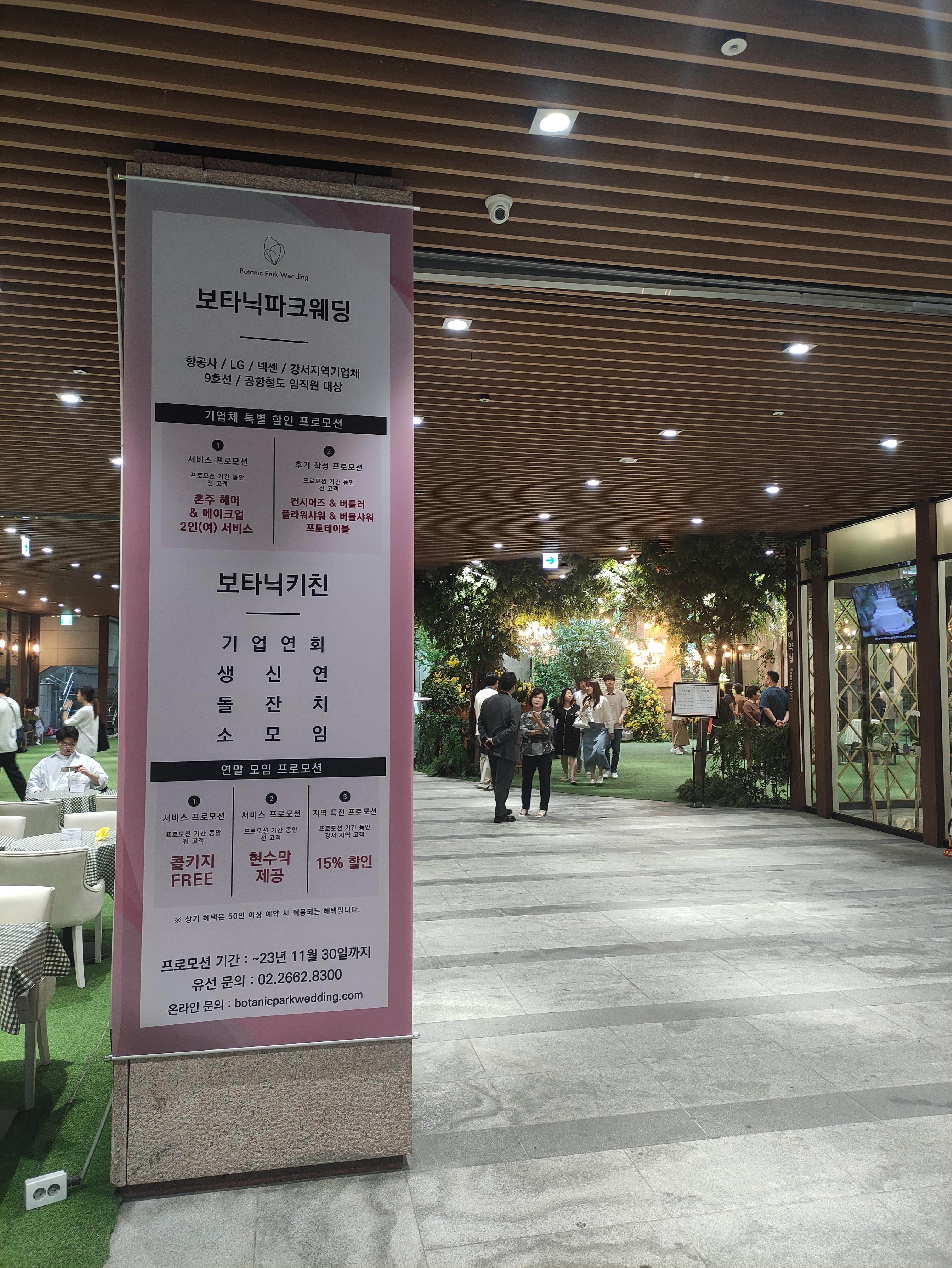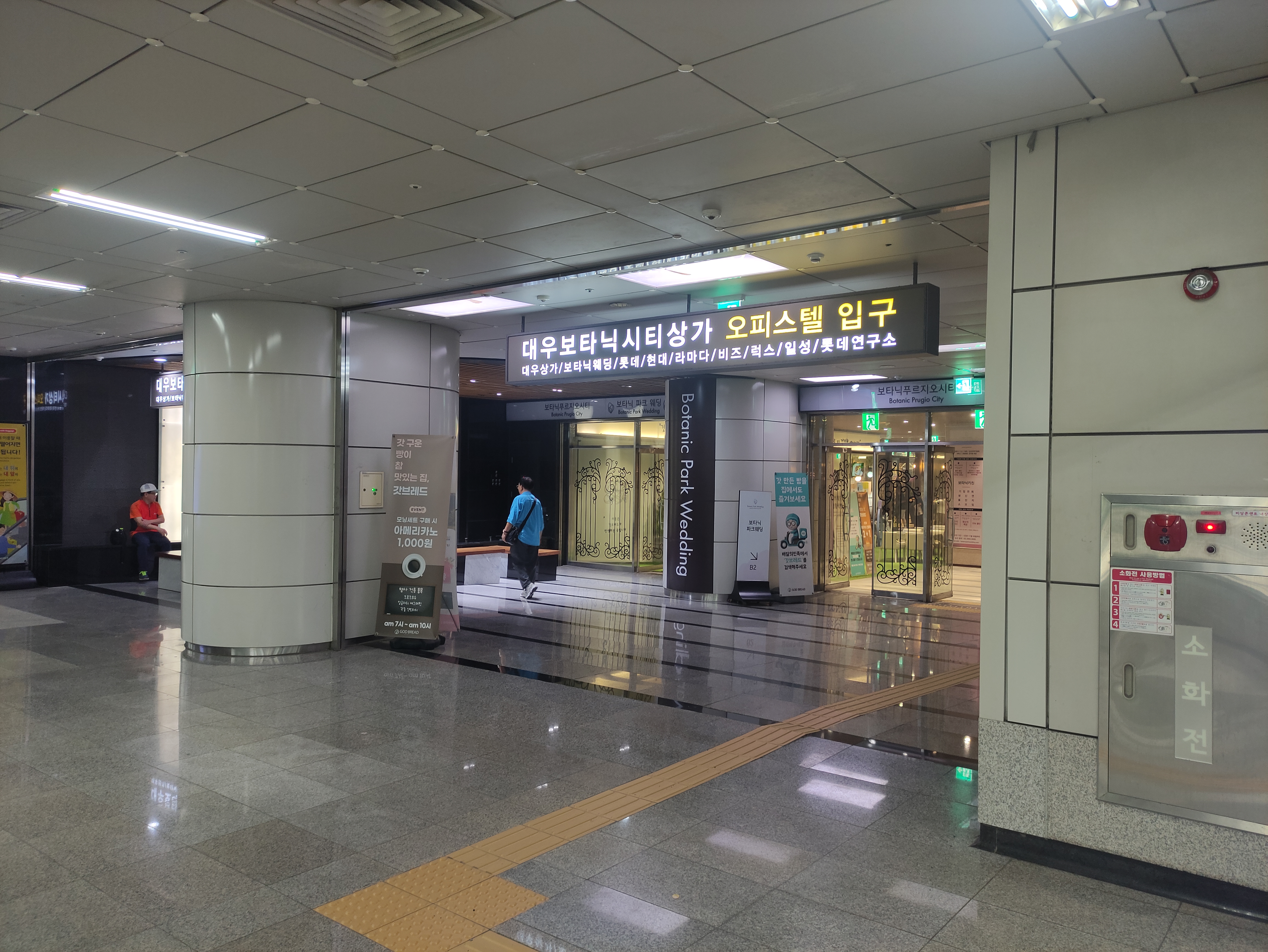 위 사진의 지하철역에서 대우보타닉시티상가 오피스텔 입구로 들어가면 바로 앞이 예식장입니다. 오른쪽이 예식장 홀이고, 왼쪽은 보타닉키친이라고 뷔페인데, 결혼식외에도 기업연회, 생신연, 돌잔치, 소모임 등을 할 수 있습니다.