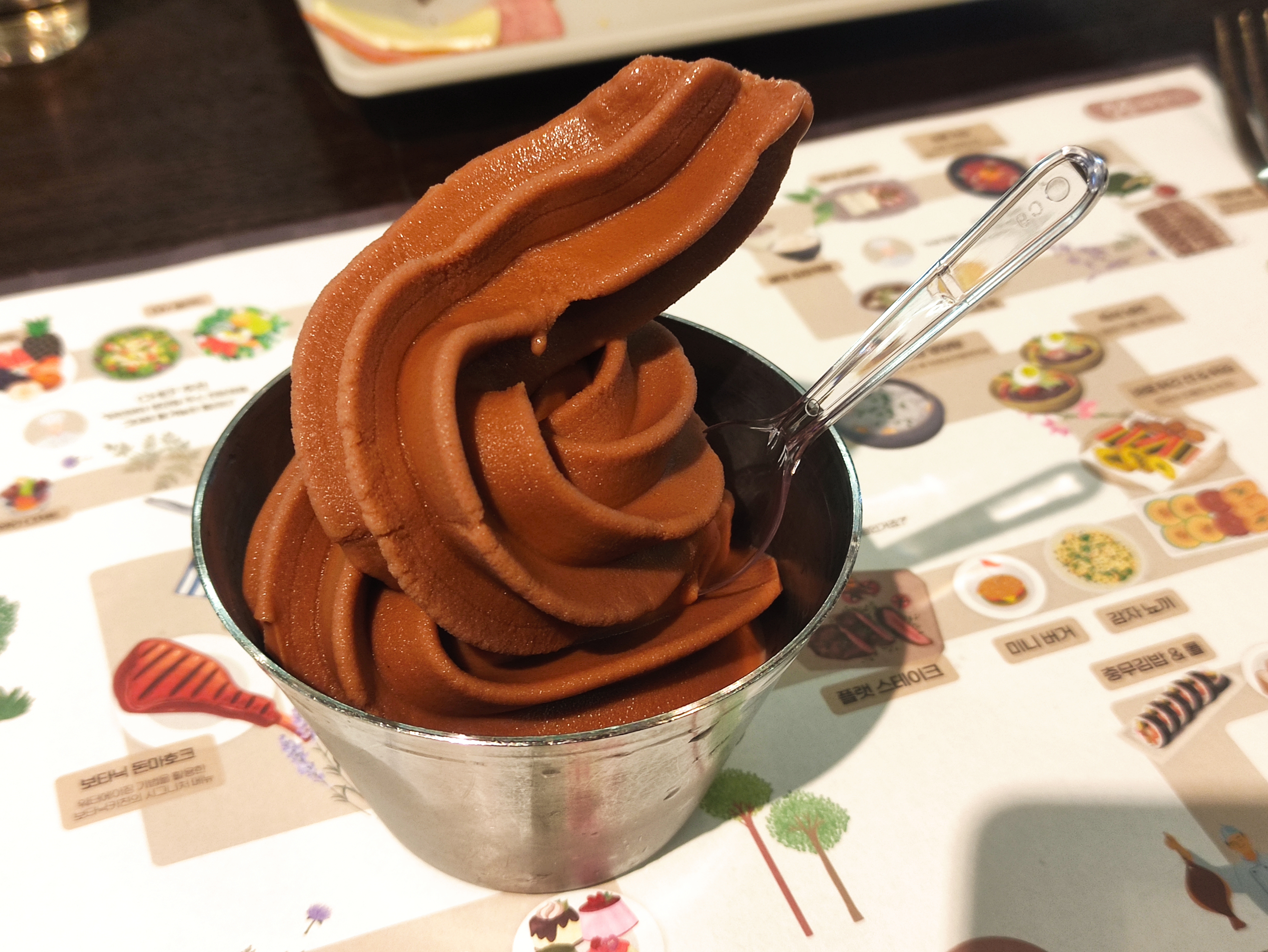 아이스크림입니다. 바닐라아이스크림, 초코아이스크림 두종류 있습니다. 초코아이스크림으로 가져와서 먹었습니다. 아이스크림 상태도 괜찮고 맛도 괜찮네요. 마지막까지 만족하며 먹었습니다. 특히 돈마호크랑 스테이크, 그리고 생선구이요리가 넘 대박이었어요.
