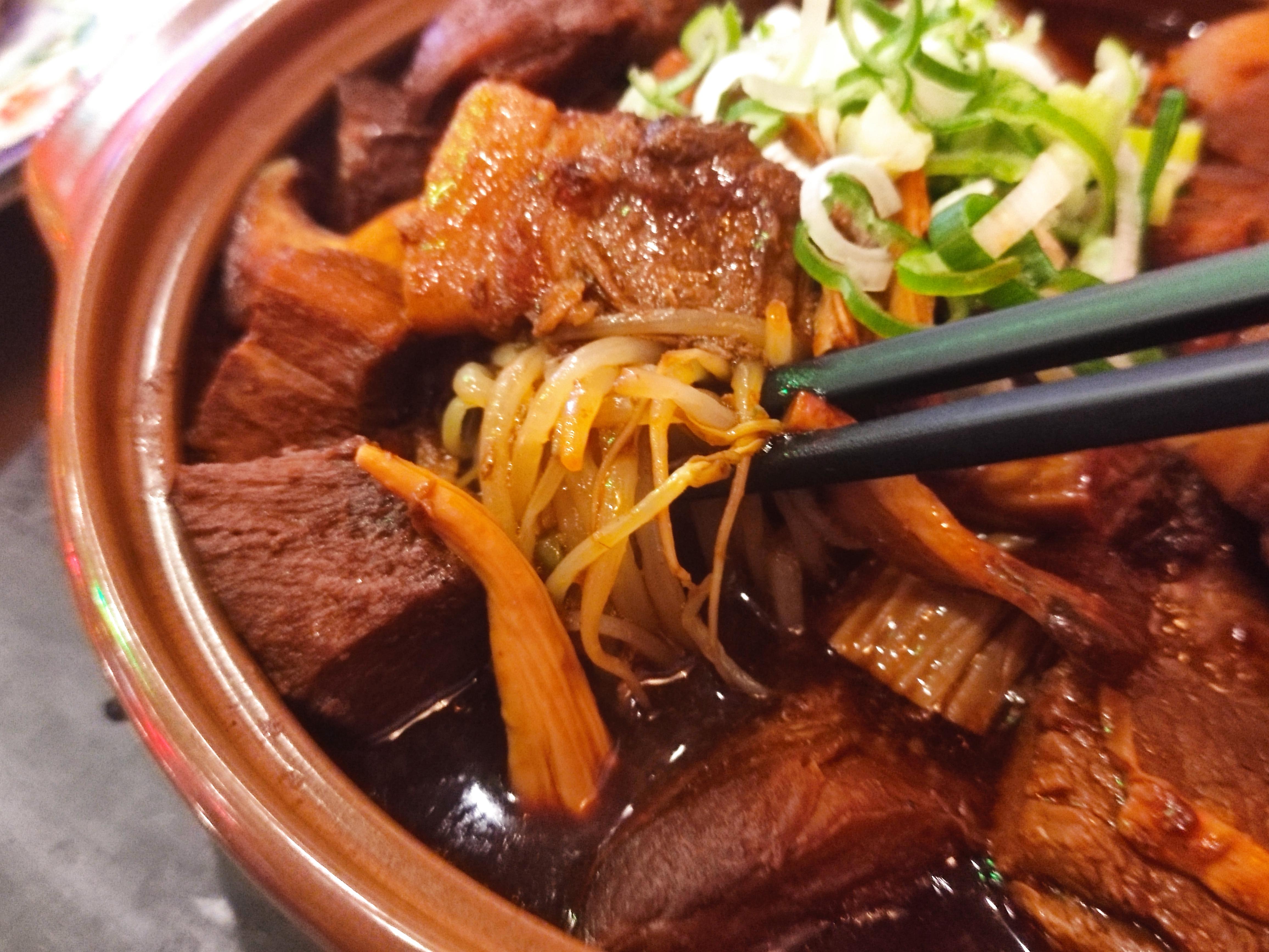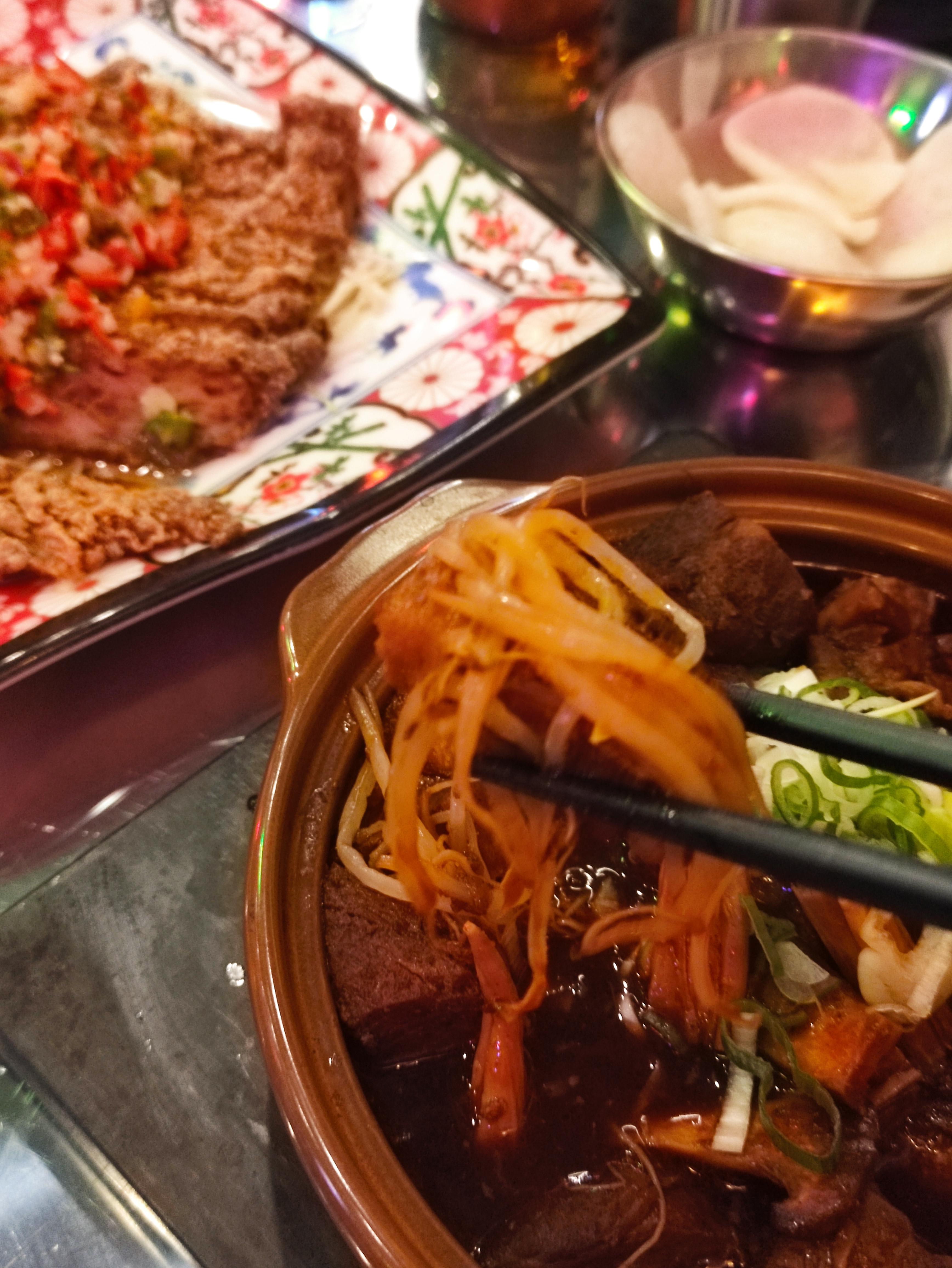 상해식 삼겹살찜 하단에는 아삭한 숙주나물이 들어있습니다. 소스를 촉촉히 머금었습니다.