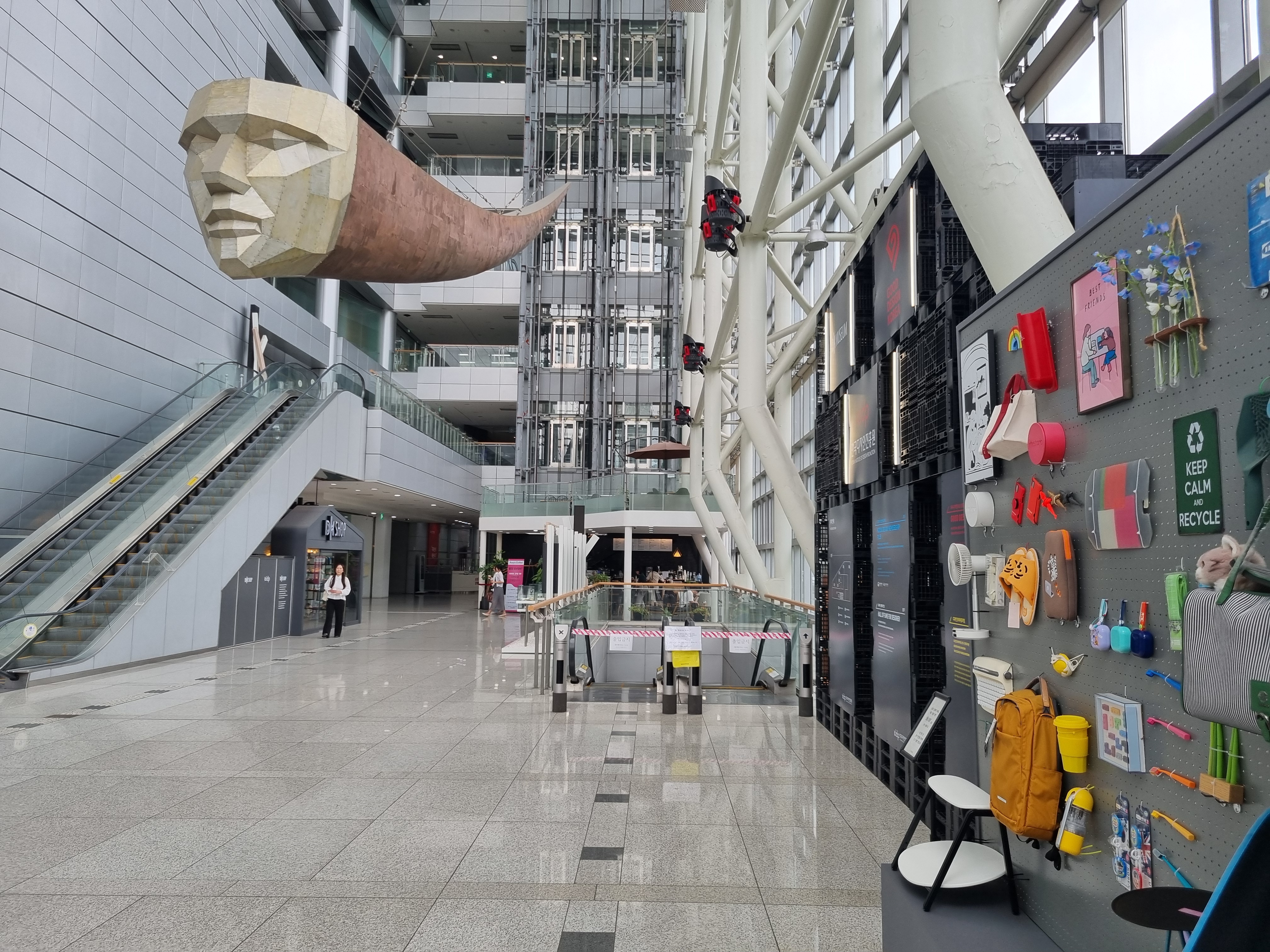 내부로 들어갑니다. 중앙에 저 머리모양 공중 조형물 오랜만에 봅니다. 교육은 지하1층 강의실에서 진행합니다.
