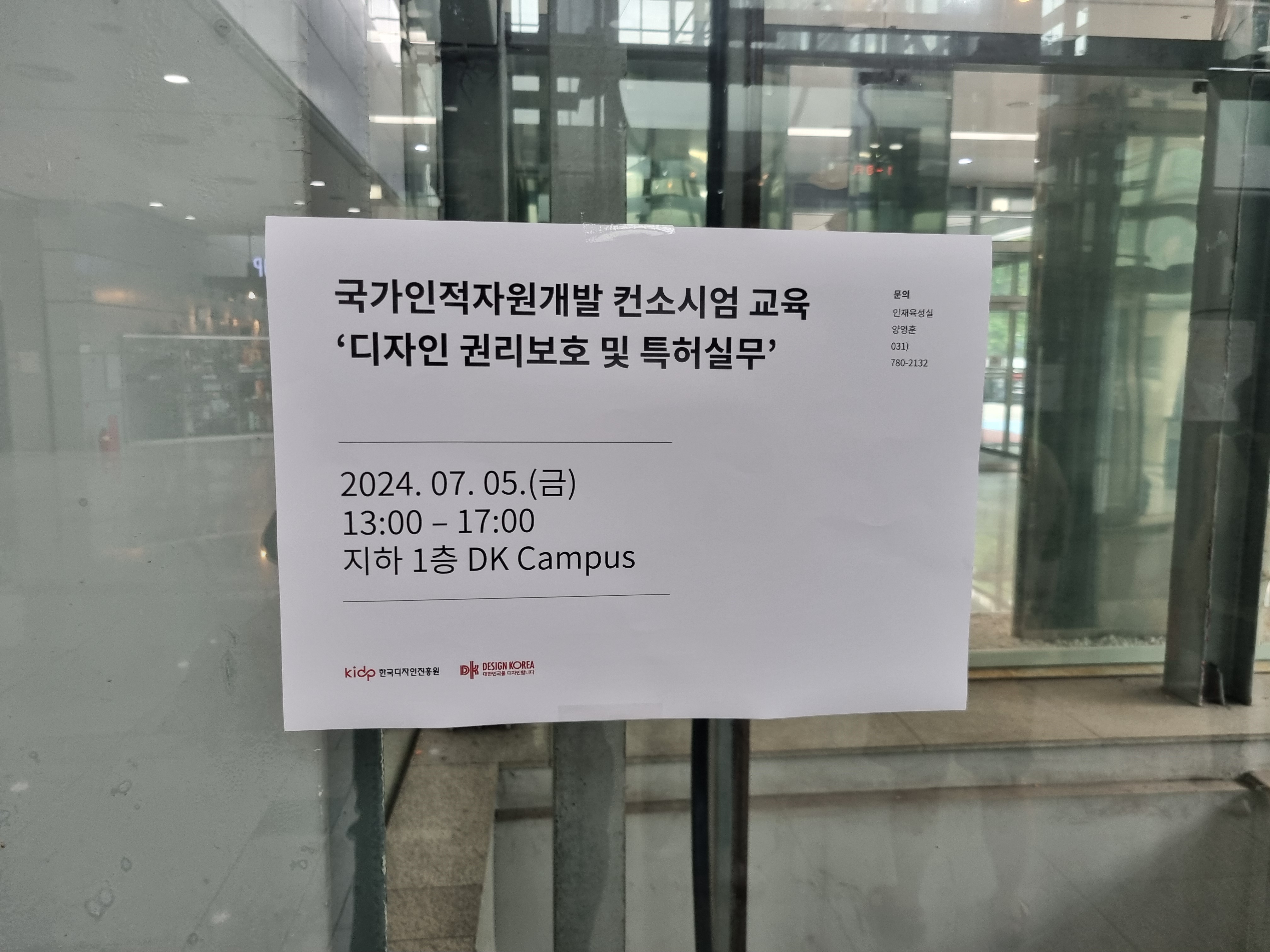 제가 이번에 받은 디자인권 교육은 금요일 오후 1일 과정이어서 회사에 승인받고 오전에 출근해서 시간에 맞춰나왔습니다.