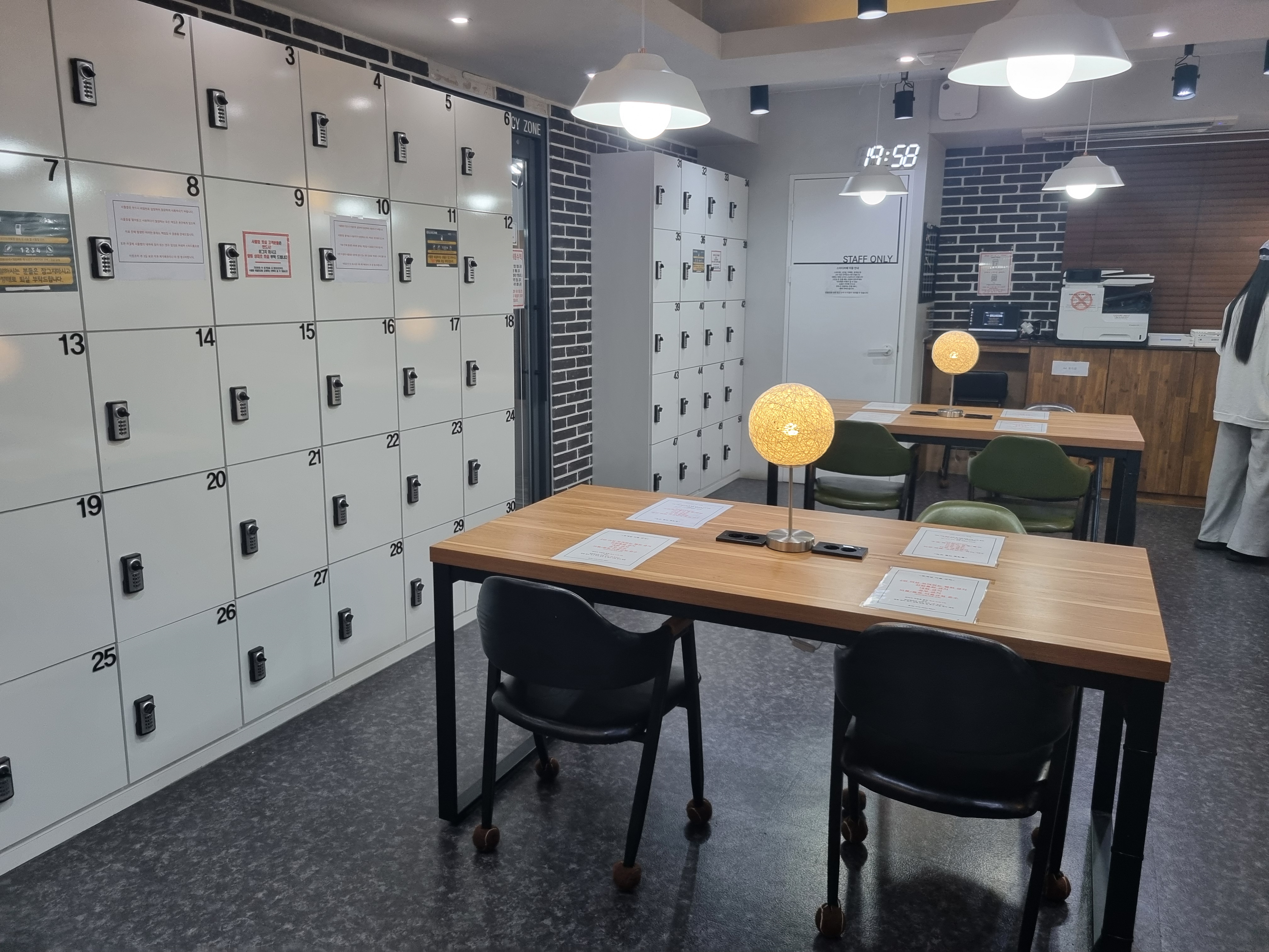 1인자리도 있고 중앙에 커피마시고 쉴 수 있는 공간 넓게 있고 프린트도 5장정도는 뽑을수 있어요. 꽤 넓고 괜찮고요.