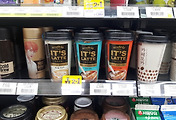잇츠라떼 다크카라멜은 사진과같이 진한주황색 배경에 잇츠라떼 고유의 금빛외곽선과 글씨에 검은색을 대비시켜 로고를 만든게 특징입니다. 하단에는 카라멜이 띄워진 에스프레소에 우유를 붓는 사진이 들어가 있어요. 사진만보고도 무슨맛일지 대충 짐작이 가네요.