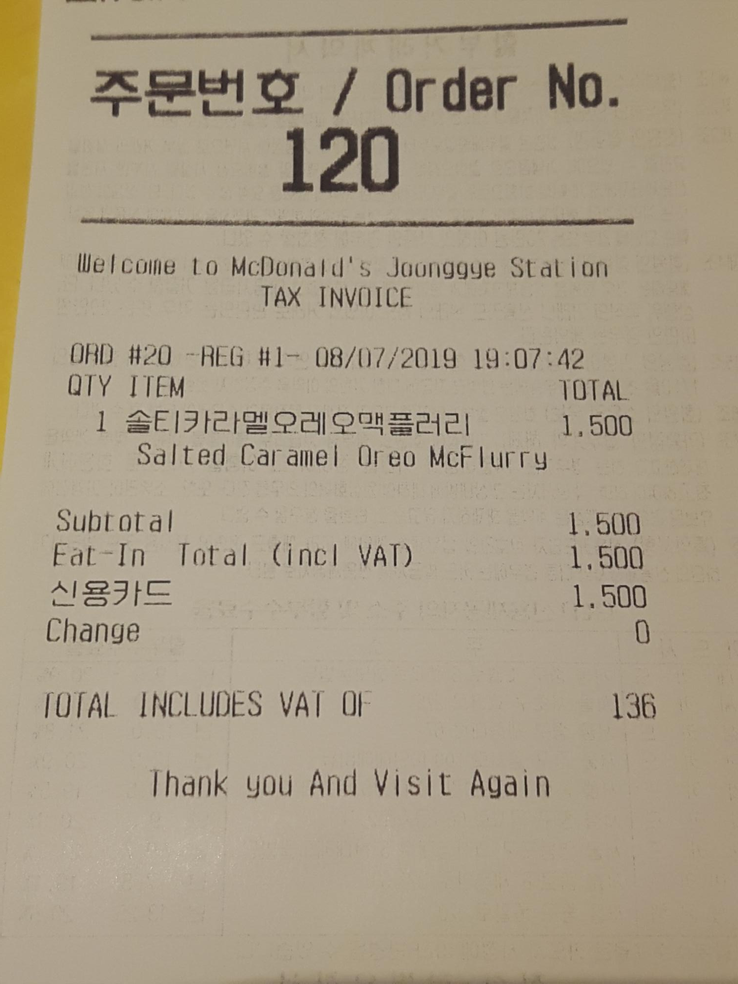 솔티카라멜오레오맥플러리를 1500원에 기릿!