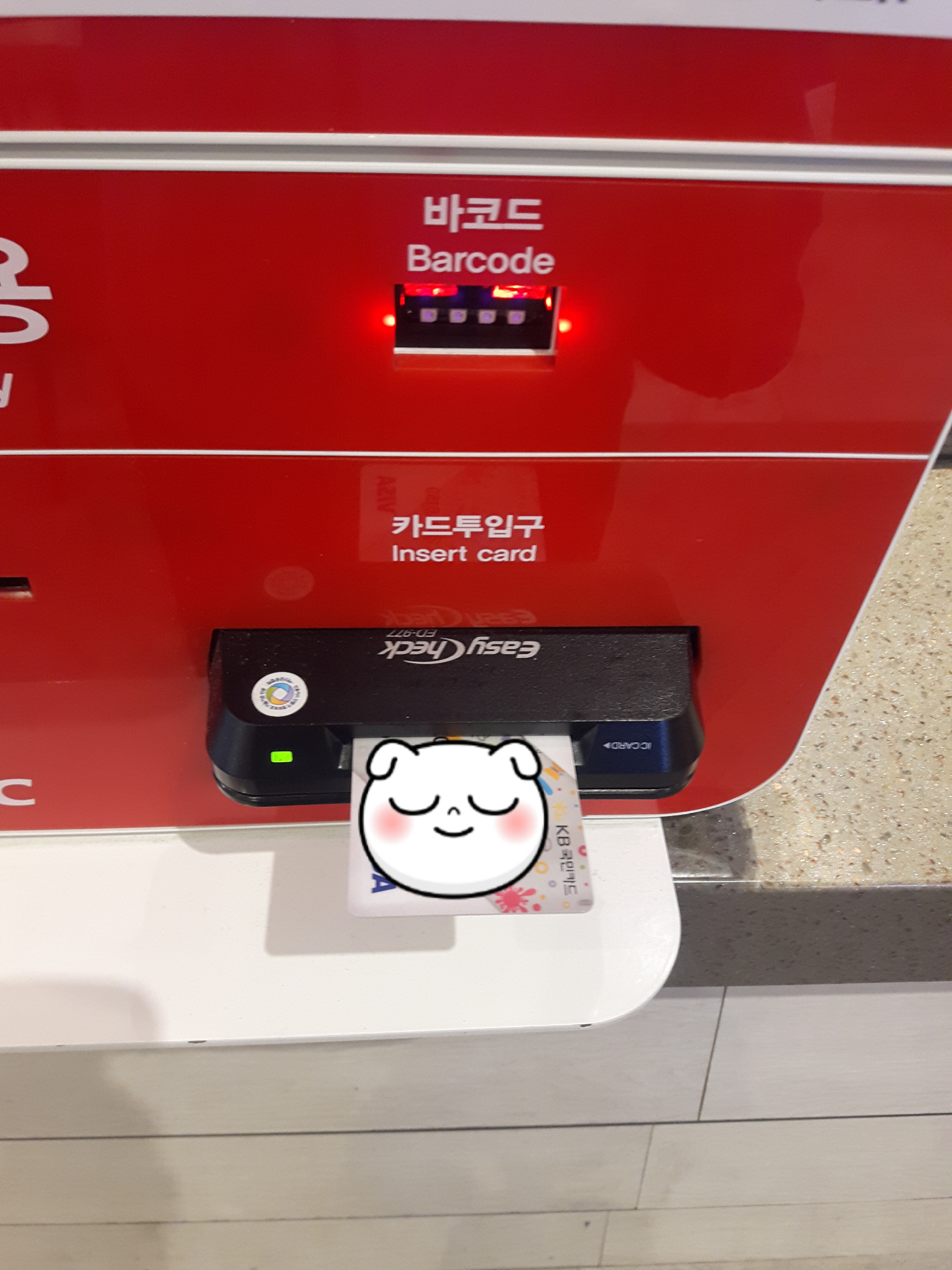 위 순서에 맞게 결제를진행합니다. 신용카드, 카카오페이, KFC 선불카드, OK캐쉬백으로 결제가능합니다. 저는 신용카드를 터치하고, 결제를 누른 후 신용(체크)카드를 하단에 카드투입구에 삽입하면 결제완료!