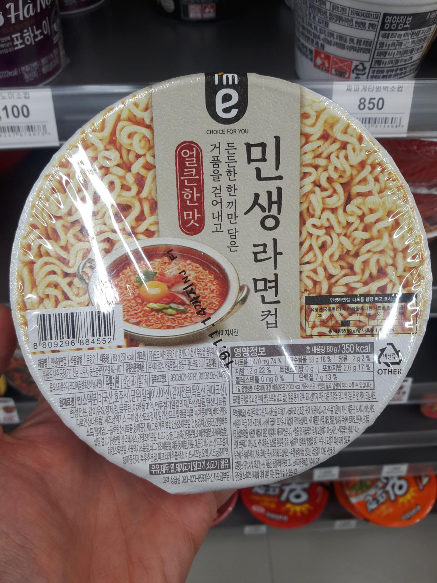 이마트 자체 상품 I'm e 브랜드에서 출시한 민생라면컵은 580원이라는 부담없는 가격대에 판매되고 있습니다. 요즘 유제품도 1000원~1500원 하는 시대에 컵라면이 580원이라니요. 정말 믿기지않는 좋은 가격에 판매하고 있네요. 그래서 이름도 민생라면인가봅니다.