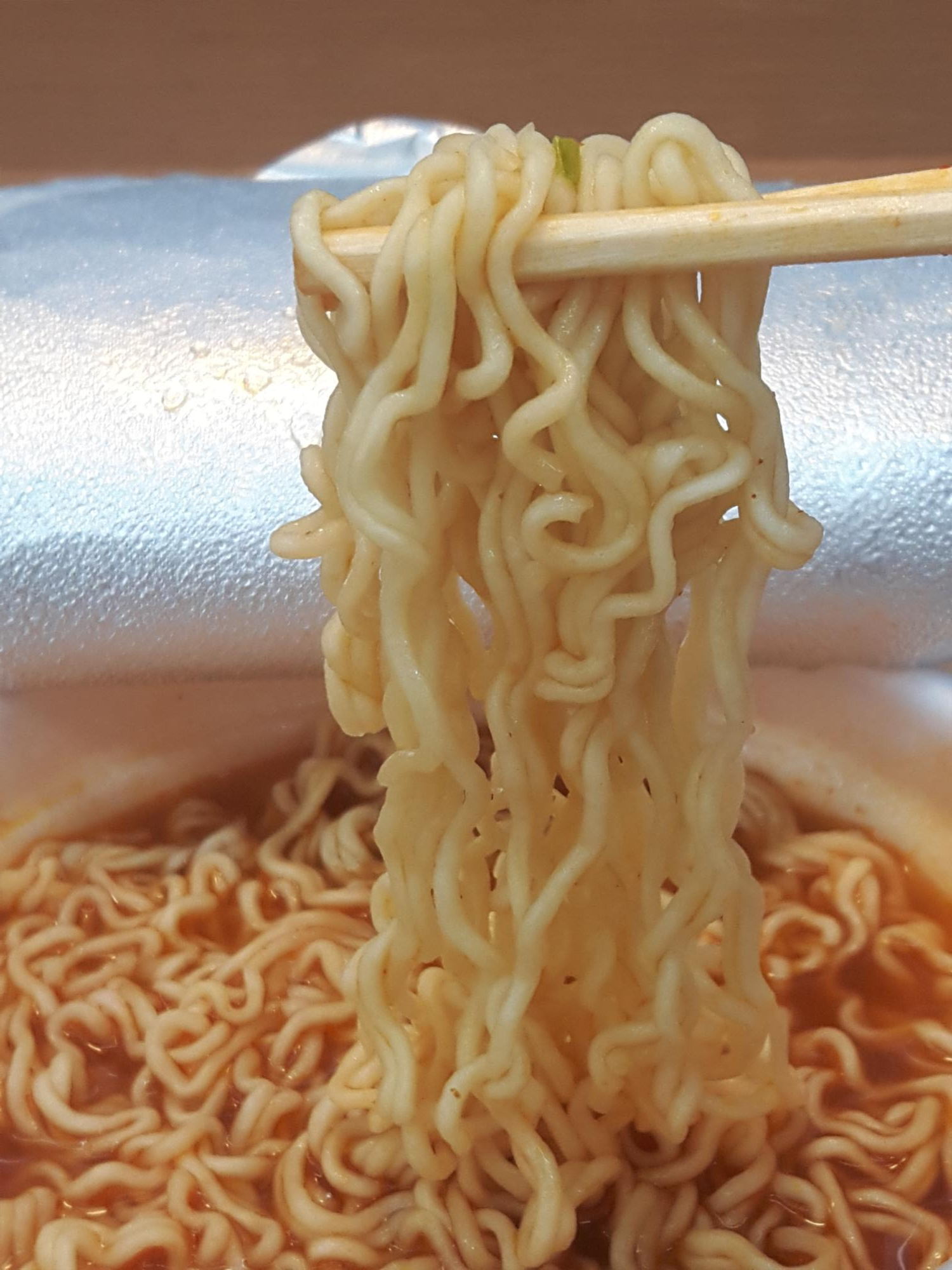 원재료는 면은 소맥분(미국산,호주산), 팜유(말레이시아산), 감자전분(독일산,덴마크산), 변성전분, 감미유S, 정제염, 글루텐, 야채풍미액, 면류첨가알칼리제, 씨즈닝엑기스, 구아검, 산도조절제, 알긴산프로플렌글리콜, 비타민B2 등등 이고,