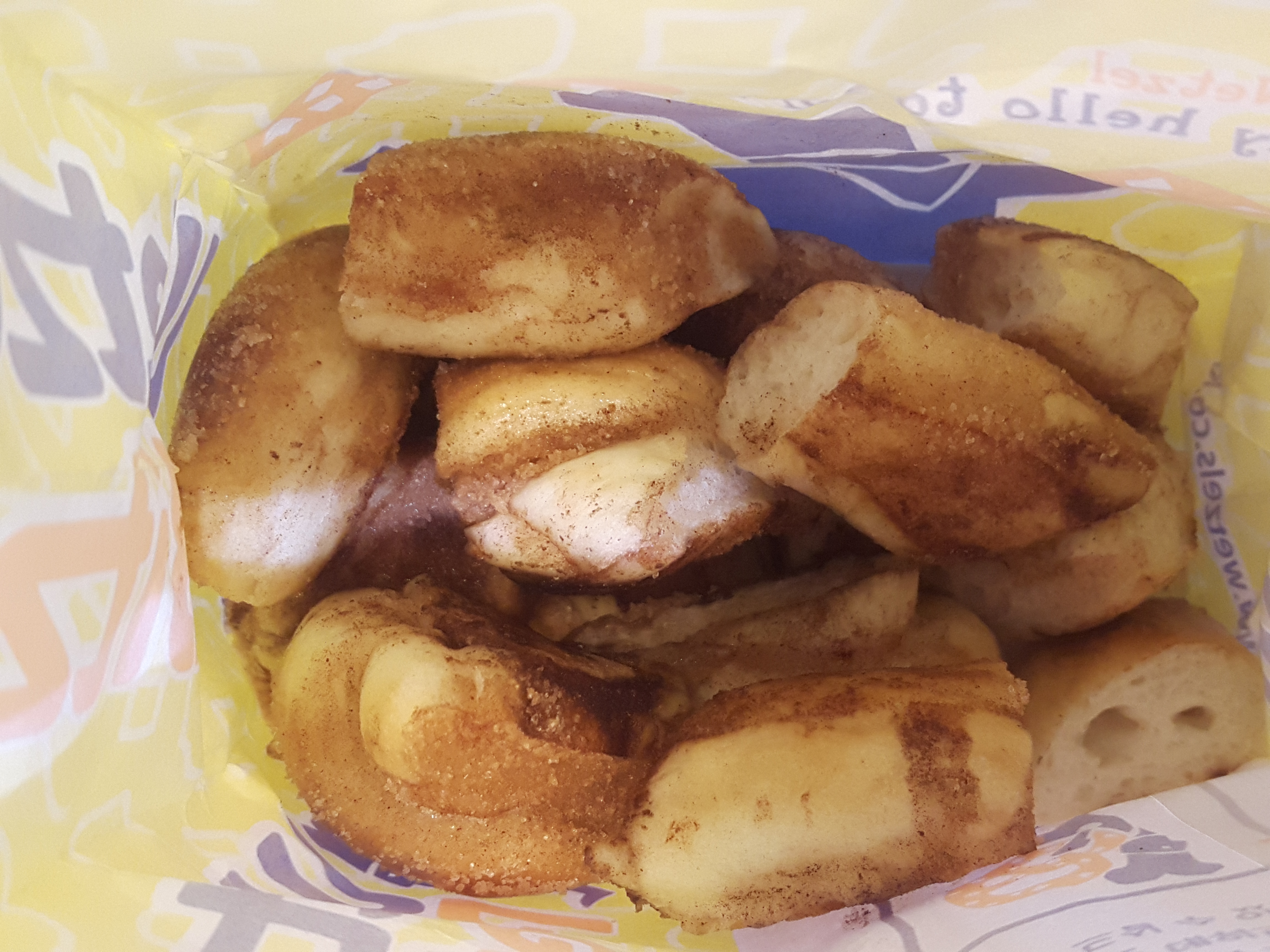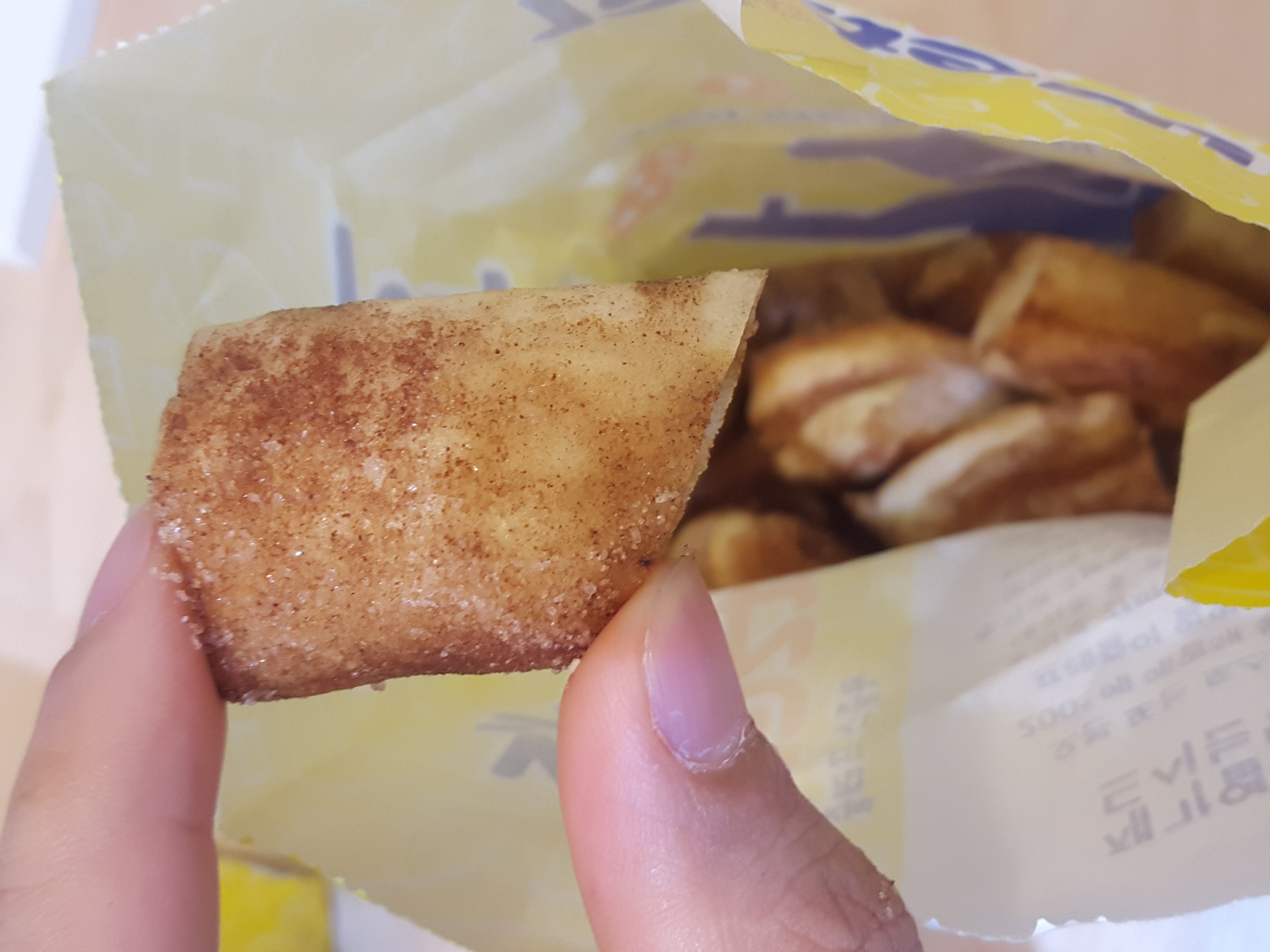 두번째로 시나몬 프레즐을 먹어보았어요. 시나몬과 설탕이 솔솔 뿌려져 있어요. 시나몬이 우리나라말로 계피래요. 약간 계피맛이 강해요. 오래 씹어먹으면 맛있게 먹을 수 있어요. 아몬드처럼 오독오독한 식감이 없고, 프레즐의 고유의 식감을 즐길 수 있어요. 개인적으로 시나몬 프레즐은 아메리카노랑 같이 먹을때 더 맛있었어요. 이번에 포장해서 먹었지만 직접매장에서 갓구운 프레즐을 먹음 더 맛있을거 같아요. ㅎㅎ
