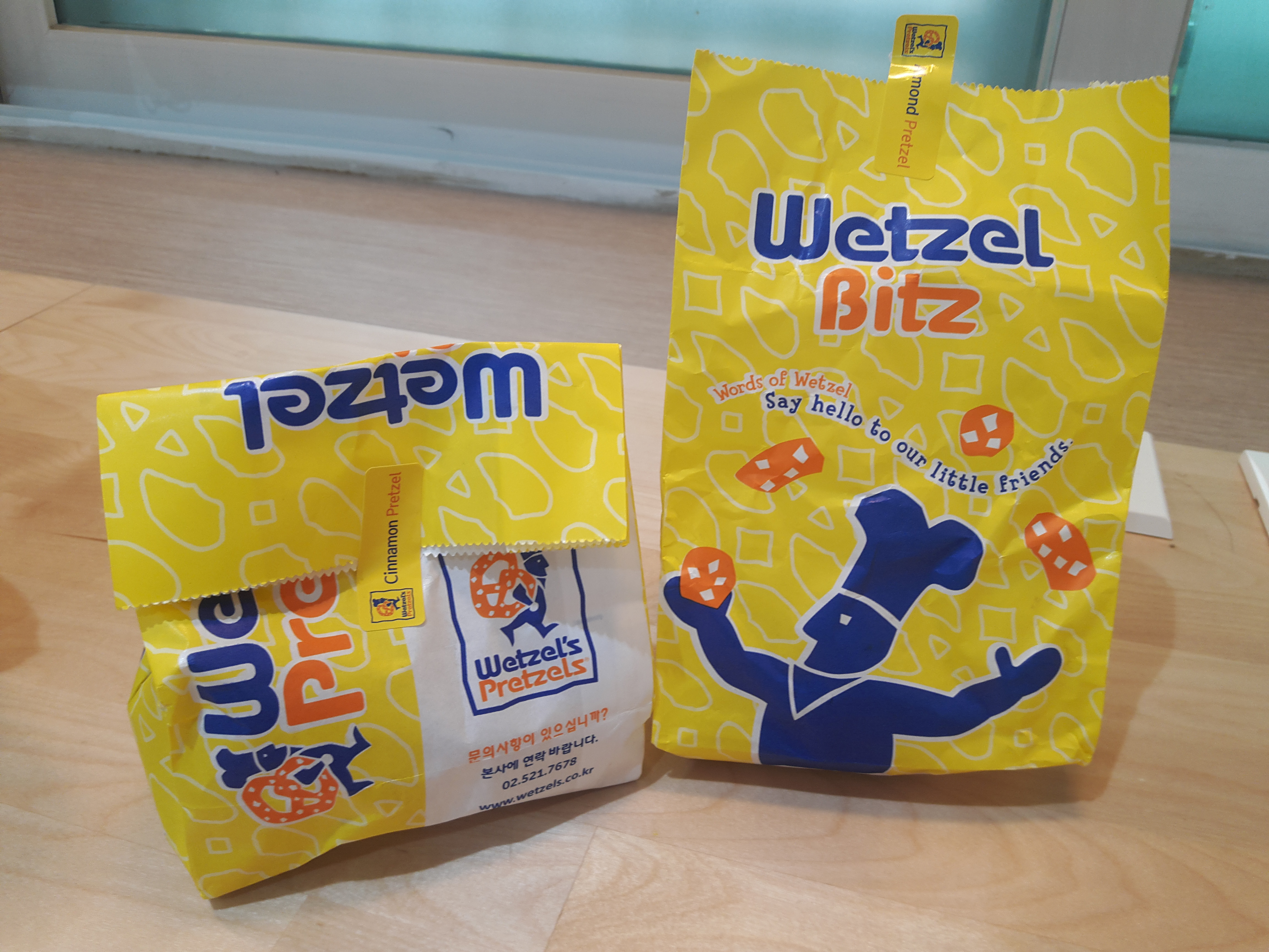 따로 사먹은것은 아니고 학교에서 전시회를 하는데 다과로 나와서 먹었습니다. 알고보니 웻즐스프레즐이라고 롯데월드에도 지점이 있는 유명한 프레즐 브랜드더라고요.