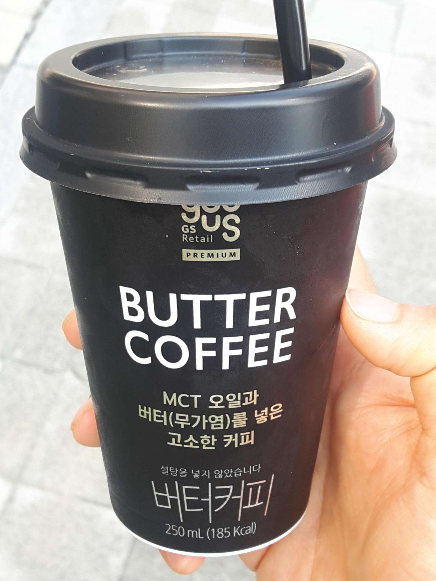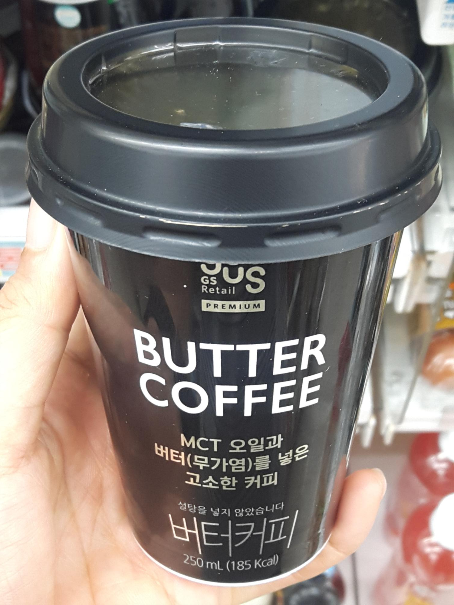 BUTTER COFFEE는 MCT오일과 버터(무가염)을 넣은 고소한 커피고요. 설탕을 넣지 않았대요. ㅎㅎ MCT오일과 버터를 넣은 커피는 방탄커피라고 해서 최강의식사라는 베스트셀러서적에서 처음 언급되었던 책이죠. 저자가 말하기로 아침마다 방탄커피를 한잔 마시면 피로가 싹 가신다고 했던거 같아요. ㅎㅎ 원래는 GS25에서 컵에 따라마시는 파우치형 방탄커피를 출시했었는데, 이렇게 버터커피라고해서 컵에 들어있는 유제품류로도 출시했네요.