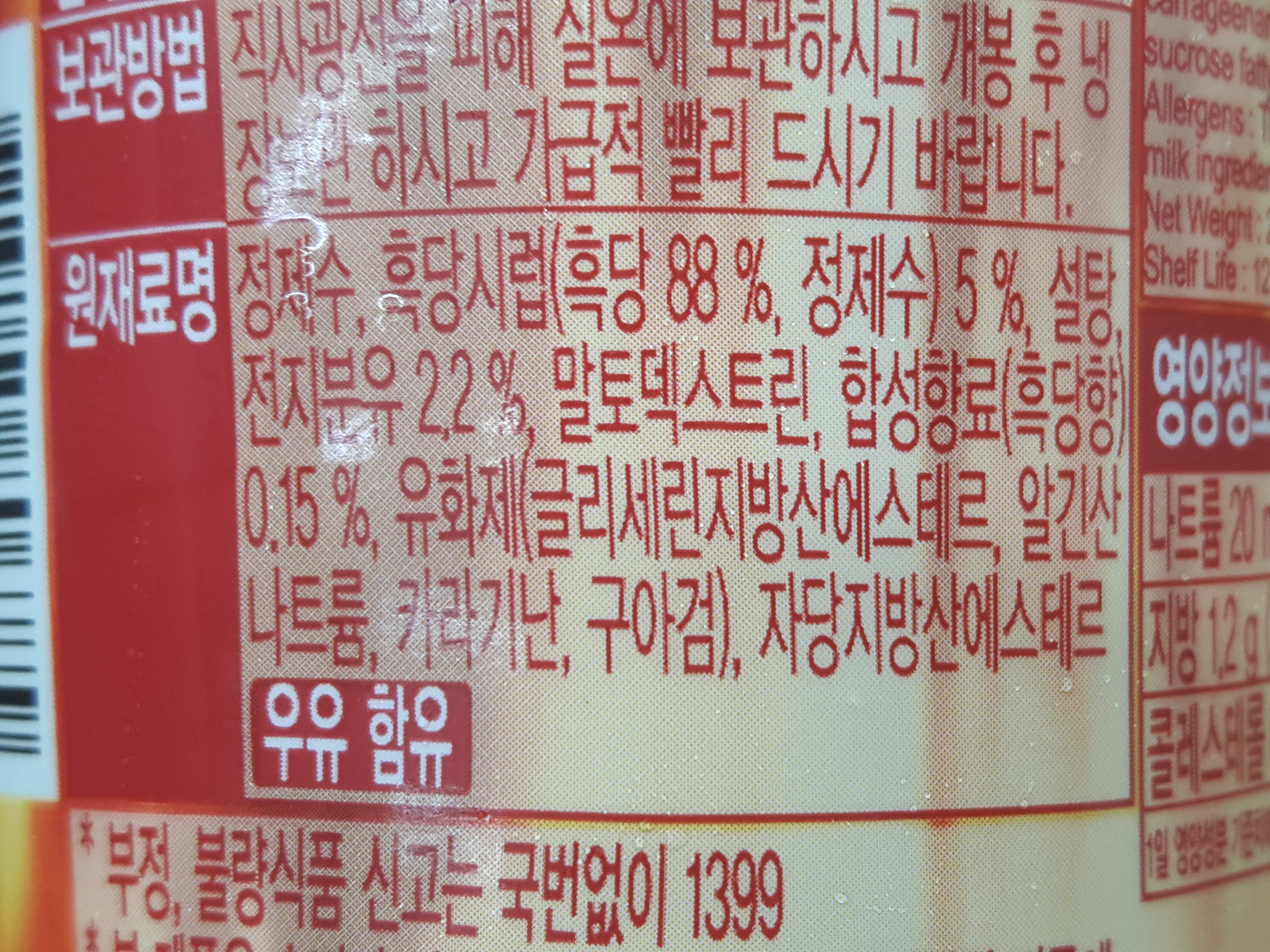 포화지방과 콜레스테롤이 들어있지 않은점은 참 좋은데 단백질이 기존 유제품들보다 적게 들은점은 좀 아쉽네요.