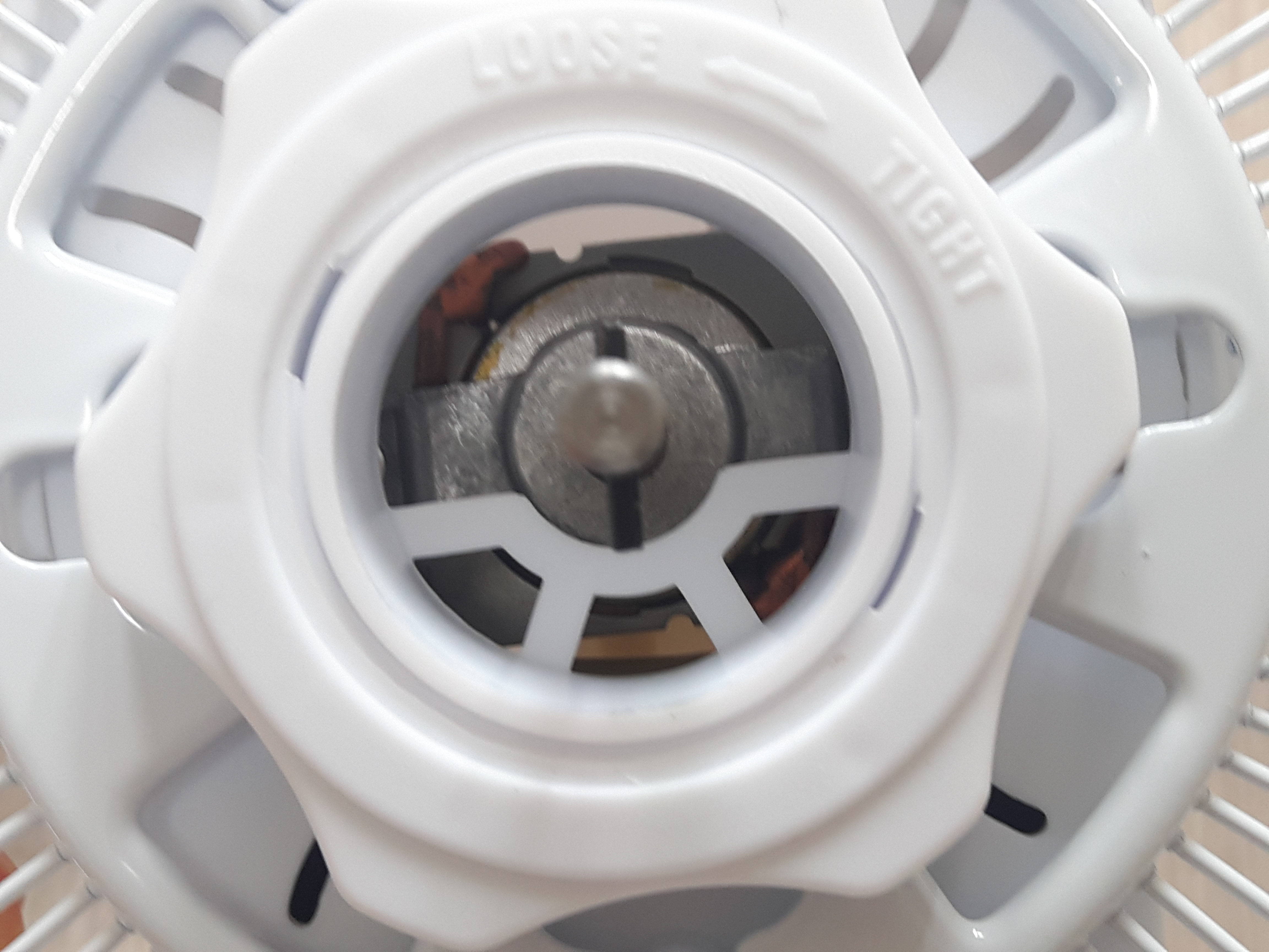 이렇게 날개 분리가 가능합니다. 중심축은 모터와 결합되어 있고요. 날개는 플라스틱사출물에, 중심축이 닿는 결합부에는 철사로 한바퀴 둘러져 있네요.